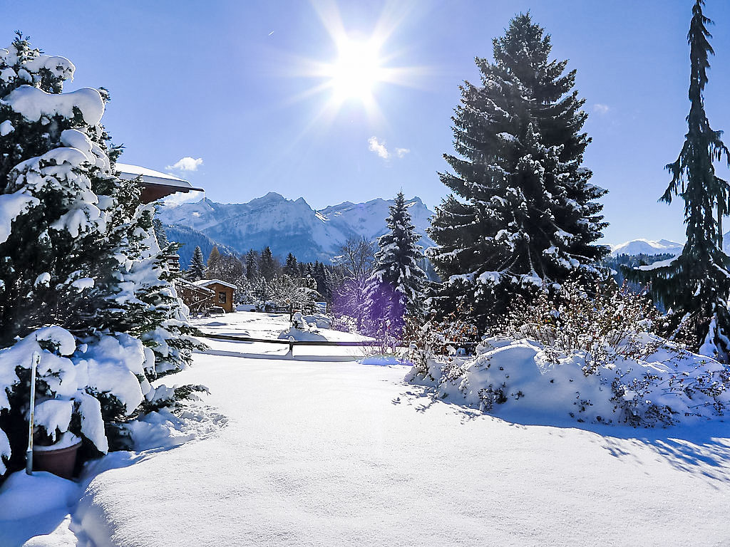 Arveyes 1 km von Villars: Kleines, schönes, gemütliches Chalet "Lorila", auf 2 Stockwerken, umgeben von Wiesen. 1.5 km vom Zentrum von Villars, ruhige, sonnige Lage in einem Wohnquartier, in einer Sackgasse, Richtung Süden. Zur Alleinbenutzung: Garten 1'000 m2 mit Rasen und Pflanzen. Holprige, schmale Zufahrt bis 15 m zum Haus. Im Winter 4x4 empfohlen. 15 m Fussweg bis zum Haus. Supermarkt 1.5 km, Restaurant 650 m, Bäckerei 1.5 km, Bahnstation "Arveyes" 500 m, Hallenbad 1.8 km, Thermalbad "Lavey-les-Bains" 19 km. Sporthafen 25 km, Golfplatz (18 Loch) 9 km, Tennishalle 2.7 km, Sportzentrum 2.7 km, Bergbahn 1.5 km, Skibushaltestelle 500 m, Skischule 1.5 km, Kinderskischule 1.8 km, Eisfeld 1.8 km. Der gratis Skibus fährt zum Skigebiet de Villars.