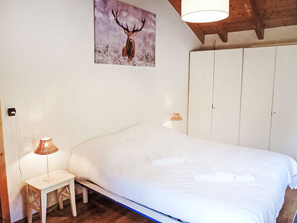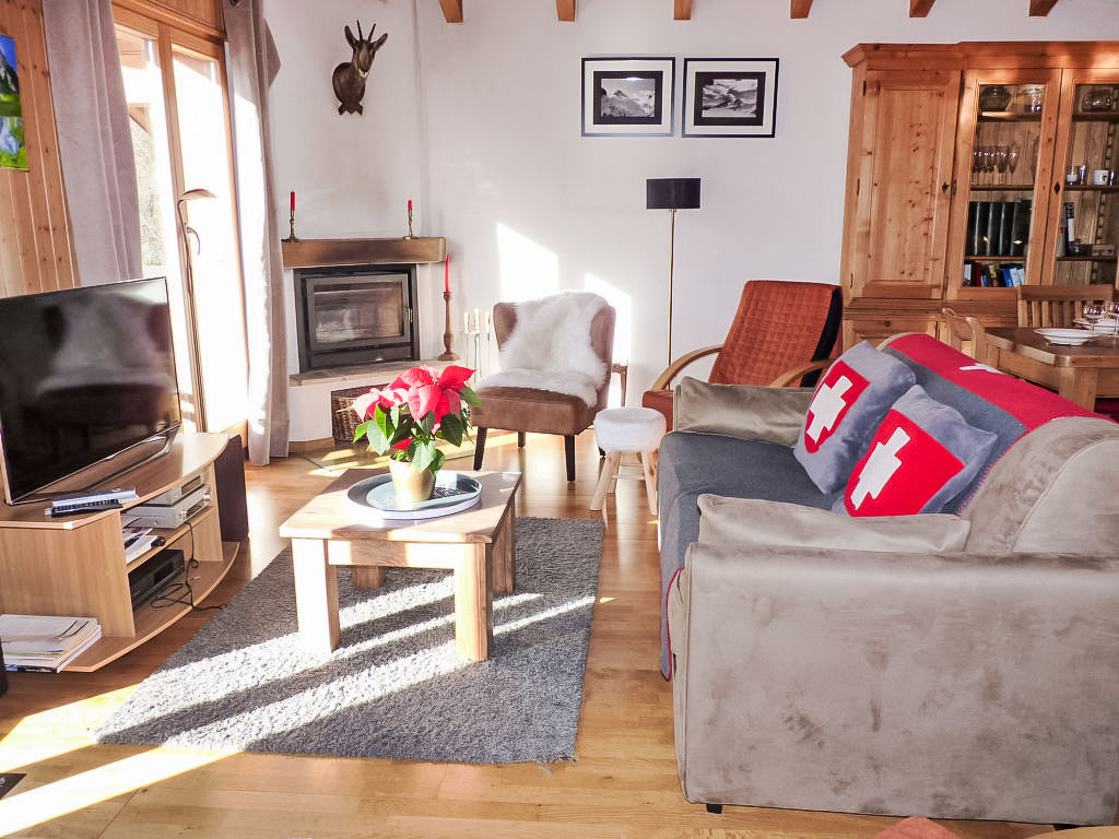 "Ropiar", 5-Zimmer-Chalet 150 m2 auf 2 Stockwerken, Südwestlage. Komfortabel und schön eingerichtet: grosses Wohn-/Esszimmer mit Esstisch, Kabel-TV und Flachbildschirm. Ausgang zum Balkon. 1 Zimmer mit 2 Betten (90 cm, Länge 190 cm). Ausgang zur Terrasse. Grosse, offene Küche (Backofen, Geschirrspüler, 4 Glaskeramikherd Platten, Mikrowelle, elektrische Kaffeemaschine, Racletteofen, Fondue Set (Käse)). Dusche/WC. Unteres Geschoss: 1 Zimmer mit 1 x 2 Etagenbetten (90 cm, Länge 190 cm). 1 Zimmer mit 1 Doppelbett (2 x 90 cm). Ausgang zur Terrasse. 1 Zimmer mit 1 franz. Bett (1 x 160 cm, Länge 190 cm). Bad/WC. Terrassenmöbel, Gartengrill. Herrliche Sicht auf die Berge. Zur Verfügung: Waschmaschine. Internet (Wireless LAN). Parkplatz (4 Autos) beim Haus.
