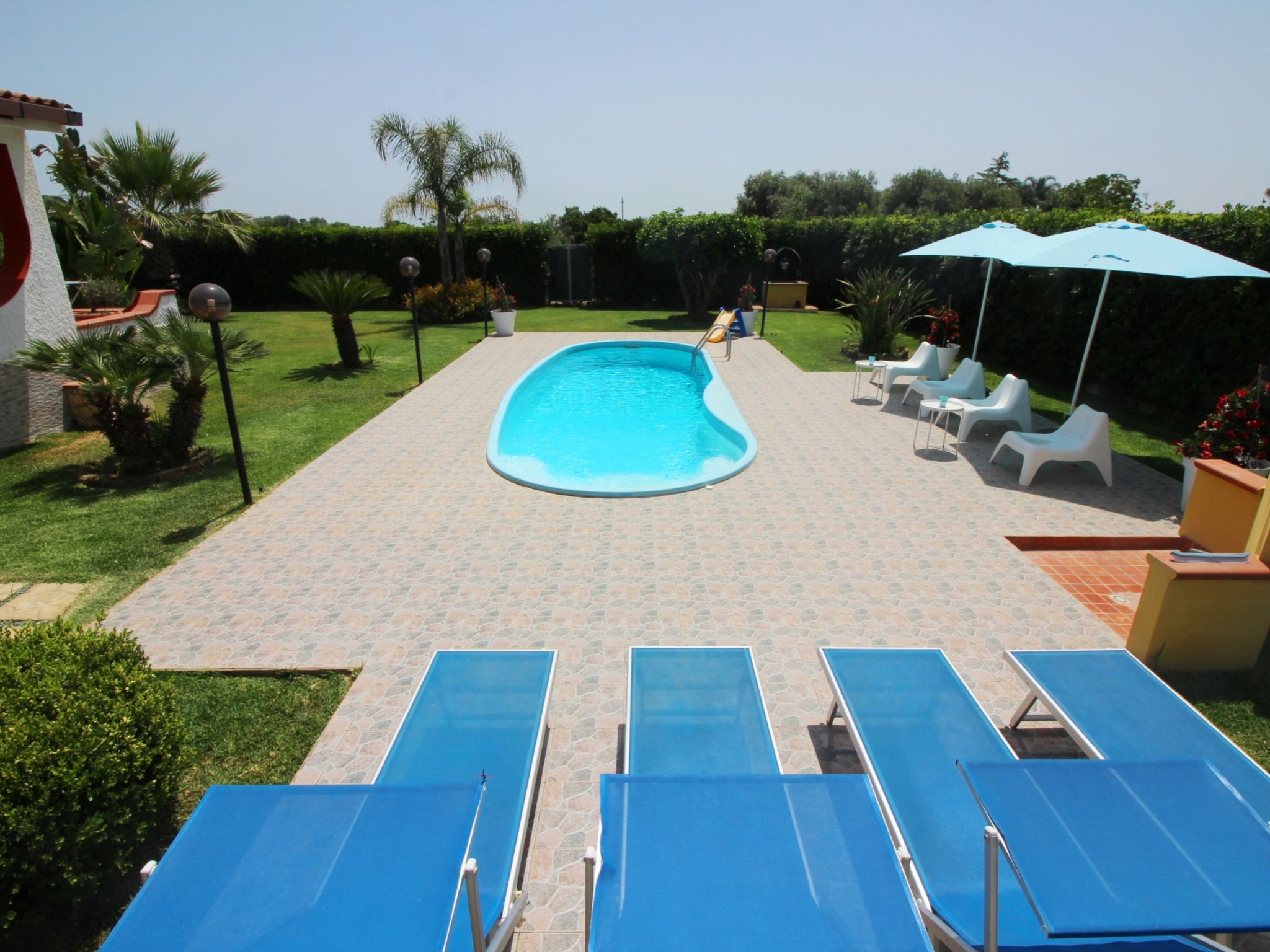 Villa "Andrea", umgeben von Bäumen und Feldern. 5 km vom Zentrum von Floridia, 18 km vom Zentrum von Siracusa, ruhige, sonnige Lage, 15 km vom Meer. Zur Alleinbenutzung: Grundstück 4'000 m2 (eingezäunt), Garten 500 m2, Schwimmbad nierenförmig (9 x 4 m, 100 - 180 cm tief, 01.04.-30.10.). Aussendusche, Gartenmöbel, Grill, Parkplatz auf dem Grundstück. Lebensmittelgeschäft 5 km, Supermarkt 5 km, Restaurant 5 km, Bar 5 km, Bushaltestelle "Floridia" 5 km, Bahnstation "Siracusa" 15 km, Sandstrand "Fontane Bianche" 18 km, Felsstrand "Plemmirio" 25 km. Golfplatz 2 km, Tennis 5 km, Kinderspielplatz 5 km. Nahe gelegene Sehenswürdigkeiten: Siracusa 18 km, Necropoli di Pantalica 32 km, Noto 32 km, Marzamemi 49 km, Modica 65 km, Ragusa 70 km. Bitte beachten: Fahrzeug empfohlen. Das Leitungswasser hat keine Trinkwasserqualität.