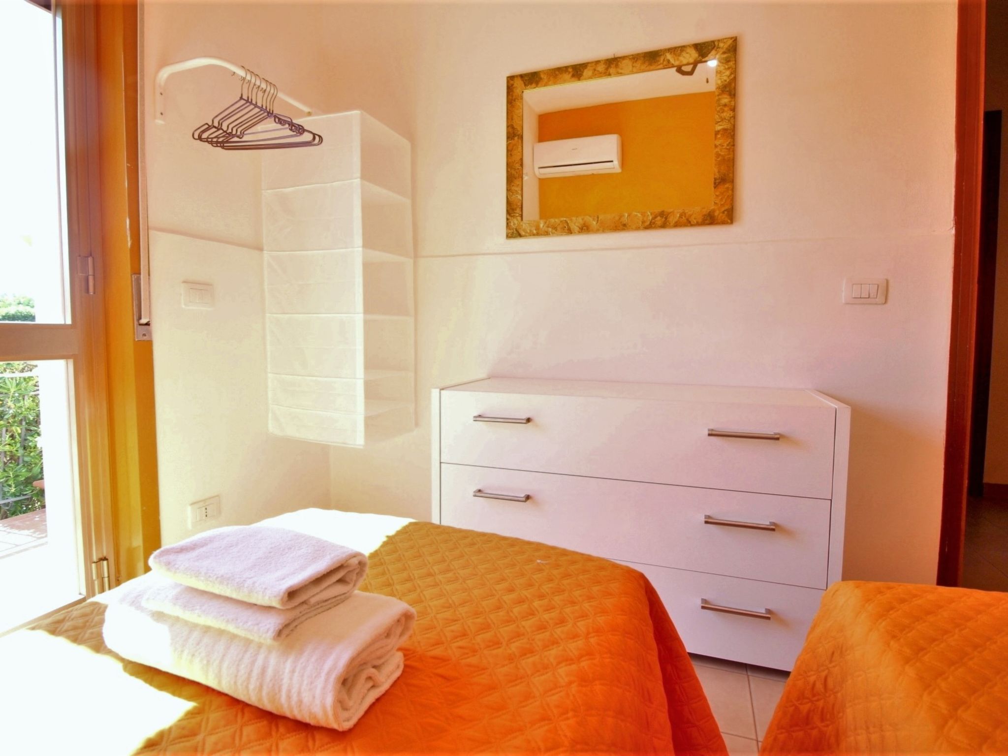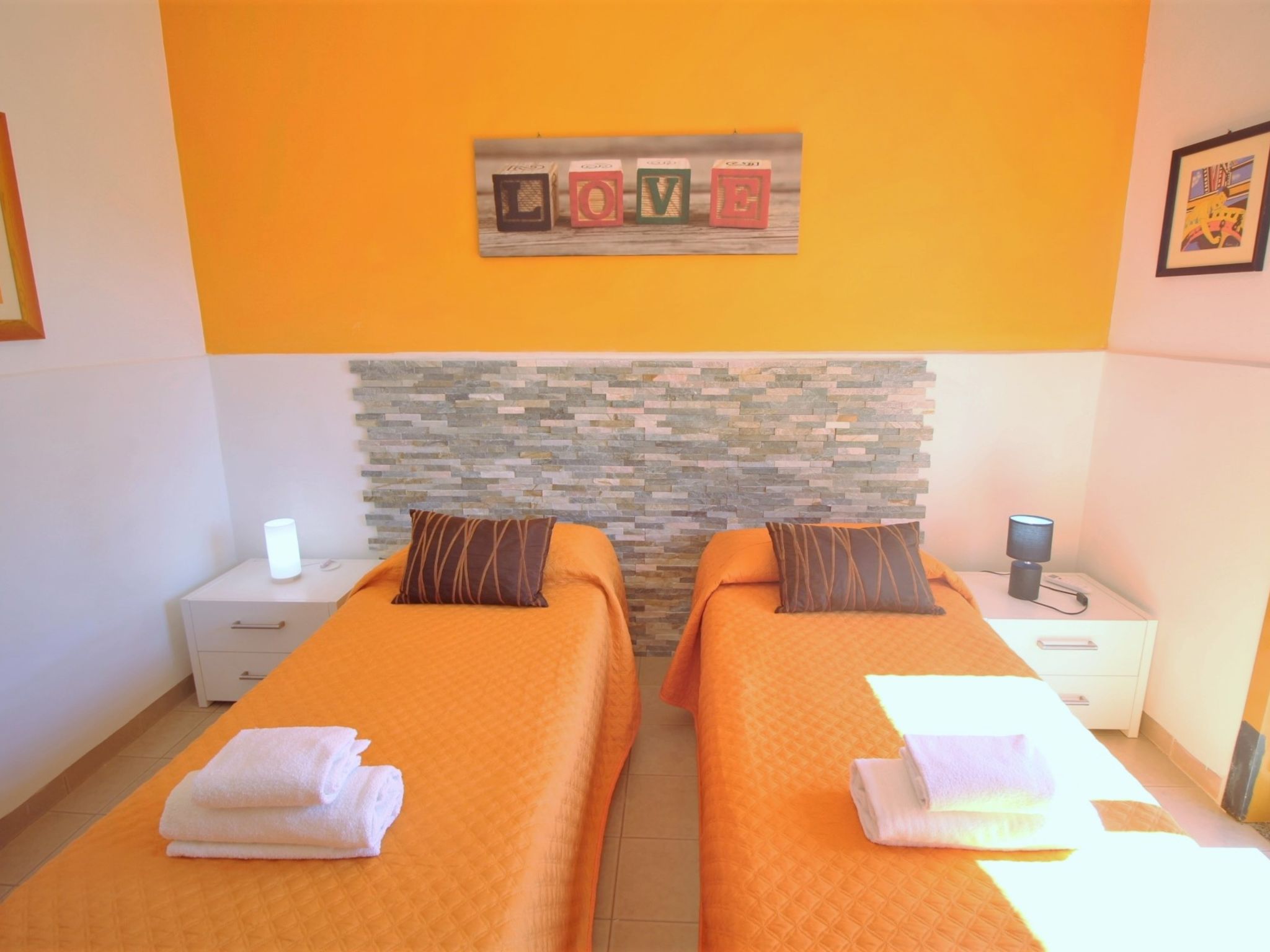 3-Zimmer-Haus 80 m2, im Erdgeschoss. Einfach und zweckmässig eingerichtet: Wohn-/Esszimmer mit 1 Doppeldiwanbett (Länge 140 cm), Sat-TV (Flachbildschirm), Radio, DVD und Ventilator. 1 Doppelzimmer mit Ventilator. 1 Zimmer mit 2 Betten und Ventilator. Ausgang zur Terrasse. Kochnische (4 Kochplatten, Backofen, Geschirrspüler, Toaster, Wasserkocher, Mikrowelle, Tiefkühler, elektrische Kaffeemaschine). Ausgang zur Terrasse. Dusche/Bidet/WC. Boiler (50 Liter). Terrasse 50 m2, überdacht. Terrassenmöbel, Liegestühle. Sicht auf das Schwimmbad und den Garten. Zur Verfügung: Waschmaschine, Bügeleisen, Kinderhochstuhl, Babybett bis 2 Jahre, Haartrockner. Internet (Wireless LAN, gratis). Maximal 2 Haustiere/Hunde erlaubt.