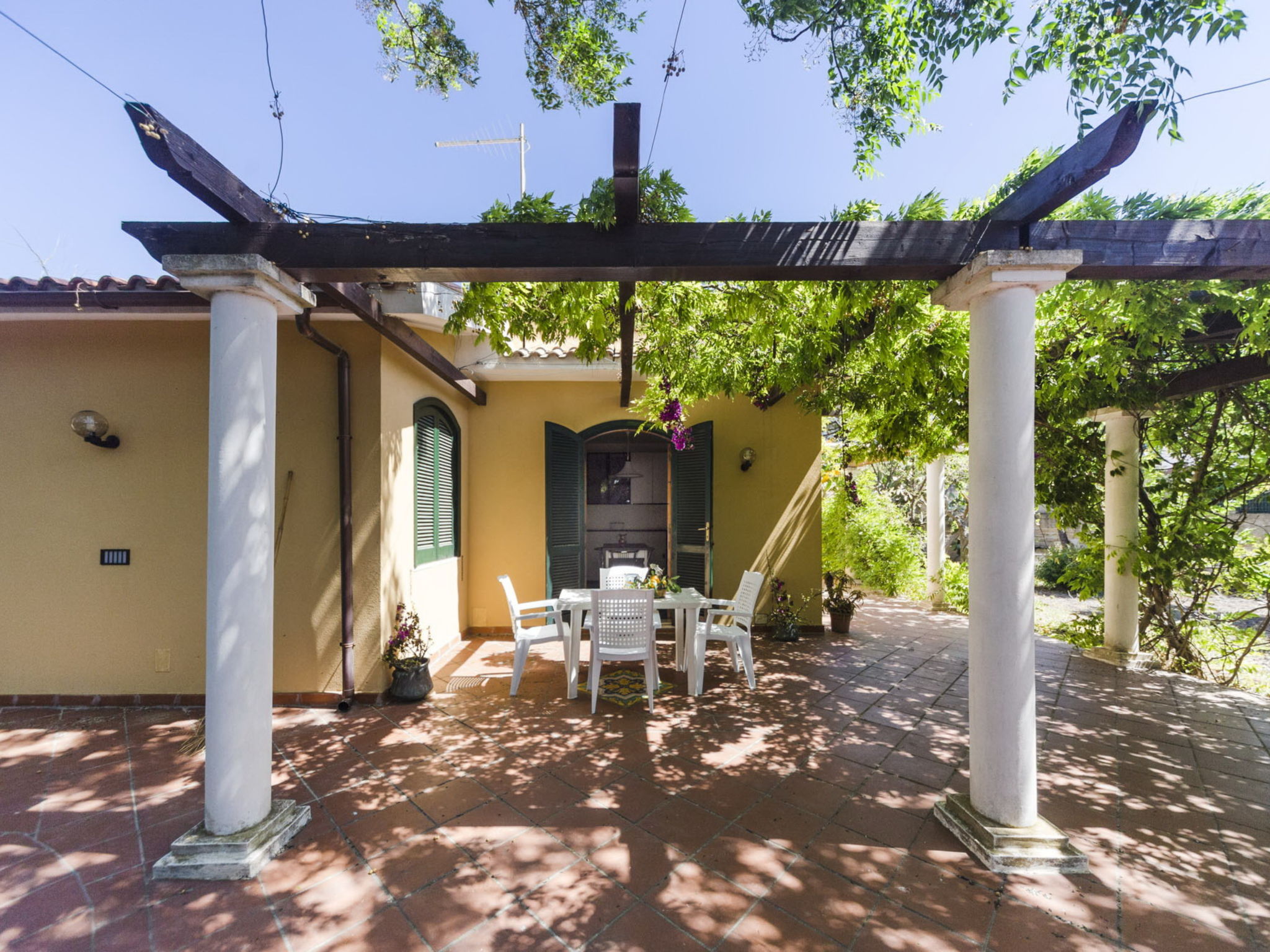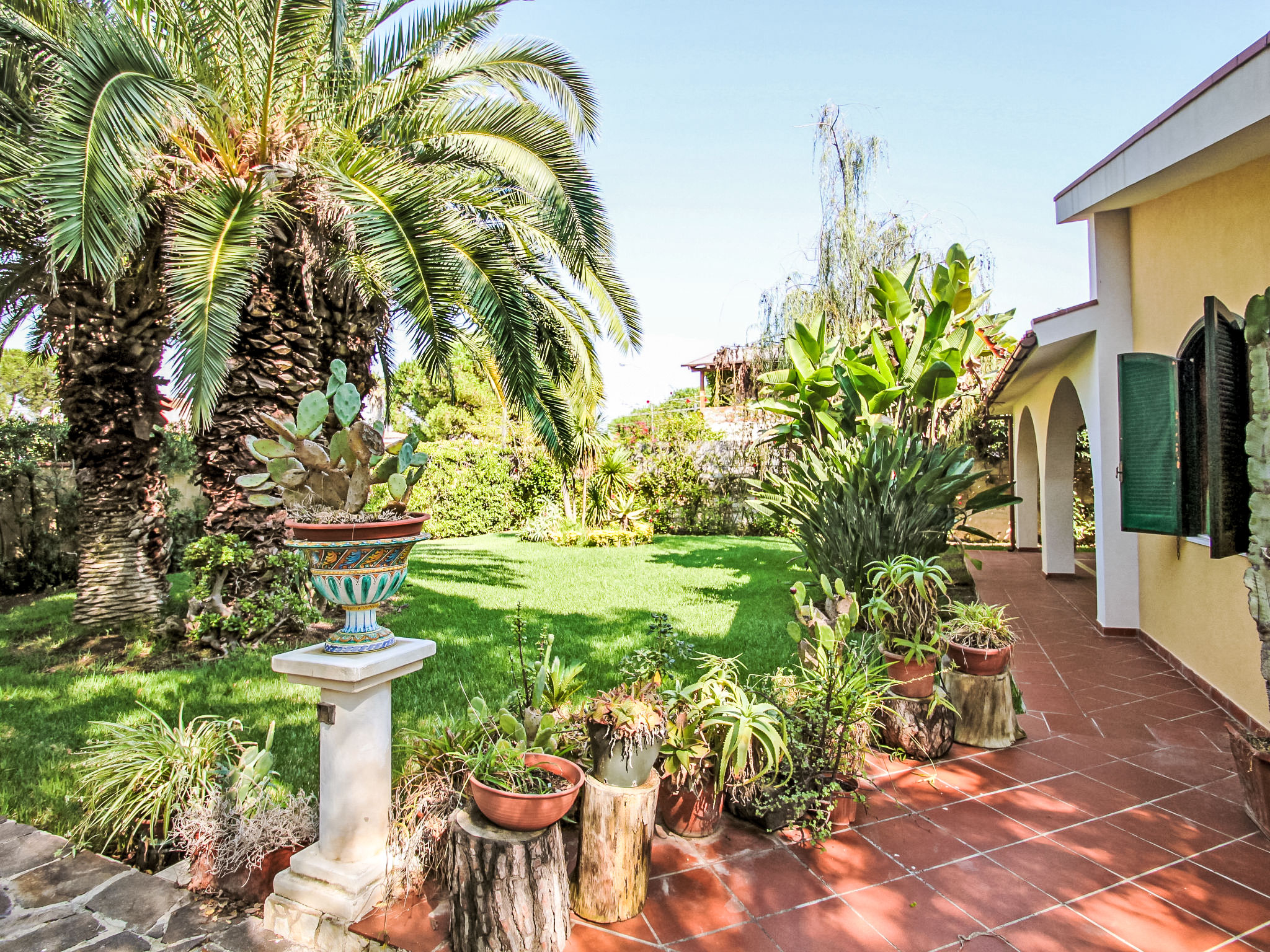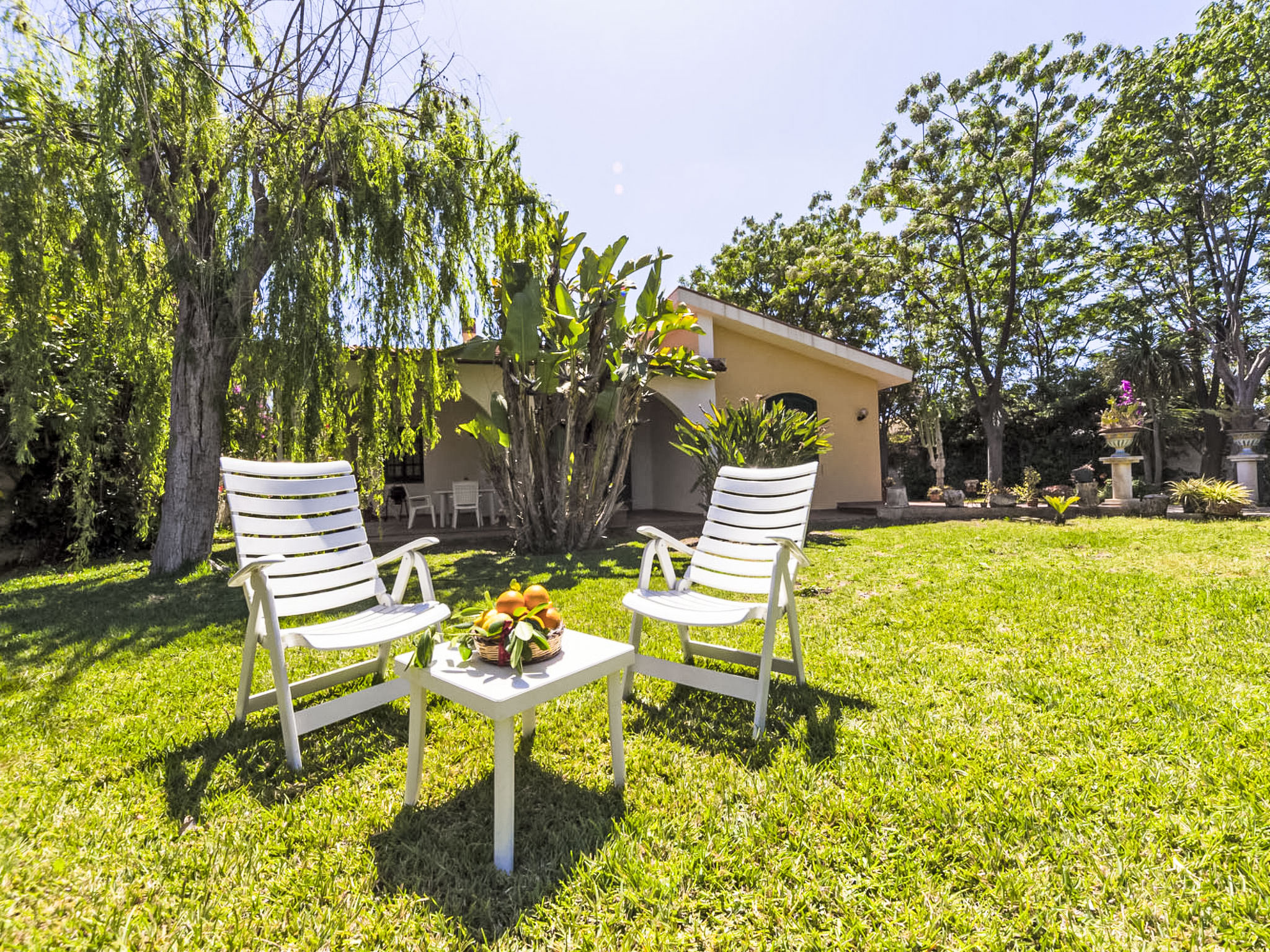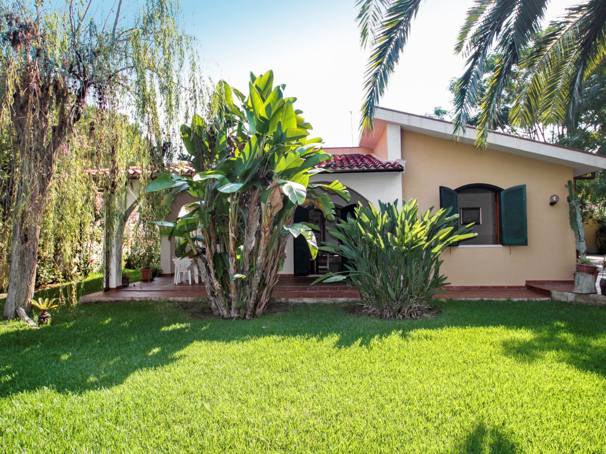 Arenella 9 km von Centro di Siracusa: Grosse, alleinstehende Villa "Orchidea". Ruhige, sonnige Lage, 200 m vom Meer. Zur Alleinbenutzung: Grundstück 2'000 m2 (eingezäunt), gepflegter Garten. Aussendusche, Parkplatz (für 2 Autos) auf dem Grundstück. Lebensmittelgeschäft 200 m, Supermarkt 2 km, Bar 2 km, Bushaltestelle "Siracusa Centro" 200 m, Sandstrand "Lido Arenella" 500 m.