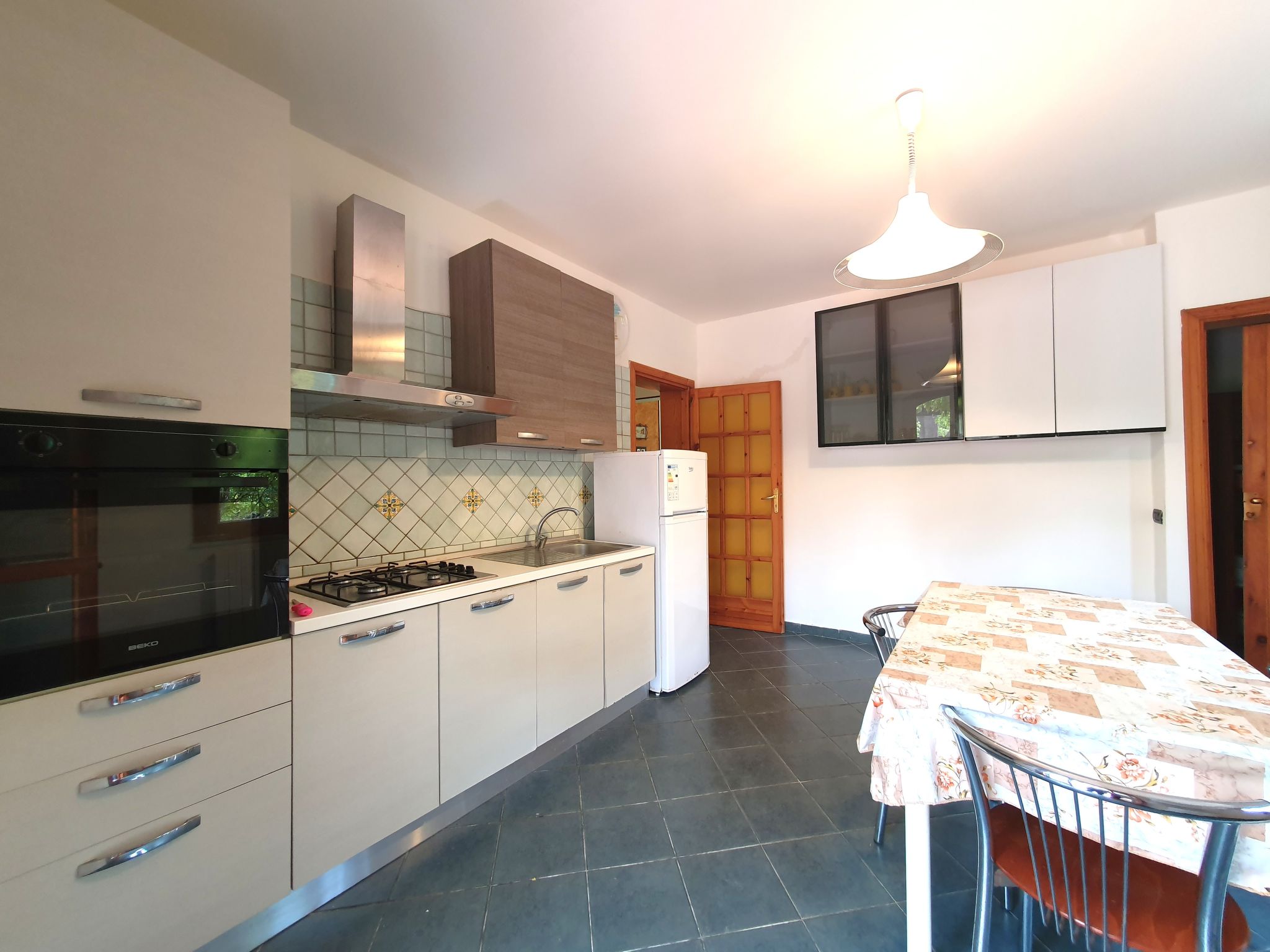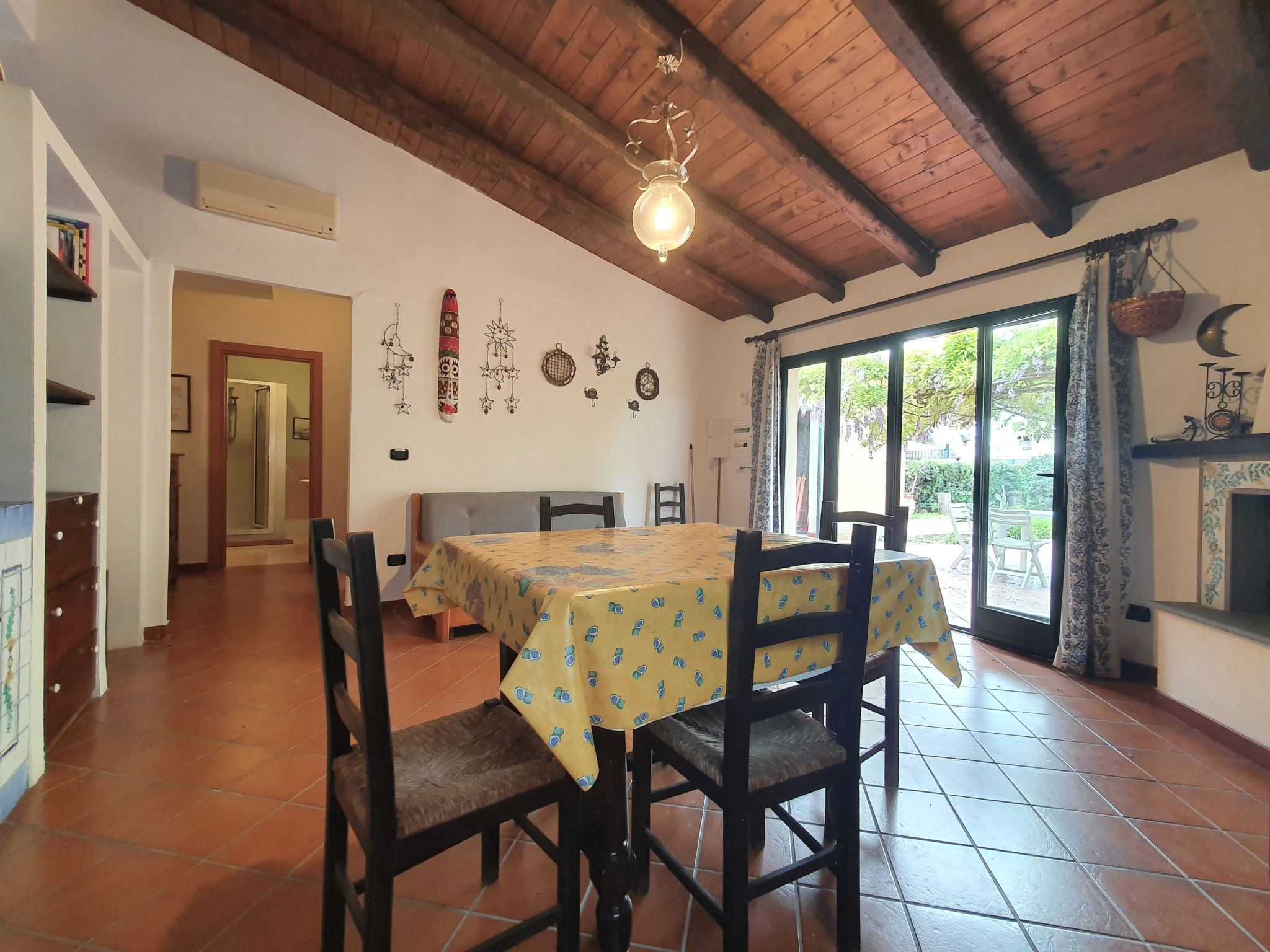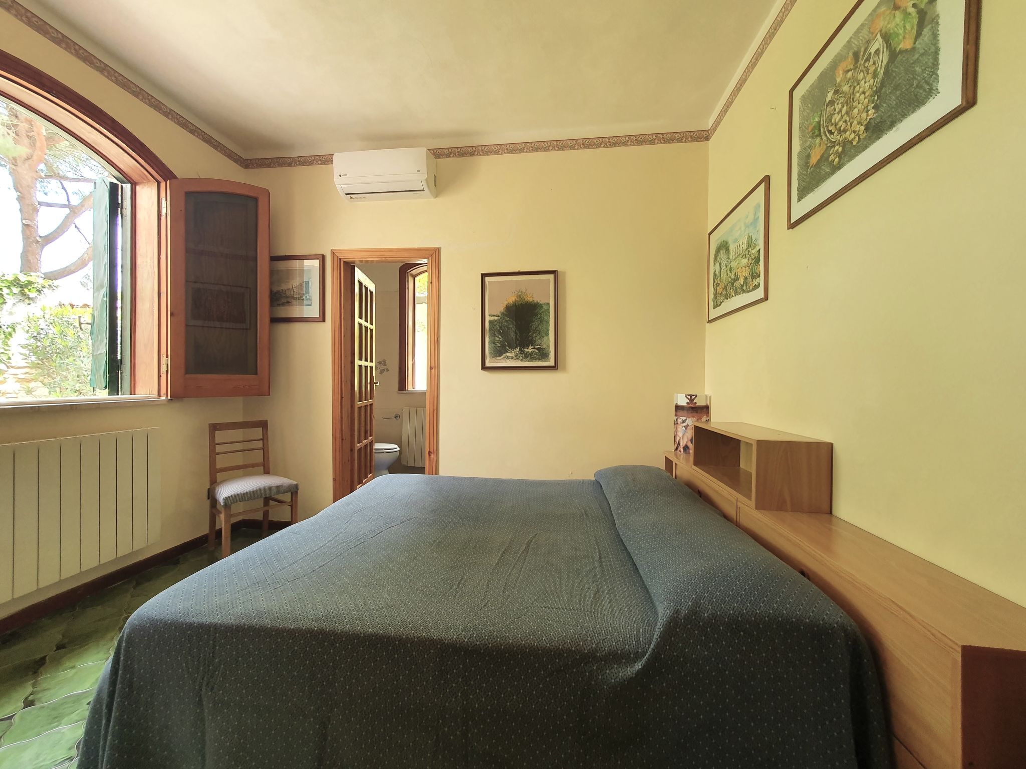 6-Zimmer-Villa 230 m2, im Erdgeschoss. Komfortabel eingerichtet: Wohn-/Esszimmer mit 1 Doppeldiwanbett (140 cm), offenem Kamin und Sat-TV (Flachbildschirm), Klimaanlage. Ausgang zum Gartensitzplatz. 3 Doppelzimmer, jedes Zimmer mit Klimaanlage. 1 Doppelzimmer mit Dusche/Bidet/WC und Klimaanlage. Wohn-/Esszimmer mit 1 Doppeldiwanbett und Sat-TV (Flachbildschirm), Klimaanlage. Ausgang zur Veranda. Küche (5 Kochplatten, Backofen, Tiefkühler). Ausgang zur Veranda. 2 Duschen/Bidet/WC. Grosser Gartensitzplatz 50 m2, überdacht. Terrassenmöbel, Gartengrill. Zur Verfügung: Waschmaschine, Bügeleisen, Babybett bis 2 Jahre (extra), Haartrockner. Internet (Wireless LAN, gratis). Maximal 1 Haustier/Hund erlaubt.