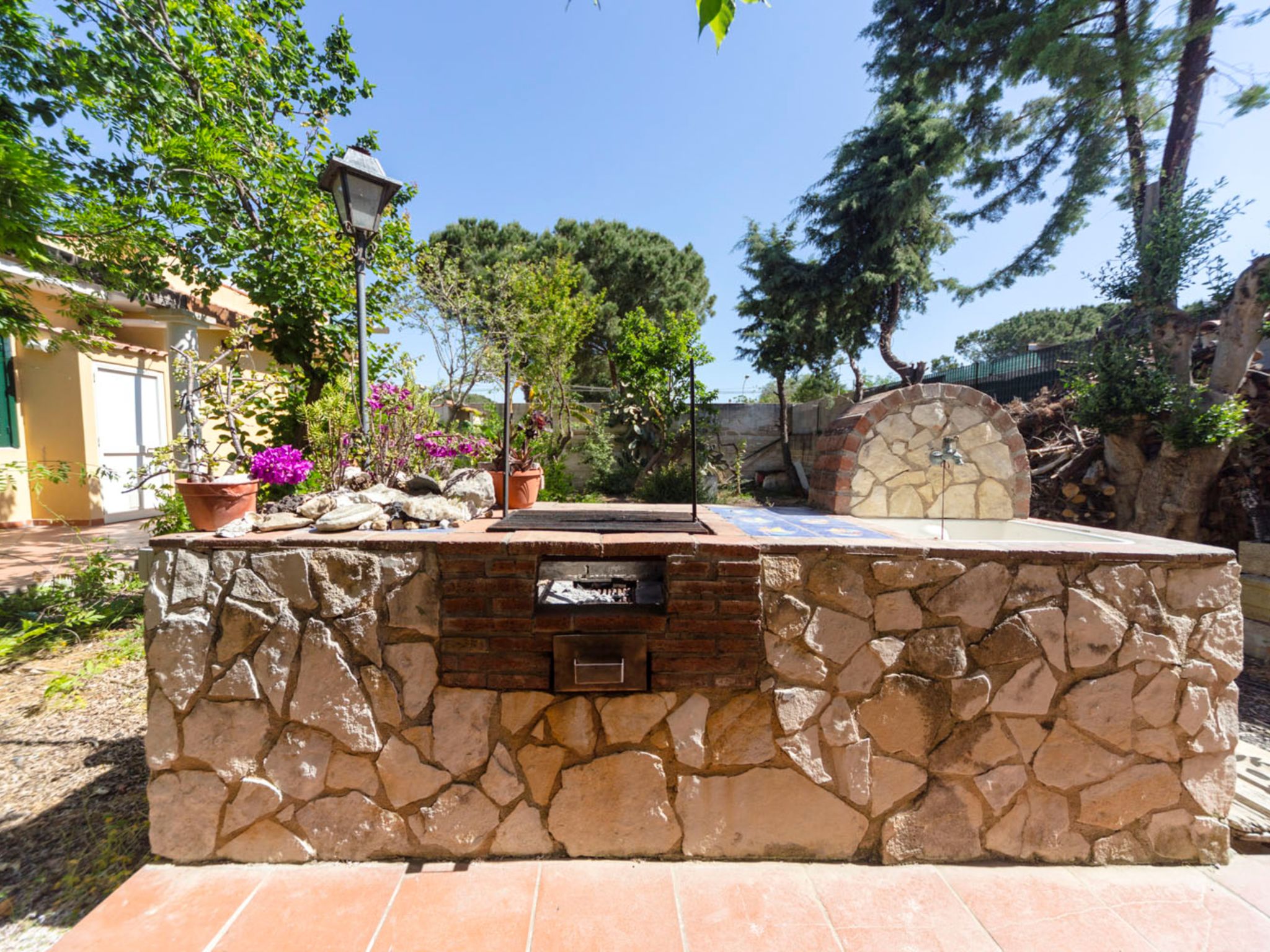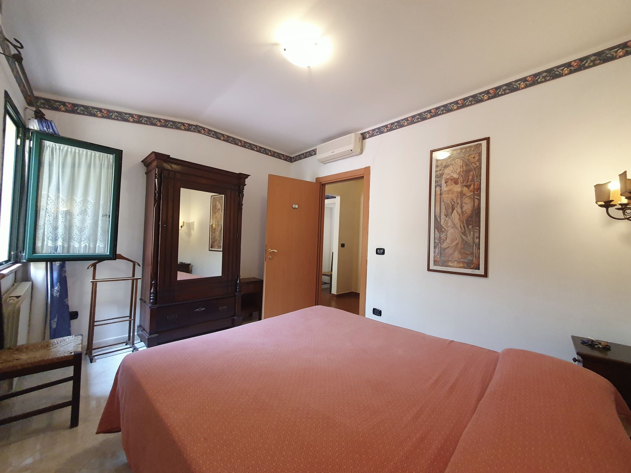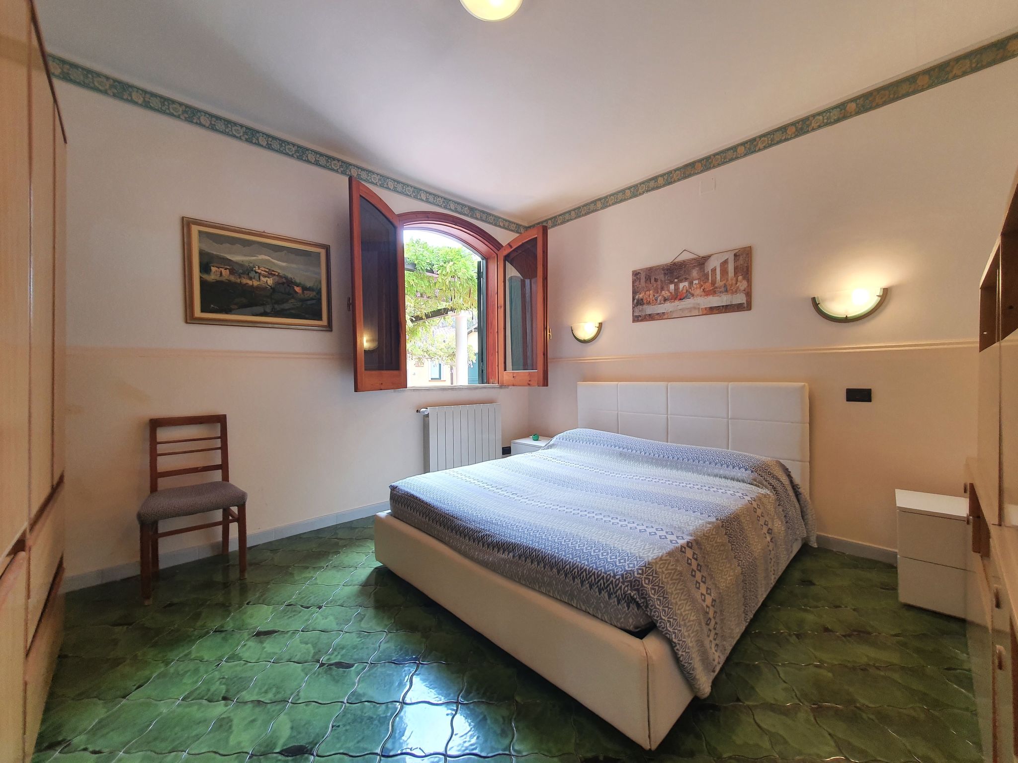 6-Zimmer-Villa 230 m2, im Erdgeschoss. Komfortabel eingerichtet: Wohn-/Esszimmer mit 1 Doppeldiwanbett (140 cm), offenem Kamin und Sat-TV (Flachbildschirm), Klimaanlage. Ausgang zum Gartensitzplatz. 3 Doppelzimmer, jedes Zimmer mit Klimaanlage. 1 Doppelzimmer mit Dusche/Bidet/WC und Klimaanlage. Wohn-/Esszimmer mit 1 Doppeldiwanbett und Sat-TV (Flachbildschirm), Klimaanlage. Ausgang zur Veranda. Küche (5 Kochplatten, Backofen, Tiefkühler). Ausgang zur Veranda. 2 Duschen/Bidet/WC. Grosser Gartensitzplatz 50 m2, überdacht. Terrassenmöbel, Gartengrill. Zur Verfügung: Waschmaschine, Bügeleisen, Babybett bis 2 Jahre (extra), Haartrockner. Internet (Wireless LAN, gratis). Maximal 1 Haustier/Hund erlaubt.