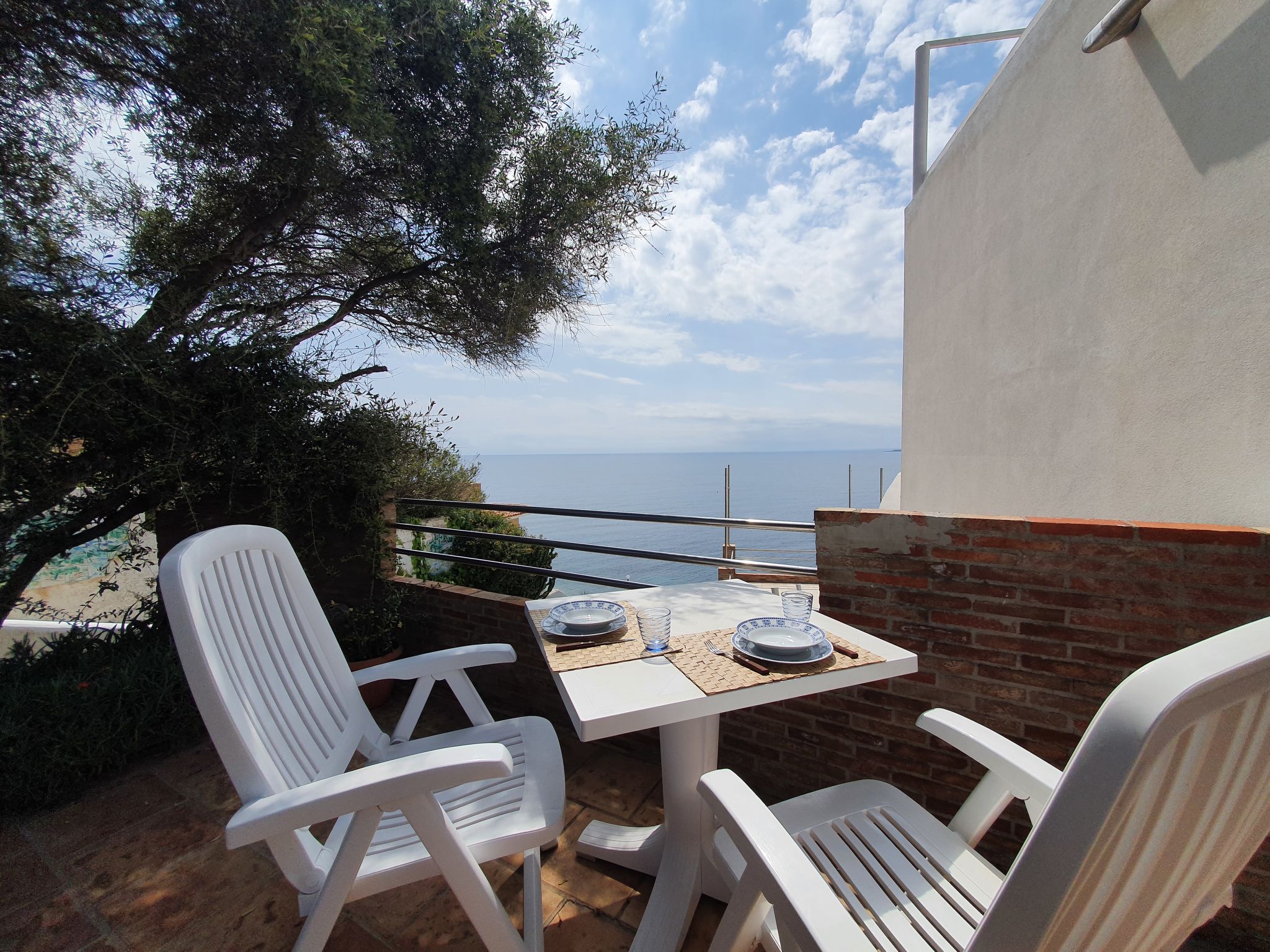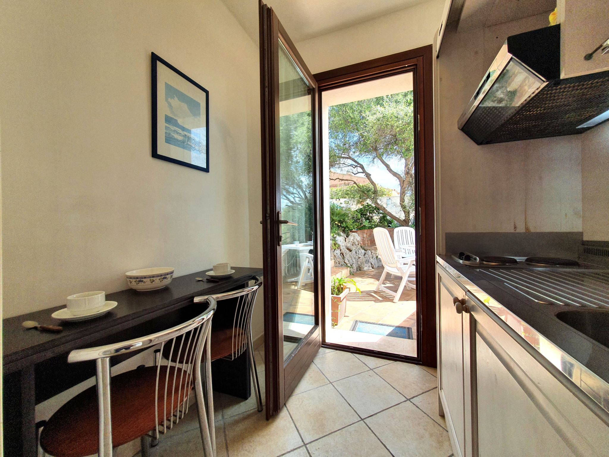 1-Zimmer-Studio 30 m2. Komfortabel eingerichtet: Wohn-/Esszimmer mit 1 Doppelbett und TV (Flachbildschirm). Kochnische (2 Kochplatten) mit Esstisch. Dusche/Bidet/WC. Klimaanlage. Kleine Terrasse. Terrassenmöbel. Sicht auf das Meer. Zur Verfügung: Safe, Babybett bis 2 Jahre (extra), Haartrockner. Internet (Wireless LAN, gratis). Parkplatz (1 Auto). Maximal 1 Haustier/Hund erlaubt.