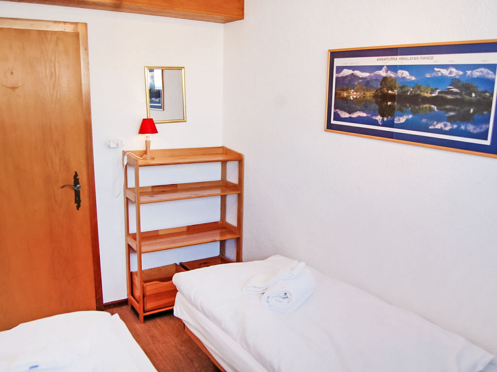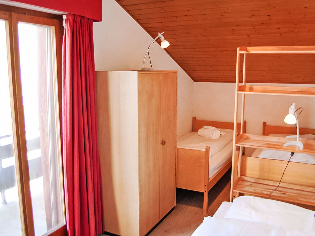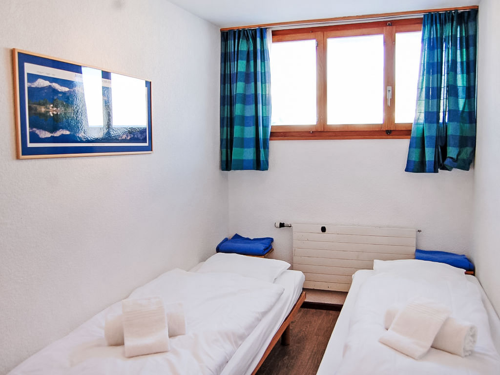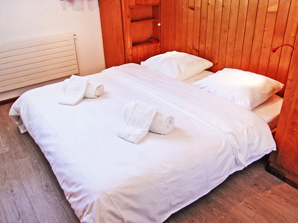 "Bouleaux I4", 4-Zimmer-Attikawohnung 100 m2 im 4. Stock. Grosses Wohn-/Esszimmer mit 1 Ausziehbett (2 Pers. 2 x 90 cm, Länge 190 cm), offenem Kamin, Kabel-TV und DVD. 1 Zimmer mit 1 Doppelbett (2 x 90 cm, Länge 190 cm). 1 kleines Zimmer mit 2 Betten (80 cm, Länge 200 cm). 1 kleines Zimmer mit 3 Betten (90 cm, Länge 190 cm). Küche (3 Kochplatten, Backofen, Geschirrspüler, Mikrowelle, Racletteofen, Fondue Set (Käse)). Bad/WC, Dusche/WC. Balkon, Südostlage, kleiner Balkon, Nordwestlage. Schöne Sicht auf die Berge, das Tal und die Ortschaft. Zur Verfügung: Kinderhochstuhl, Babybett, Haartrockner. Internet (Wireless LAN, gratis). Parkplatz Nr. i4 baccara (2 Autos) in 50 m. Bitte beachten: Nichtraucher-Unterkunft.