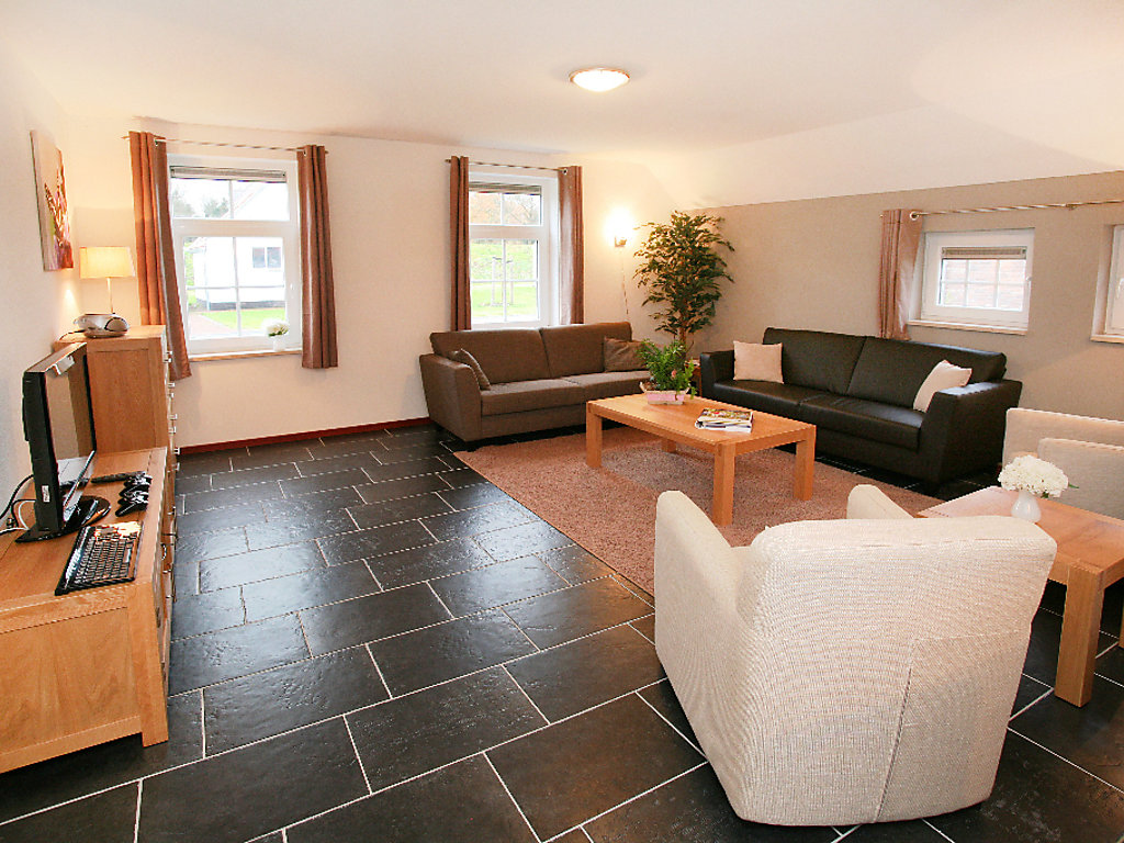 "9 persoons Comfort", 5-Zimmer-Bauernhaus 122 m2. Geräumig, komfortabel und stilvoll eingerichtet: Eingang mit sep. WC. Offenes Wohn-/Esszimmer mit Esstisch, Flachbildschirm und Radio. Ausgang zur Terrasse. 2 Doppelzimmer, jedes Zimmer mit 2 Betten. Offene Küche (5 Kochplatten, Geschirrspüler, Wasserkocher, Mikrowelle, elektrische Kaffeemaschine). Dusche, sep. WC, Doppelwaschbecken. Obergeschoss: 1 Zimmer mit 3 Betten und Flachbildschirm. 1 Doppelzimmer mit 2 Betten und Flachbildschirm mit sep. WC. Bad/Dusche, Doppelwaschbecken. Bodenheizung. Terrassenmöbel. Sicht auf den Garten. Zur Verfügung: Internet (Wireless LAN, extra). Parkplatz beim Haus. Bitte beachten: geeignet für Familien. Nichtraucher-Haus. Rauchmelder. Haustiere auf Anfrage.