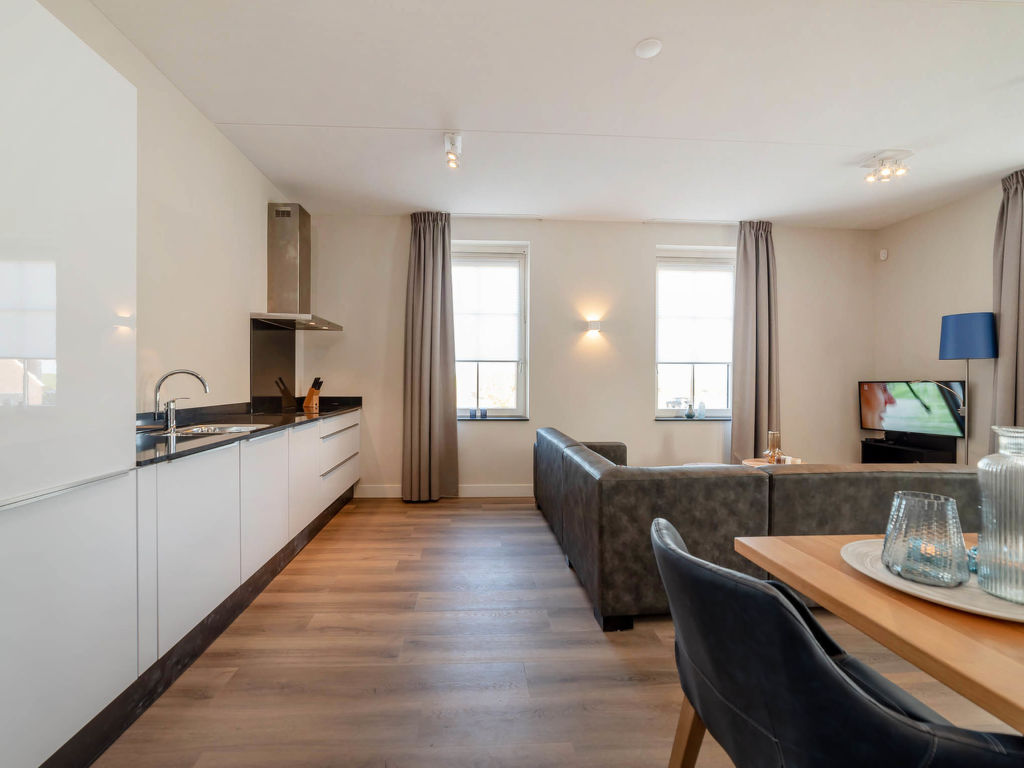 "Raadhuis", 3-Zimmer-Wohnung 66 m2. Komfortabel eingerichtet: Eingang mit sep. WC. Offenes Wohn-/Esszimmer mit Esstisch und TV (Flachbildschirm), Radio und CD. Ausgang zum Balkon. 2 Doppelzimmer, jedes Zimmer mit 2 Betten (90 cm, Länge 210 cm), TV (Flachbildschirm). Offene Küche (4 Kochplatten, Backofen, Geschirrspüler, Wasserkocher, Mikrowelle, elektrische Kaffeemaschine, Kapseln für die Kaffeemaschine (Nespresso)). Dusche/WC, Whirlbadewanne, Sauna. Abstellkammer. Zur Verfügung: Haartrockner. Internet (Wireless LAN, gratis). Parkplatz (2 Autos). Bitte beachten: Nichtraucher-Haus. Rauchmelder. Die Wohnungen haben Fußbodenheizung. Haustier auf Anfrage.