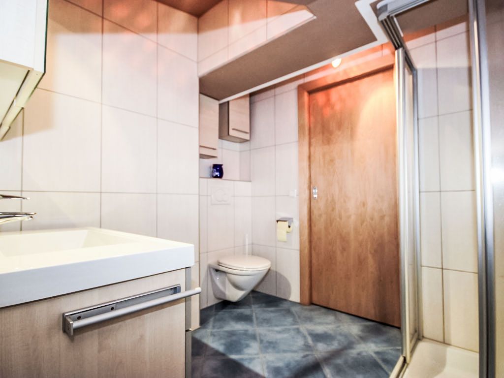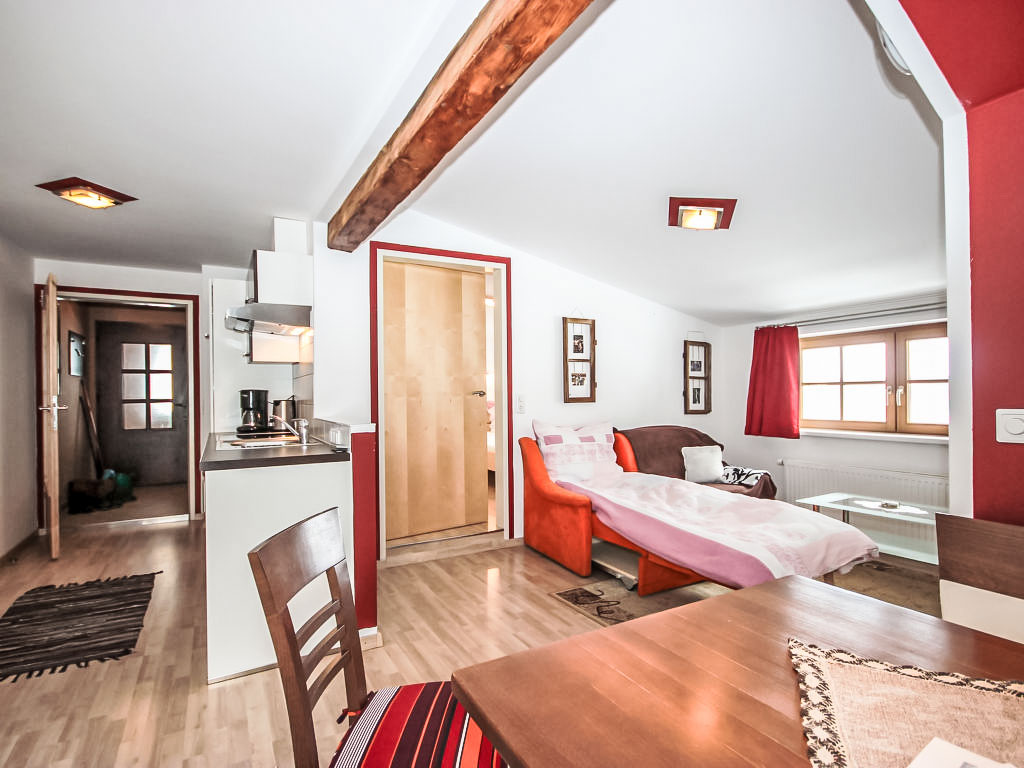 "Caro", 2-Zimmer-Wohnung 50 m2, im Dachgeschoss. Objekt geeignet für 2 Erwachsene + 2 Kinder. Teilweise abgeschrägt, schön und gemütlich eingerichtet: Eingang. 1 Zimmer mit 1 franz. Bett (140 cm, Länge 200 cm), Kabel-TV (Flachbildschirm). Wohn-/Schlafzimmer mit 1 Doppeldiwanbett, Esstisch und Kabel-TV (Flachbildschirm). Ausgang zum Balkon. Offene Küche (Backofen, Tiefkühler, elektrische Kaffeemaschine). Dusche/WC. Balkon, Südlage. Balkonmöbel, Abstellkammer. Herrliche Sicht auf die Berge und die Landschaft. Zur Verfügung: Internet (Wireless LAN, gratis). Bitte beachten: eigener Eingang, kein Fahrstuhl.