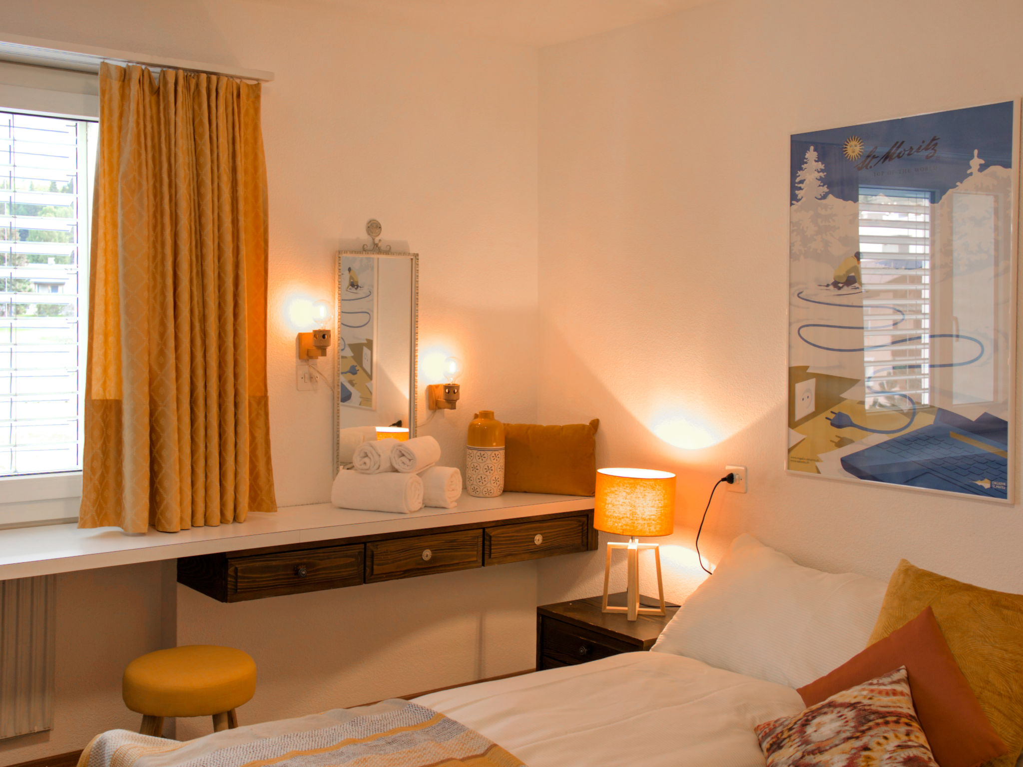St. Moritz-Bad: Sehr grosses Mehrfamilienhaus "Chesa Ova Cotschna", auf 9 Stockwerken, renoviert im Jahre 2011. Im Ort, 350 m vom Zentrum von St.Moritz-Bad, ruhige, sonnige Lage, 300 m vom See, 900 m vom Skigebiet. Im Hause: Fahrstuhl, Einstellraum für Fahrräder, Skiraum, Zentralheizung. Einkaufsgeschäft 350 m, Supermarkt 800 m, Restaurant 50 m, Bar 350 m, Bäckerei 600 m, Café, Fahrradverleih 350 m, Bushaltestelle "St. Moritz Bad, Sonne" 50 m, Bahnstation 2 km, Hallenbad 400 m, Thermalbad "Heilbadzentrum St. Moritz" 600 m, See St. Moritzer See 300 m. Golfplatz (18 Loch) 7.3 km, Surfschule 5.3 km, Tennis 1 km, Tennishalle 1 km, Minigolf 400 m, Reitstall 2.8 km, Wanderwege ab Haus, Radweg 200 m, Luftseilbahn, Skilift, Skipisten 900 m, Skiverleih 350 m, Skibushaltestelle 50 m, Skischule 2 km, Kinderskischule 2 km, Schlittelbahn 5.7 km, Langlaufloipe 100 m, Eisfeld 450 m, Kinderspielplatz 500 m. Nahe gelegene Sehenswürdigkeiten: Segantini Museum 2.2 km, Engadiner Museum 1.2 km, Mili Weber-Haus 2.9 km, Olympia Bob Run mit Museum 2.6 km, Nietzsche Museum in Sils-Maria 9.5 km. Bekannte Skigebiete sind gut erreichbar: Corviglia Piz Nair 900 m, Corvatsch - Furtschellas 6.5 km, Diavolezza - Lagalb 20 km. Bekannte Seen in der Umgebung sind gut erreichbar: St.Moritzer See 300 m, Silvaplaner See 5.2 km, Silser See 9.5 km. Wandergebiete: Stazerwald & Stazersee, Corviglia Piz Nair, Muottas Muragl. Bitte beachten: Die Schlüsselübergabe findet bei der Agentur Interhome in St. Moritz Bad statt. In diesem Haus sind weitere Ferienwohnungen mietbar.