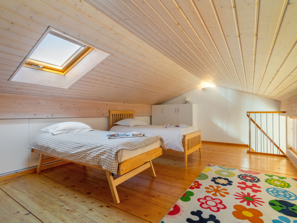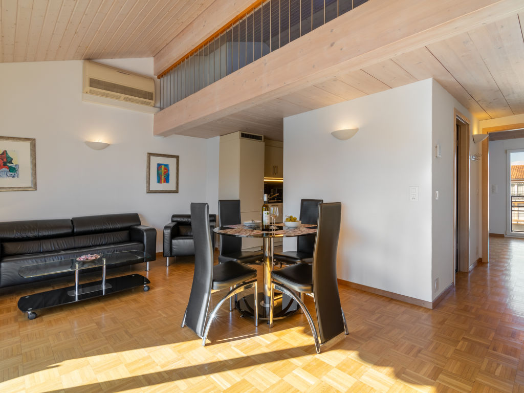 "Vasco de Gama B11/2", 2-Zimmer-Wohnung 80 m2 auf 2 Stockwerken. Teilweise abgeschrägt, geschmackvoll eingerichtet: Wohn-/Esszimmer mit Esstisch und Sat-TV (Flachbildschirm), Stereoanlage. Ausgang zum Balkon. 1 Zimmer mit 1 Doppelbett (1 x 160 cm, Länge 200 cm). Kleine, offene Küche (Backofen, Geschirrspüler, 4 Glaskeramikherd Platten, Mikrowelle, Tiefkühler, elektrische Kaffeemaschine, Kapseln für die Kaffeemaschine (Nespresso) extra). Dusche/WC. Bodenheizung. Obergeschoss: abgeschrägte, offene Galerie mit 2 Betten (90 cm, Länge 190 cm). Kleiner Balkon. Balkonmöbel. Schöne Sicht auf die Berge und den Kanal. Zur Verfügung: Waschmaschine, Wäschetrockner, Bügeleisen, Haartrockner. Internet (Wireless LAN, gratis). Parkplatz Nr. 47 (überdacht). Bitte beachten: Nichtraucher-Unterkunft. 1 Haustier/Hund erlaubt.