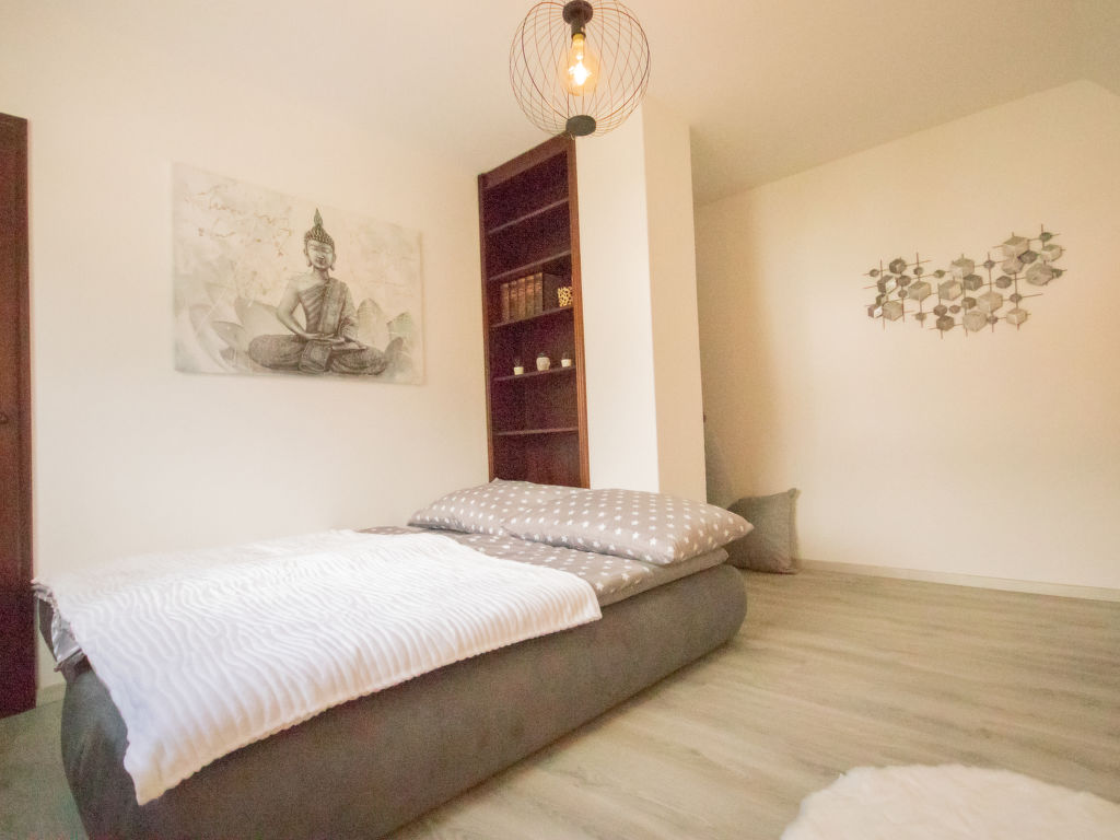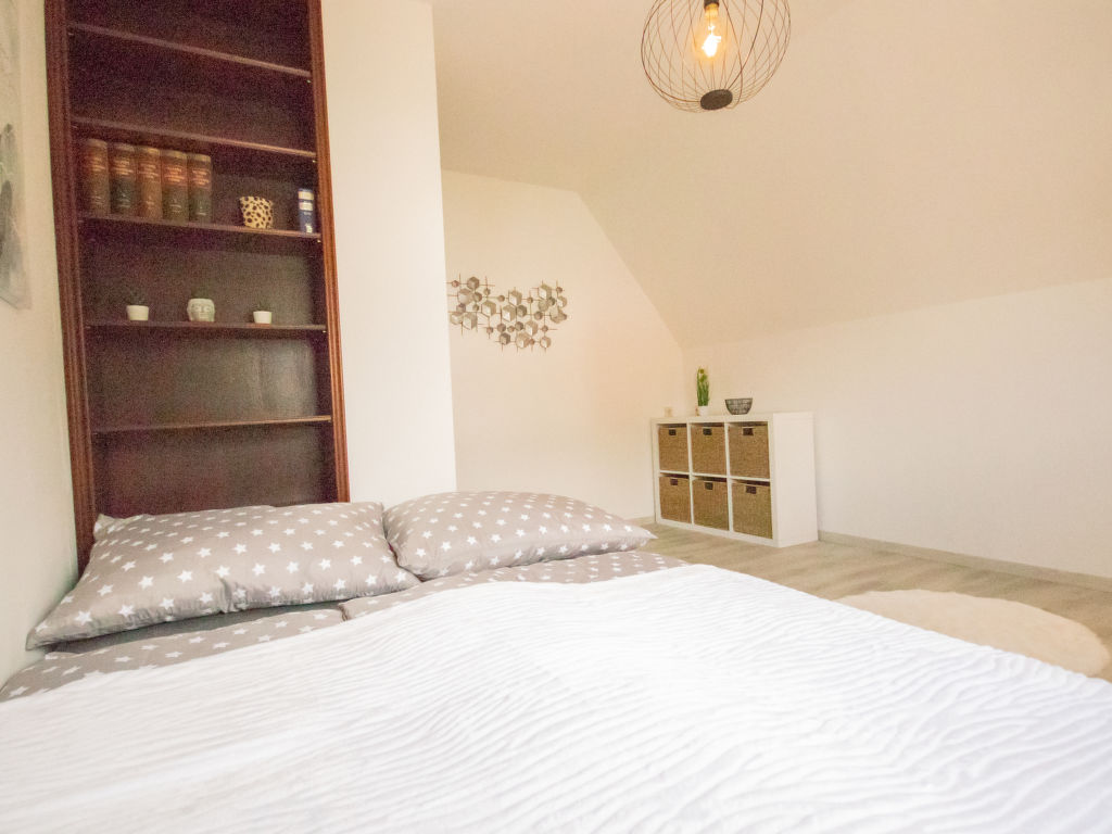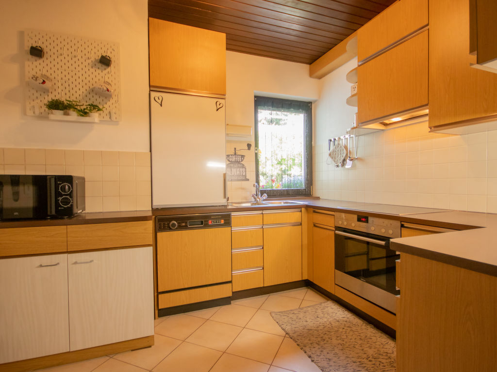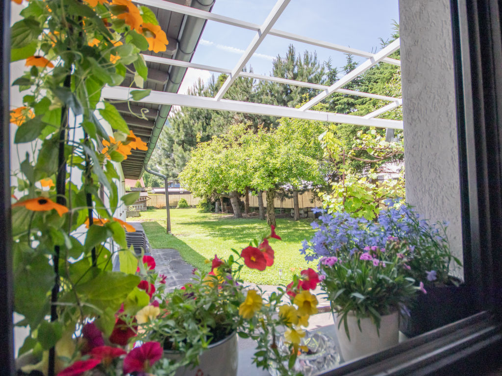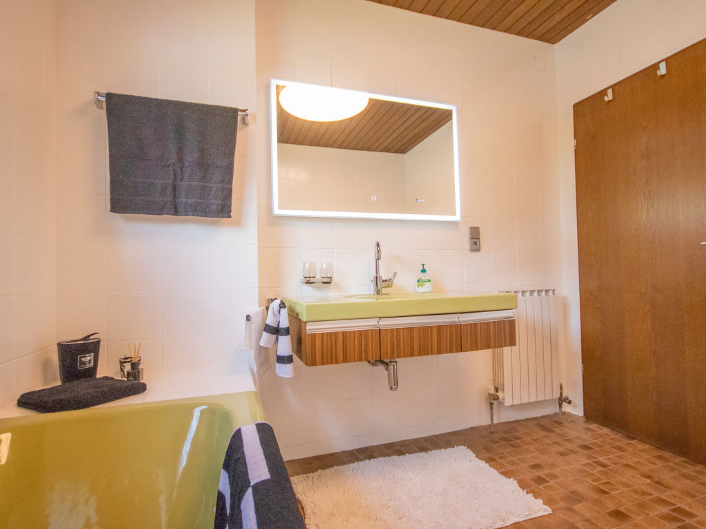 5-Zimmer-Haus 170 m2 auf 2 Stockwerken. Geräumig, sehr schön eingerichtet: Eingang. Grosses Wohn-/Esszimmer mit Esstisch und Sat-TV (Flachbildschirm). Ausgang zum Garten. 1 grosses Zimmer mit 2 Betten. Ausgang zum Garten. Küche (Backofen, Geschirrspüler, Toaster, Wasserkocher, Mikrowelle, elektrische Kaffeemaschine). Bad/WC. Obergeschoss: 1 Doppelzimmer. 1 Zimmer mit 1 Doppelbett (140 cm, Länge 200 cm). 1 Zimmer mit 1 Doppeldiwanbett. Dusche/WC. Terrassenmöbel, Gartengrill, Liegestühle. Herrliche Sicht auf die Berge. Zur Verfügung: Haartrockner. Internet (Wireless LAN, gratis). Bitte beachten: Kühlschrank ohne Gefrierfach, Nichtraucher-Haus.