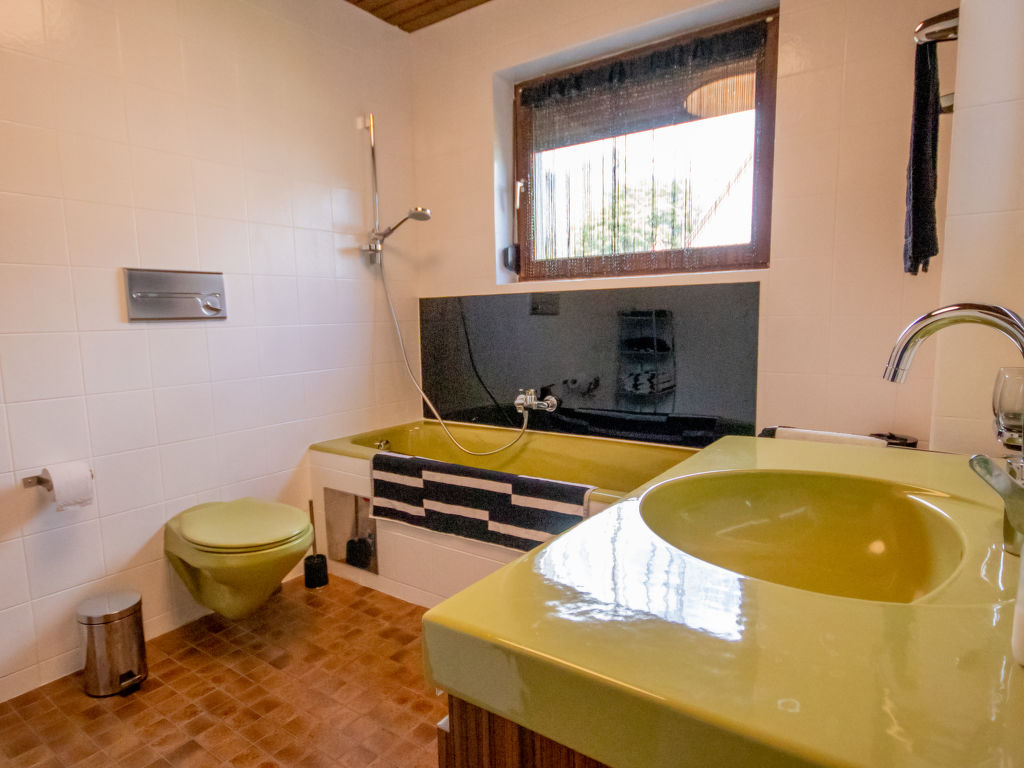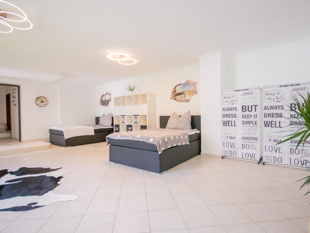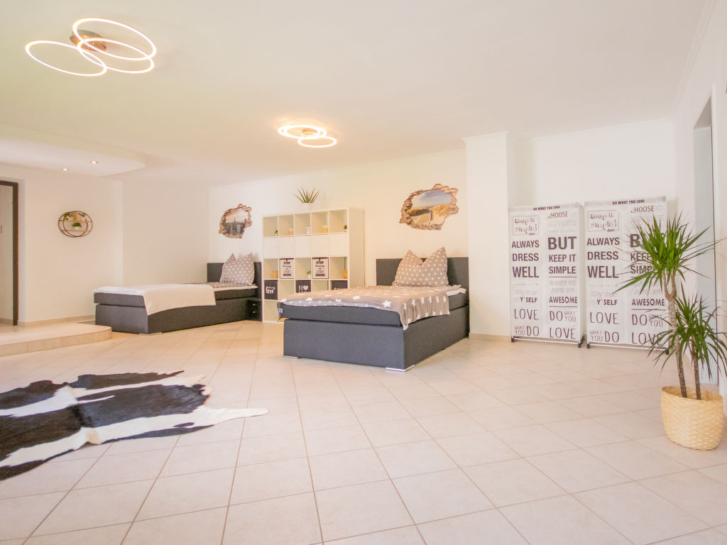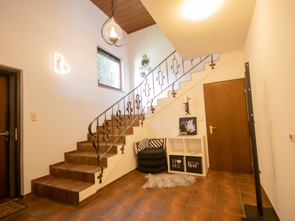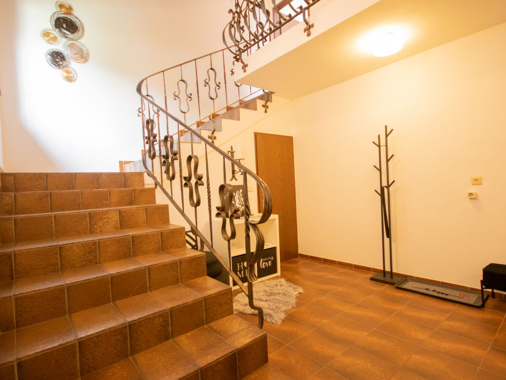 5-Zimmer-Haus 170 m2 auf 2 Stockwerken. Geräumig, sehr schön eingerichtet: Eingang. Grosses Wohn-/Esszimmer mit Esstisch und Sat-TV (Flachbildschirm). Ausgang zum Garten. 1 grosses Zimmer mit 2 Betten. Ausgang zum Garten. Küche (Backofen, Geschirrspüler, Toaster, Wasserkocher, Mikrowelle, elektrische Kaffeemaschine). Bad/WC. Obergeschoss: 1 Doppelzimmer. 1 Zimmer mit 1 Doppelbett (140 cm, Länge 200 cm). 1 Zimmer mit 1 Doppeldiwanbett. Dusche/WC. Terrassenmöbel, Gartengrill, Liegestühle. Herrliche Sicht auf die Berge. Zur Verfügung: Haartrockner. Internet (Wireless LAN, gratis). Bitte beachten: Kühlschrank ohne Gefrierfach, Nichtraucher-Haus.