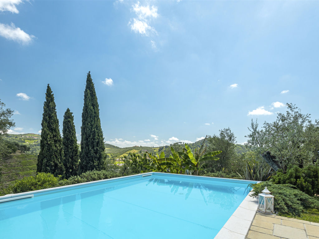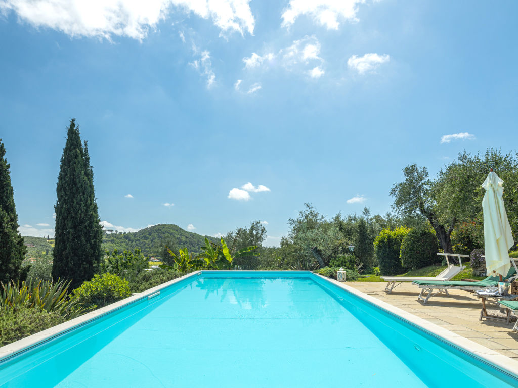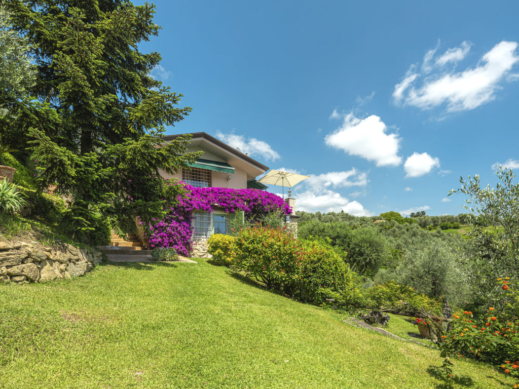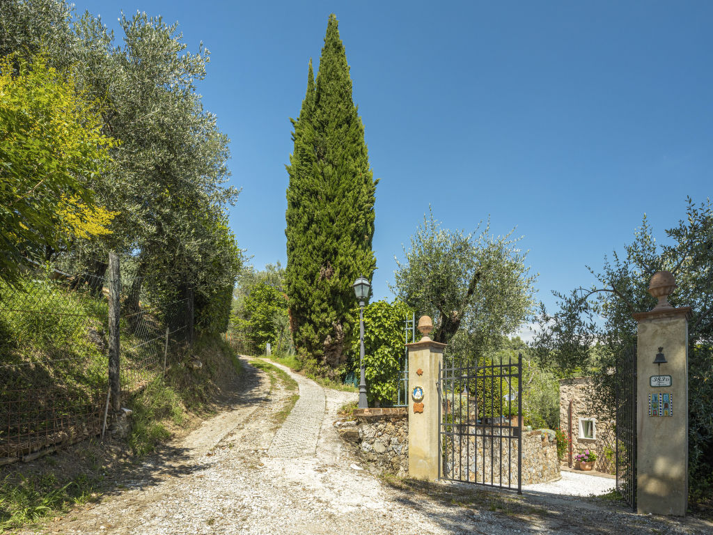 Stiava 5 km von Corsanico: Schönes Einfamilienhaus "Pino", umgeben von Bäumen. Oberhalb von Stiava (1.3 km), 5 km vom Zentrum von Corsanico, 14.5 km vom Zentrum von Viareggio, ausserhalb des Ortes, 28 km vom Zentrum von Pisa, erhöhte Lage am Hang, 13.5 km vom Meer, im Grünen. Zur Alleinbenutzung: Terrassengarten, 4'500 m2 mit Bäumen, Wiese, Obstgarten, Schwimmbad (12 x 5 m, 150 cm tief, 16.05.-26.09.) mit Salzelektrolyse-Reinigungssystem. Aussendusche, Terrasse, Poolpflege durch den Besitzer/Gärtner. Steile, schmale Zufahrt (600 m Naturweg). Parkplatz (für 2 Autos) auf dem Grundstück. Lebensmittelgeschäft 1.3 km, Bahnstation "Viareggio" 14.5 km, Sandstrand "Lido di Camaiore" 13.5 km. Ab Hof Verkauf von bäuerlichen Produkten.