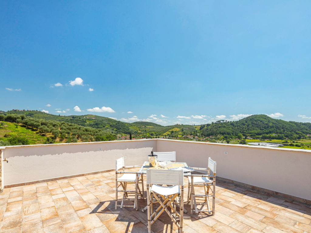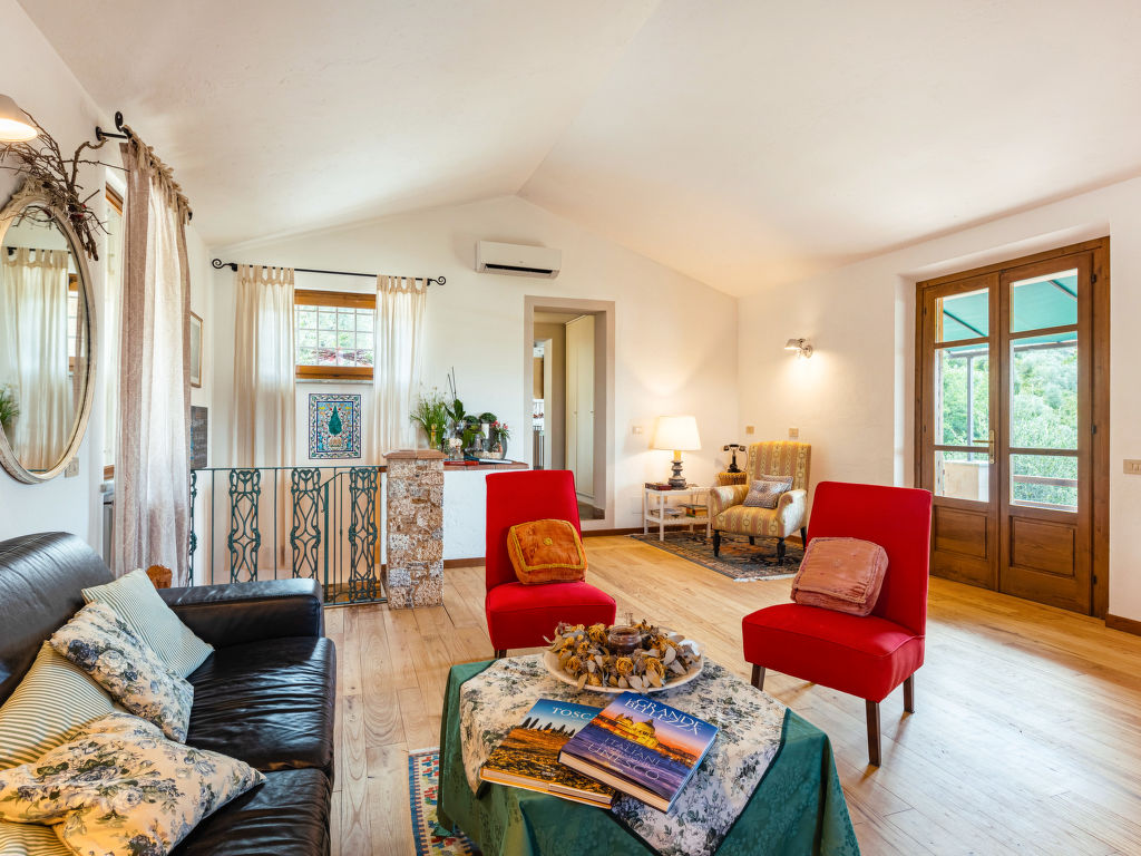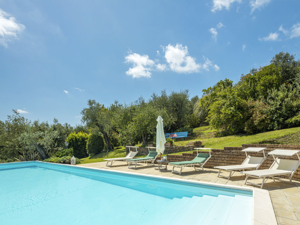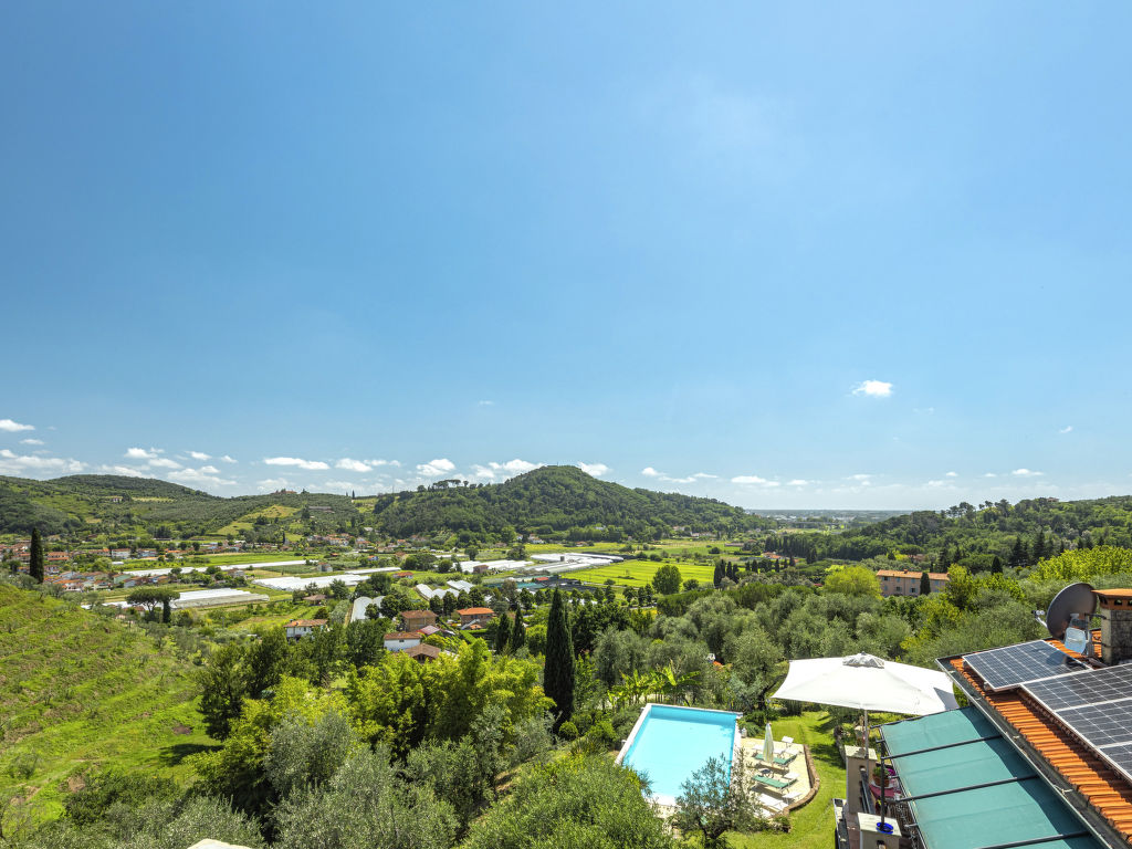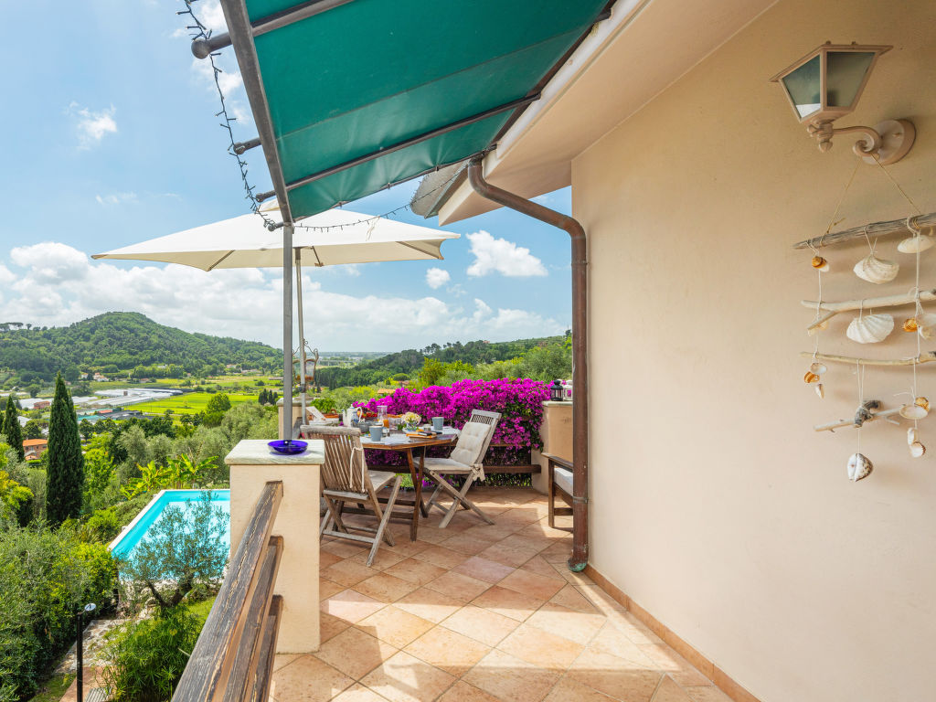 Stiava 5 km von Corsanico: Schönes Einfamilienhaus "Pino", umgeben von Bäumen. Oberhalb von Stiava (1.3 km), 5 km vom Zentrum von Corsanico, 14.5 km vom Zentrum von Viareggio, ausserhalb des Ortes, 28 km vom Zentrum von Pisa, erhöhte Lage am Hang, 13.5 km vom Meer, im Grünen. Zur Alleinbenutzung: Terrassengarten, 4'500 m2 mit Bäumen, Wiese, Obstgarten, Schwimmbad (12 x 5 m, 150 cm tief, 16.05.-26.09.) mit Salzelektrolyse-Reinigungssystem. Aussendusche, Terrasse, Poolpflege durch den Besitzer/Gärtner. Steile, schmale Zufahrt (600 m Naturweg). Parkplatz (für 2 Autos) auf dem Grundstück. Lebensmittelgeschäft 1.3 km, Bahnstation "Viareggio" 14.5 km, Sandstrand "Lido di Camaiore" 13.5 km. Ab Hof Verkauf von bäuerlichen Produkten.