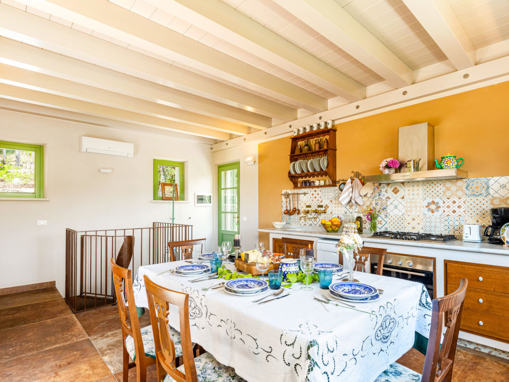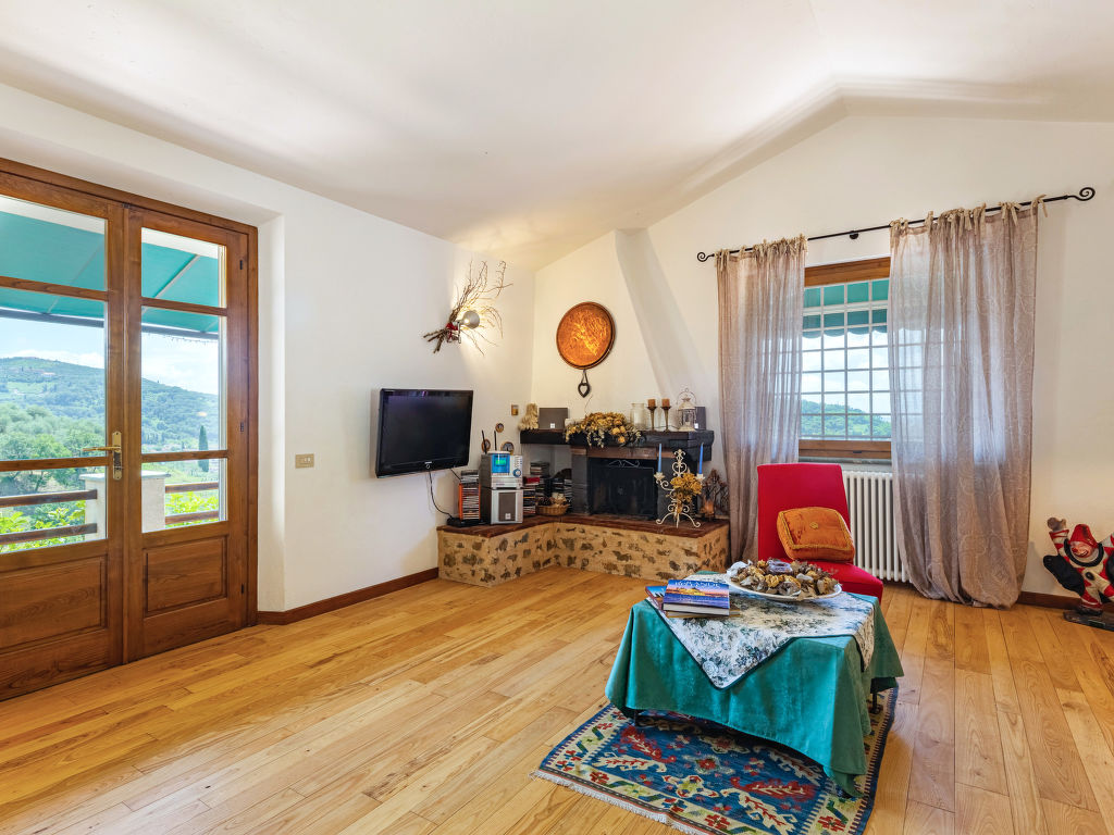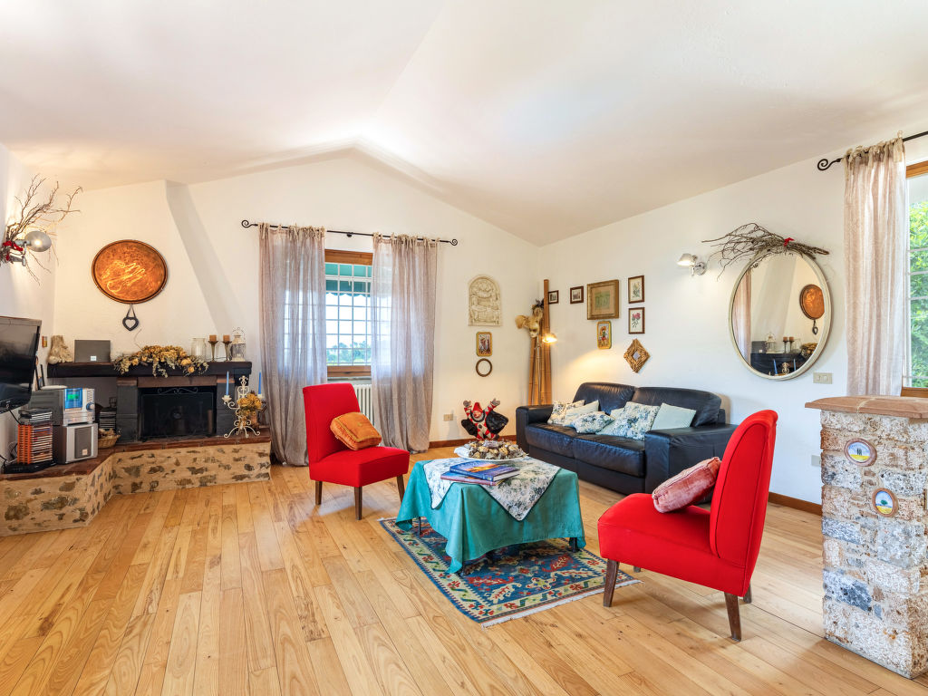 5-Zimmer-Haus 175 m2 auf 2 Stockwerken. Schön und gemütlich eingerichtet: Wohnzimmer mit offenem Kamin (nur Deko), Sat-TV und Klimaanlage. Küche (Backofen, Geschirrspüler, 5 Flammen, Toaster, Wasserkocher, Mikrowelle, Tiefkühler, elektrische Kaffeemaschine) mit Esstisch, Klimaanlage. Ausgang zum Garten. Unteres Geschoss: 2 Zimmer, jedes Zimmer mit 1 Doppelbett. Ausgang zur Terrasse. 1 Zimmer mit 2 Betten (80 cm). 1 Zimmer mit 1 Doppelbett und Dusche/Bidet/WC. Ausgang zum Garten. 2 Duschen/Bidet/WC. G-Heizung. Holzböden. Terrasse teilweise überdacht, 2 Terrassen. Terrassenmöbel, Gartengrill, Liegestühle (6), Abstellkammer. Sehr schöne Sicht auf die Landschaft und den Wald. Zur Verfügung: Waschmaschine, Fliegengitter, Babybett, Haartrockner. Internet (Wireless LAN, gratis). Bitte beachten: Nichtraucher-Unterkunft.