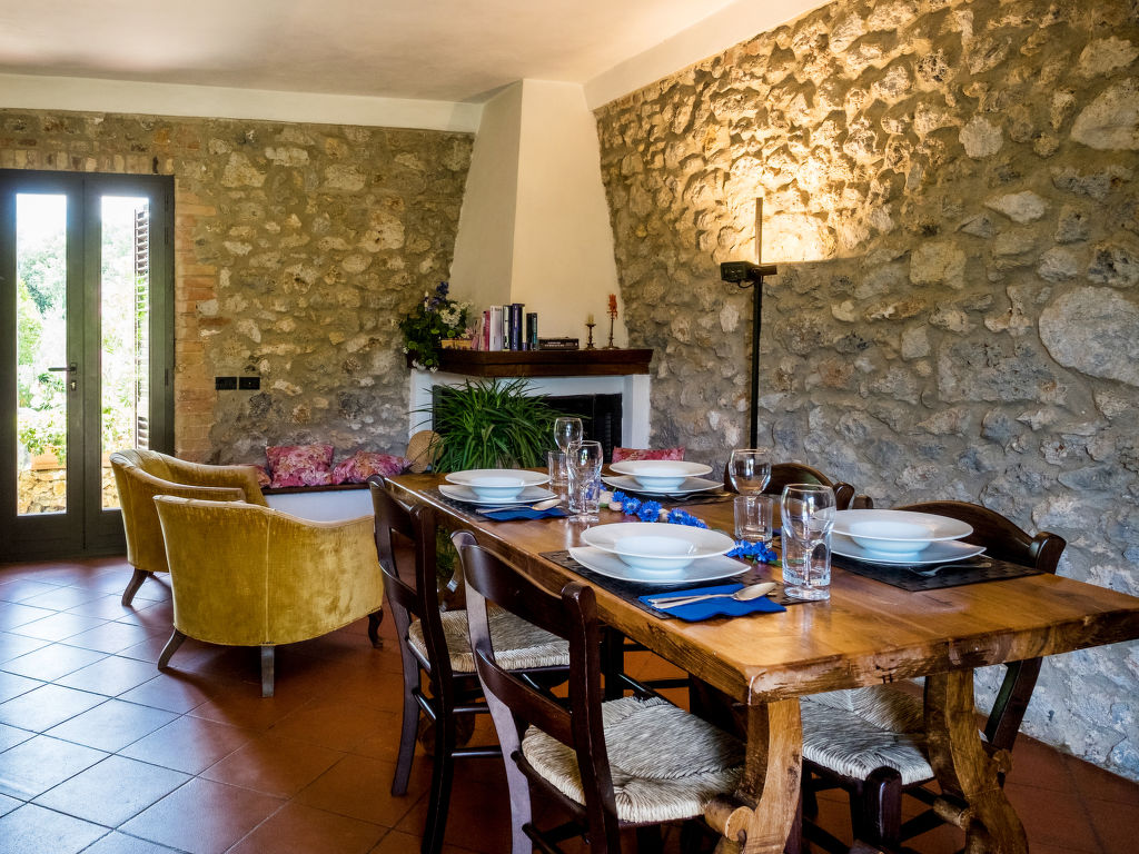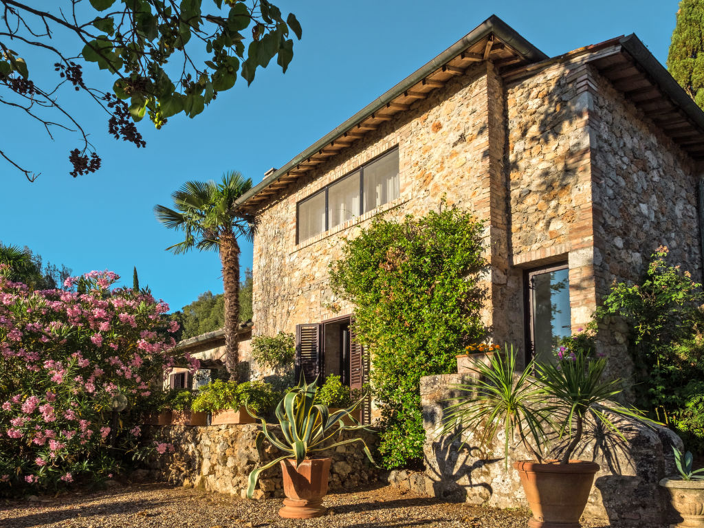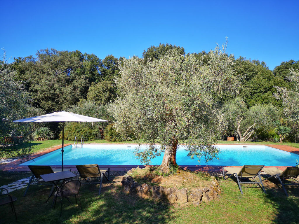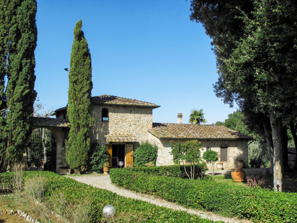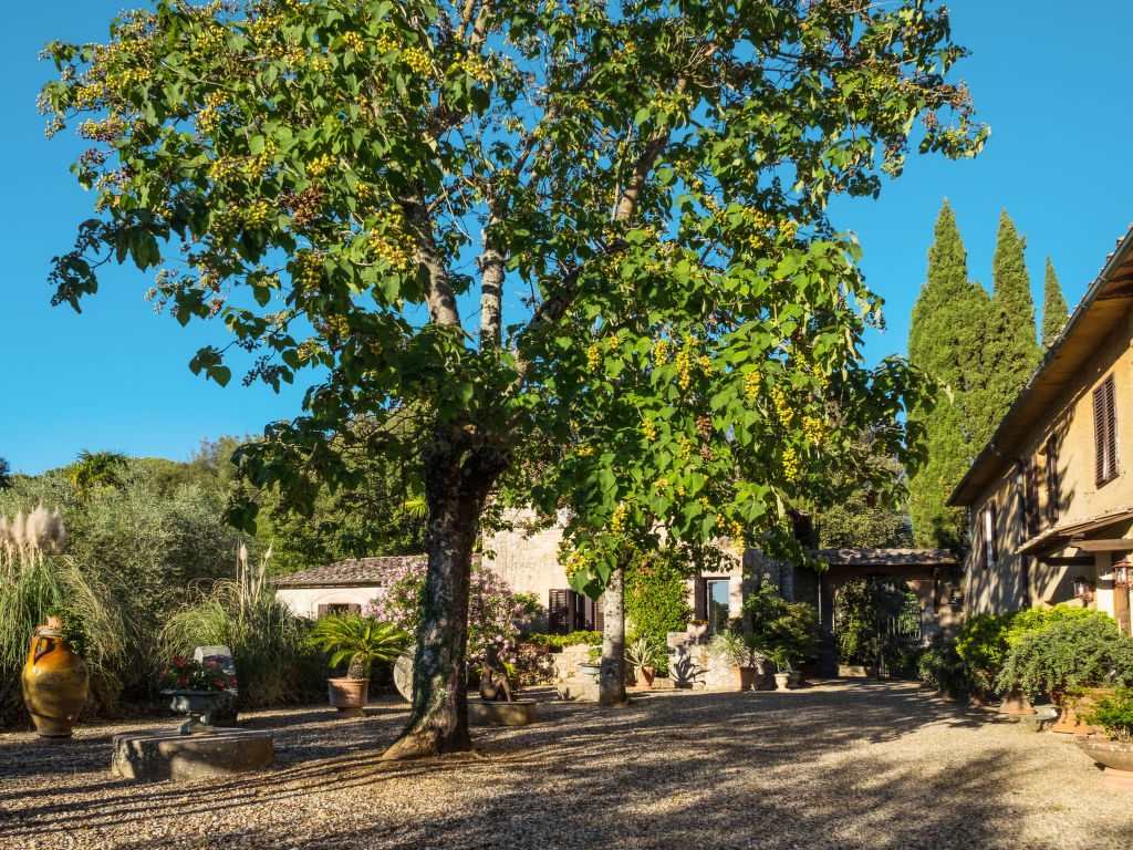 Montecagnano 12 km von Siena: Schöner, alleinstehender Landwirtschaftlicher Betrieb "Bellaria", auf 2 Stockwerken, umgeben von Bäumen. 4 Häuser in der Residenz. 4 Wohnungen in der Residenz. 12 km vom Zentrum von Siena, 1.1 km vom Zentrum von Montecagnano, ausserhalb des Ortes, 67 km vom Zentrum von Firenze, alleinstehende Lage, 92 km vom Meer. Zur Mitbenutzung: schöner Terrassengarten, 3 ha (eingezäunt) mit Pflanzen und Bäumen, Naturgarten, Obstgarten, Schwimmbad eingezäunt (15 x 7 m, 100 - 250 cm tief, saisonale Verfügbarkeit: 15.Mai.-15.Okt. Öffnungszeiten Schwimmbad: 09:00-19:00). Aussendusche. In der Anlage: Waschmaschine (zur Mitbenutzung, extra). 1.7 km lange Zufahrt (Naturweg). Parkplatz auf dem Grundstück. Supermarkt 8 km, Sandstrand "Marina di Cecina" 92 km. Ab Hof Verkauf von bäuerlichen Produkten. Bitte beachten: Der Besitzer wohnt im selben Haus. Eigentümer hat einen Hund.
