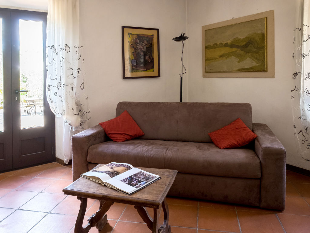 "Bellaria", 4-Zimmer-Haus 145 m2 auf 2 Stockwerken, im Erdgeschoss. Objekt geeignet für 4 Erwachsene + 1 Kind. Rustikal und antik eingerichtet: Wohn-/Schlafzimmer mit 1 Diwanbett, Radio und Holzofen. Ausgang zum Garten. Esszimmer mit offenem Kamin. Ausgang zum Garten. 1 Zimmer mit 2 Betten (80 cm). Kleine, offene Küche (Backofen, Geschirrspüler, 4 Flammen, Toaster, Wasserkocher, Tiefkühler, elektrische Kaffeemaschine). Bad/Bidet/WC, Dusche/Bidet/WC. Dachgeschoss: 1 Zimmer mit 1 franz. Bett (160 cm), Waschbecken. G-Heizung. Komfortable Einrichtung im Landhausstil. Terrasse, grosser Garten. Terrassenmöbel, Gartengrill (mobil), Abstellkammer. Schöne Sicht auf den Garten, die Landschaft und den Wald. Zur Verfügung: Kinderhochstuhl, Babybett. Internet (Wireless LAN, gratis). Bitte beachten: Nichtraucher-Unterkunft. Maximal 1 kleines Haustier/Hund erlaubt.