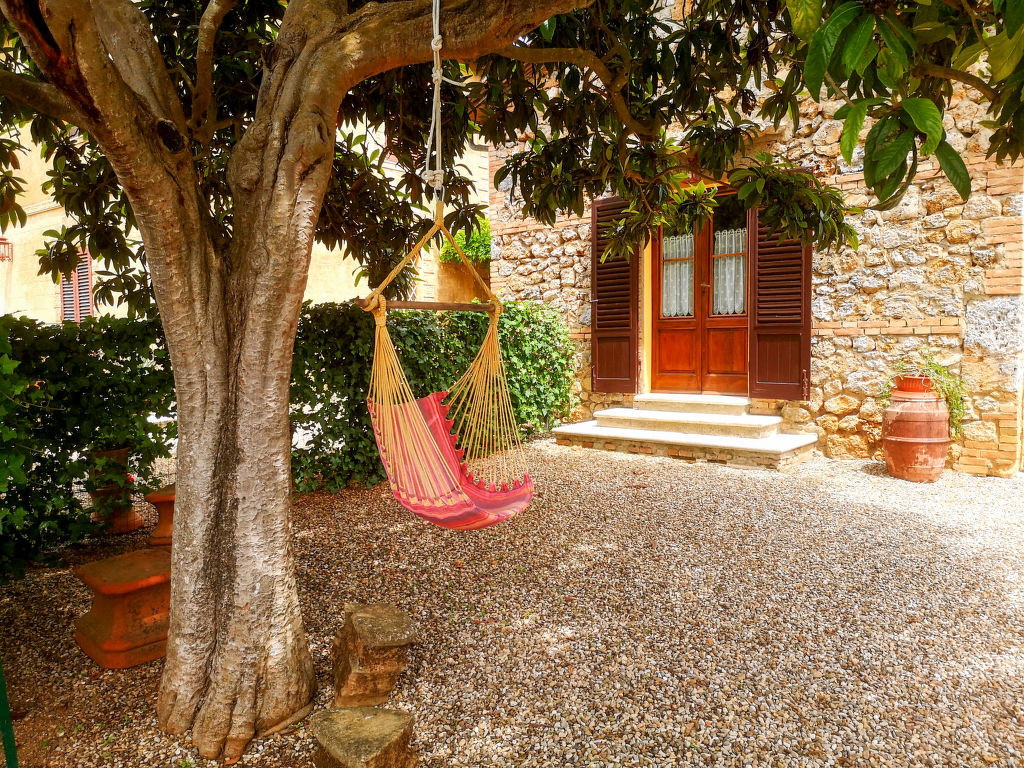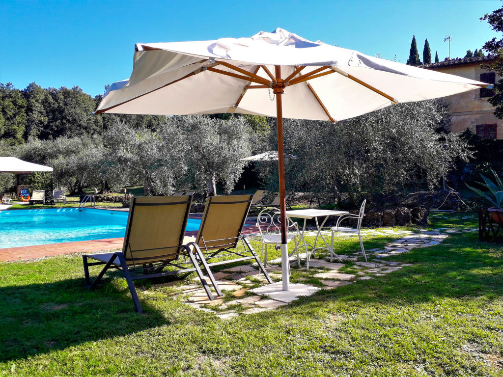 Montecagnano 12 km von Siena: Schöner, alleinstehender Landwirtschaftlicher Betrieb "Bellaria", auf 2 Stockwerken, umgeben von Bäumen. 4 Häuser in der Residenz. 4 Wohnungen in der Residenz. 12 km vom Zentrum von Siena, 1.1 km vom Zentrum von Montecagnano, ausserhalb des Ortes, 67 km vom Zentrum von Firenze, alleinstehende Lage, 92 km vom Meer. Zur Mitbenutzung: schöner Terrassengarten, 3 ha (eingezäunt) mit Pflanzen und Bäumen, Naturgarten, Obstgarten, Schwimmbad eingezäunt (15 x 7 m, 100 - 250 cm tief, saisonale Verfügbarkeit: 15.Mai.-15.Okt. Öffnungszeiten Schwimmbad: 09:00-19:00). Aussendusche. In der Anlage: Waschmaschine (zur Mitbenutzung, extra). 1.7 km lange Zufahrt (Naturweg). Parkplatz auf dem Grundstück. Supermarkt 8 km, Sandstrand "Marina di Cecina" 92 km. Ab Hof Verkauf von bäuerlichen Produkten. Bitte beachten: Der Besitzer wohnt im selben Haus. Eigentümer hat einen Hund.