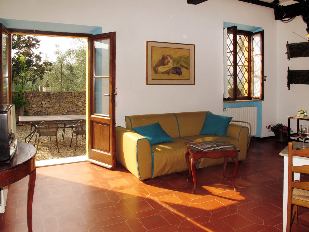 "Bellaria", 2-Zimmer-Haus 50 m2, im Erdgeschoss. Objekt geeignet für 2 Erwachsene + 1 Kind. Sehr schön und geschmackvoll eingerichtet: Wohn-/Schlafzimmer mit 1 Diwanbett, offenem Kamin und Esstisch. Ausgang zum Garten. 1 Zimmer mit 1 franz. Bett (160 cm). Kochnische (Backofen, Geschirrspüler, 4 Flammen, Toaster, Wasserkocher, Tiefkühler, elektrische Kaffeemaschine). Dusche/Bidet/WC. G-Heizung. Terrasse, Garten 150 m2. Terrassenmöbel. Schöne Sicht auf die Landschaft und den Wald. Zur Verfügung: Kinderhochstuhl, Babybett. Internet (Wireless LAN, gratis). Bitte beachten: Nichtraucher-Unterkunft. Maximal 1 kleines Haustier/Hund erlaubt.