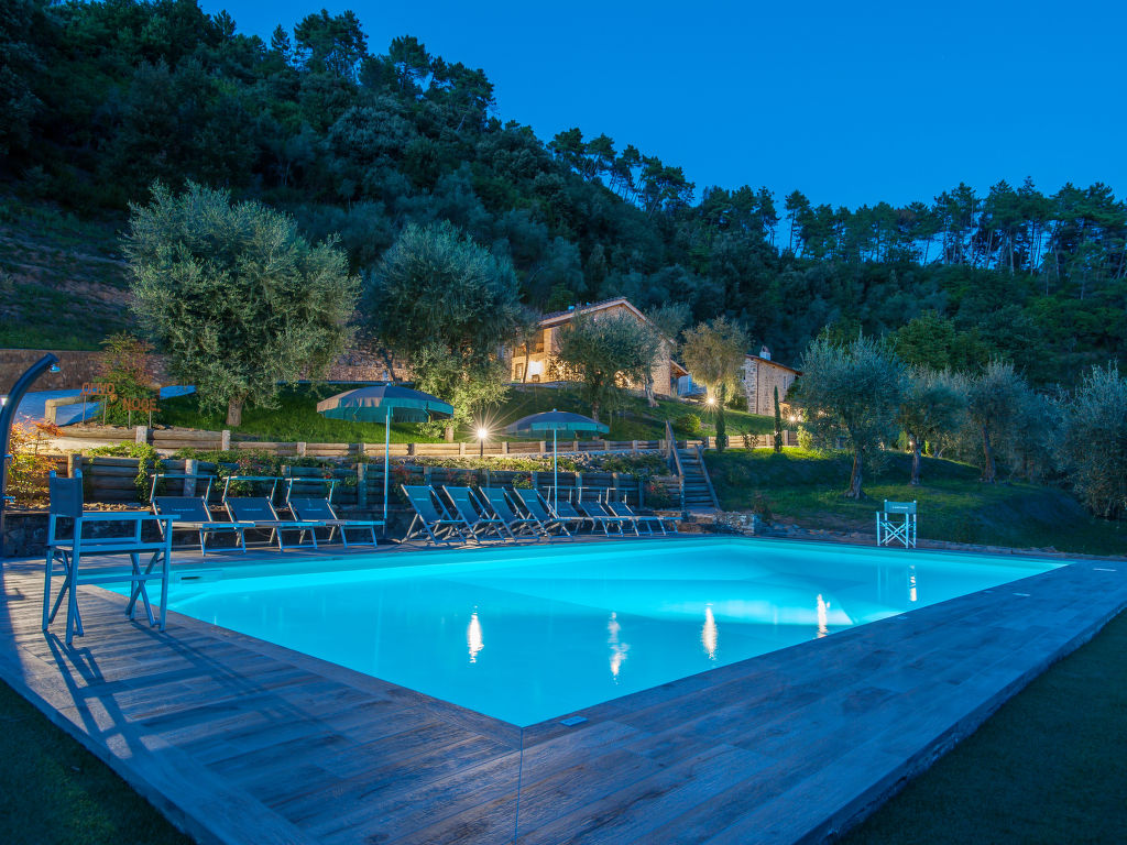 Landsitz "Campodori", 200 m.ü.M., umgeben von Bäumen. 12 km vom Zentrum von Lucca, 1.6 km vom Zentrum von San Martino in Freddana, 15 km vom Zentrum von Camaiore, am Hang, 24 km vom Meer. Zur Mitbenutzung: Grundstück 4 ha, Terrassengarten (nicht eingezäunt) mit Wiese, Schwimmbad (12 x 6 m, 90 - 200 cm tief, saisonale Verfügbarkeit: 08.Mai.-01.Okt.) mit Salzelektrolyse-Reinigungssystem. Aussendusche, Tischtennis. 900 m lange schmale Zufahrt (900 m Naturweg). Parkplatz in 50 m auf dem Grundstück. Supermarkt 2.1 km, Bahnstation "Lucca" 12 km, Sandstrand "Lido di Camaiore" 24 km.