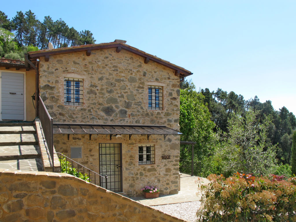 " Noce", 4-Zimmer-Haus 92 m2 auf 2 Stockwerken. Geschmackvoll eingerichtet: Wohn-/Schlafzimmer mit 1 Doppeldiwanbett und offenem Kamin (nur Deko), Sat-TV, Stereoanlage und DVD. Ausgang zum Garten. Esszimmer mit Esstisch. Ausgang zur Terrasse. Offene Küche (Backofen, Geschirrspüler, Gasherd, 5 Flammen, Toaster, Tiefkühler, elektrische Kaffeemaschine). Ausgang zur Terrasse. Dusche/WC. Obergeschoss: 1 Zimmer mit 1 franz. Bett (160 cm). Ausgang zur Terrasse. 1 Zimmer mit 1 franz. Bett (160 cm). Bad/Dusche/WC. G-Heizung, Klimaanlage. 2 Terrassen überdacht. Terrassenmöbel, Gartengrill (mobil), Liegestühle, Abstellkammer. Panoramasicht. Zur Verfügung: Waschmaschine, Safe, Bügeleisen, Fliegengitter, Kinderhochstuhl, Babybett bis 2 Jahre, Haartrockner. Internet (Wireless LAN, gratis). Bitte beachten: Nichtraucher-Unterkunft. Maximal 2 Haustiere/Hunde erlaubt.