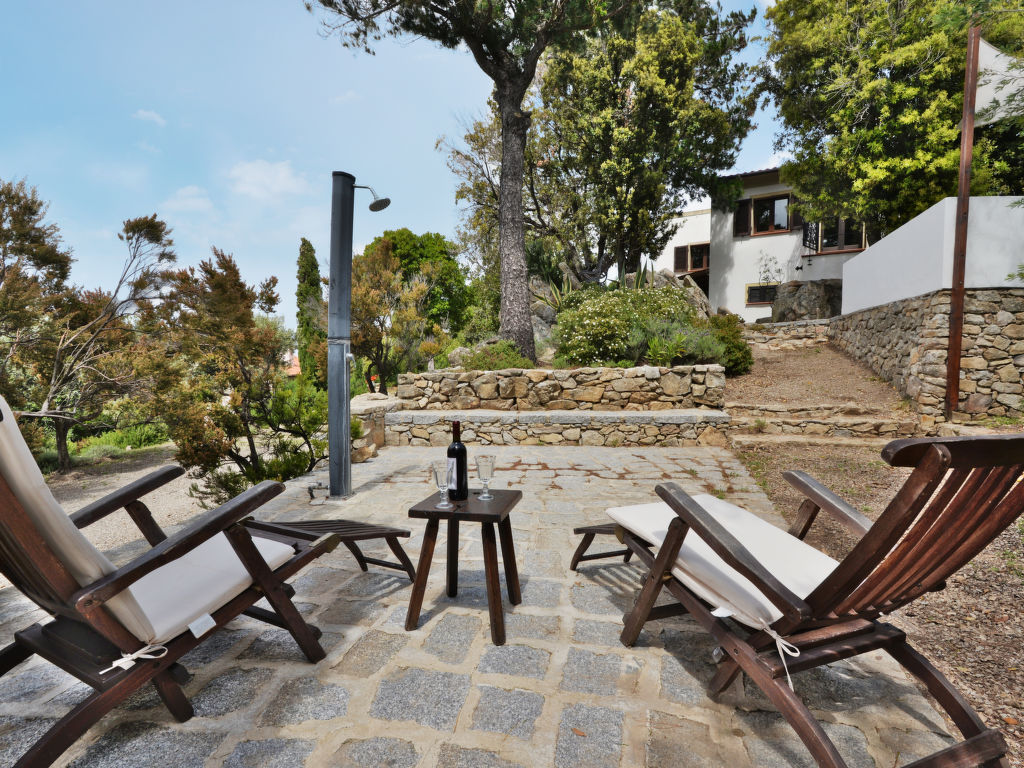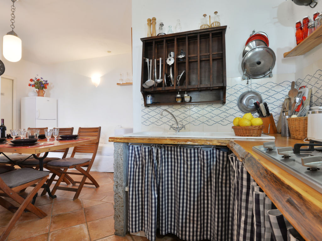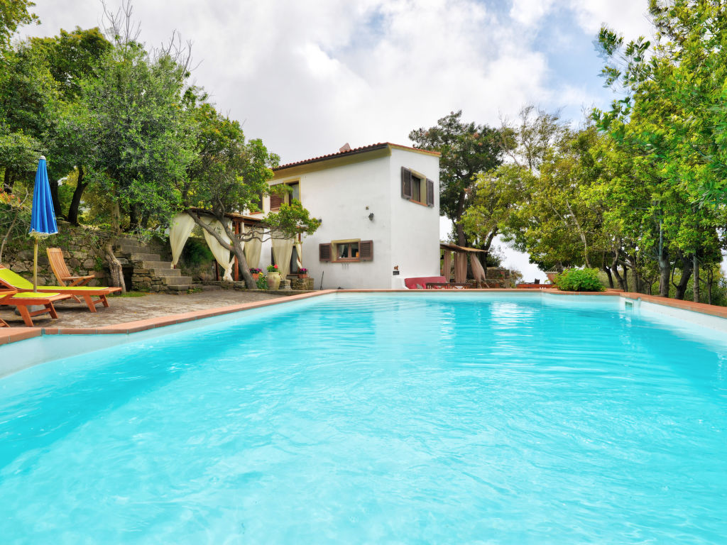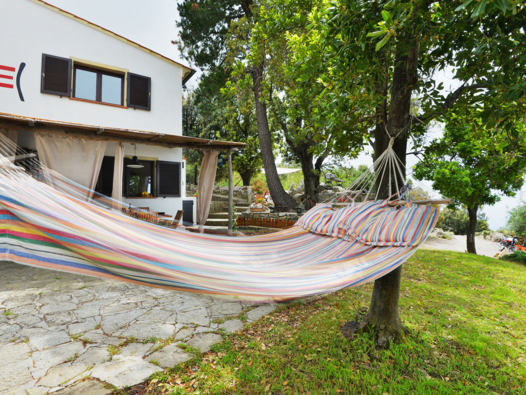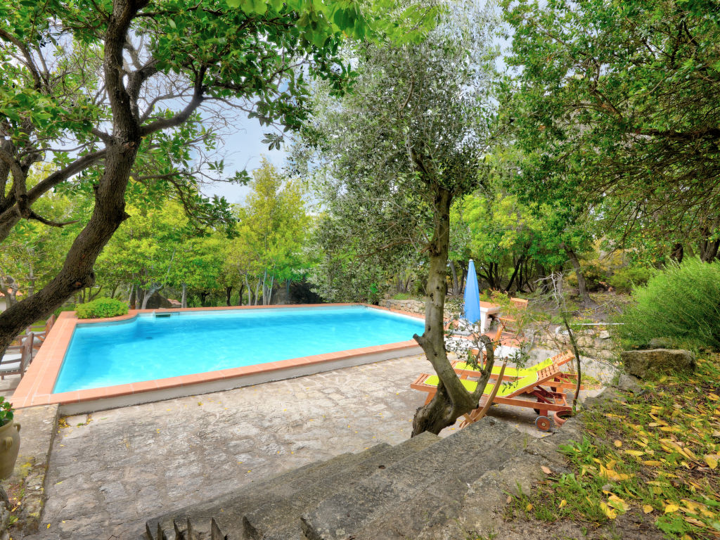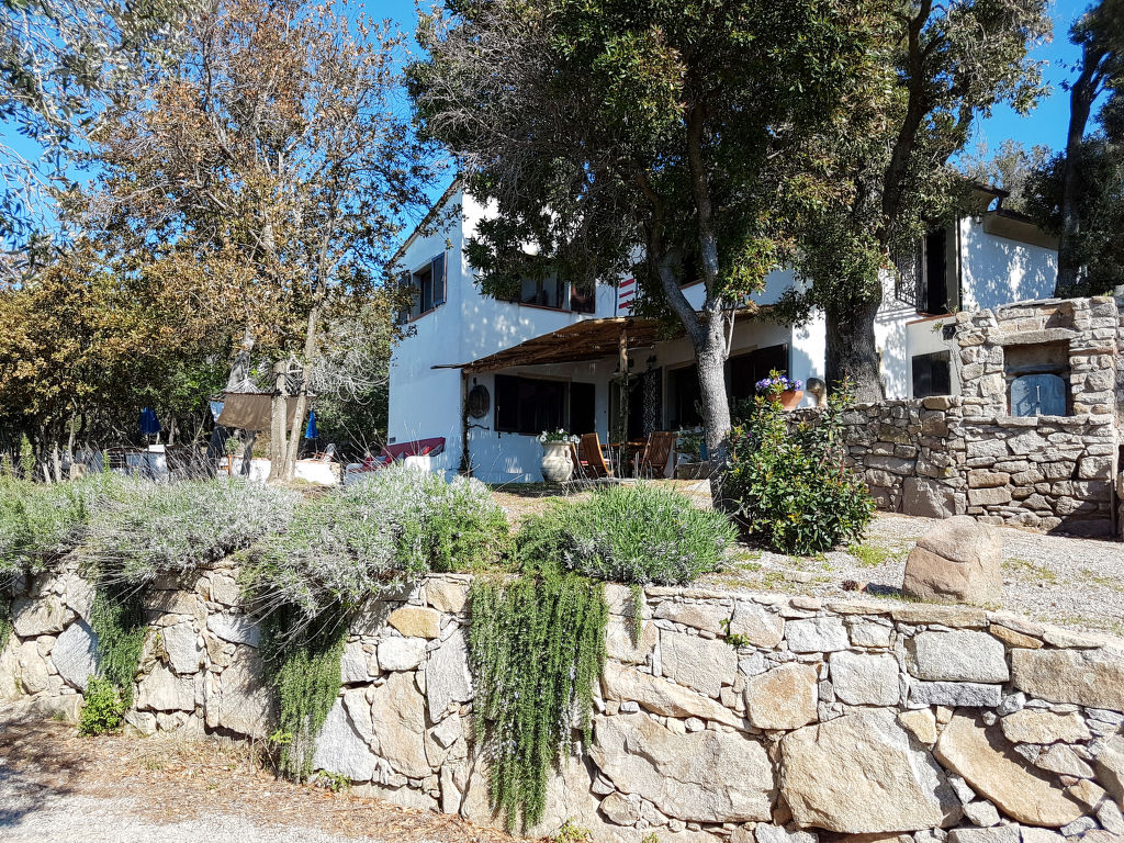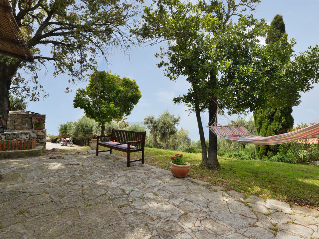 4-Zimmer-Haus 125 m2 auf 2 Stockwerken. Objekt geeignet für 8 Erwachsene. Rustikal und gemütlich eingerichtet: 1 Doppelzimmer mit 1 franz. Bett (160 cm). Küche (4 Kochplatten, Backofen, Geschirrspüler, Mikrowelle, Tiefkühler) mit Esstisch. Dusche/Bidet/WC. Obergeschoss: Wohnzimmer mit offenem Kamin, Sat-TV und Internationale TV-Sender. Ausgang zum Garten. 1 Doppelzimmer mit 1 franz. Bett (160 cm). 1 Zimmer mit 2 x 2 Etagenbetten (80 cm). Dusche/Bidet/WC. Natursteinböden. Schöne Sicht auf das Meer. Zur Verfügung: Waschmaschine, Babybett. Internet (Wireless LAN, gratis). Bitte beachten: Nichtraucher-Haus. Maximal 1 Haustier/Hund erlaubt.