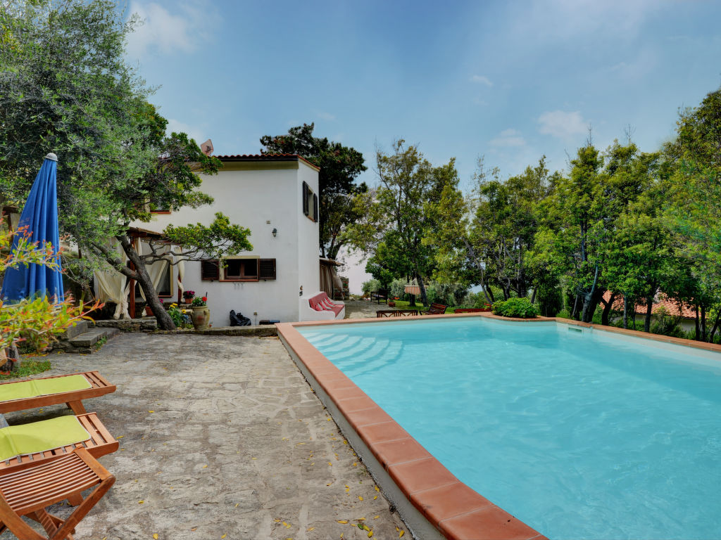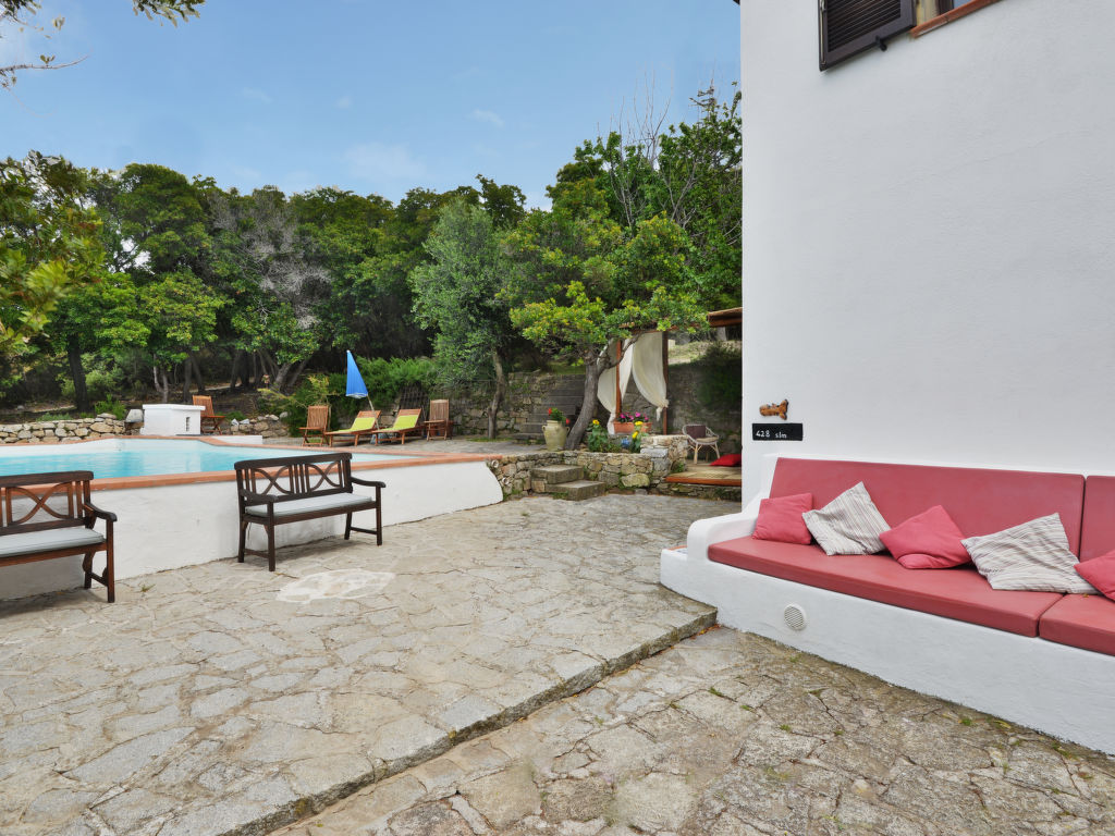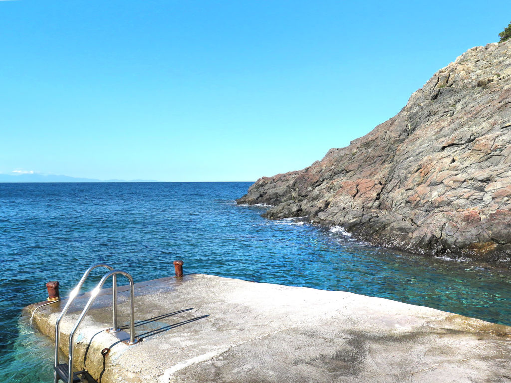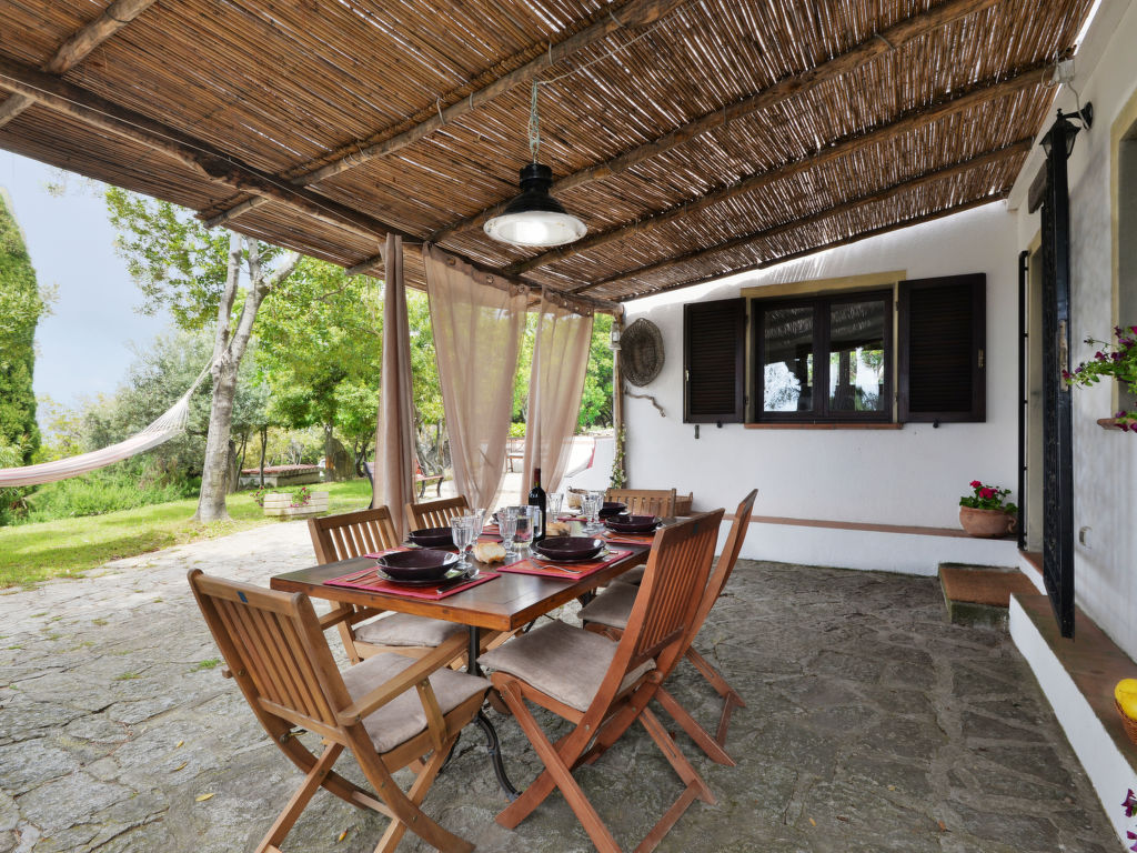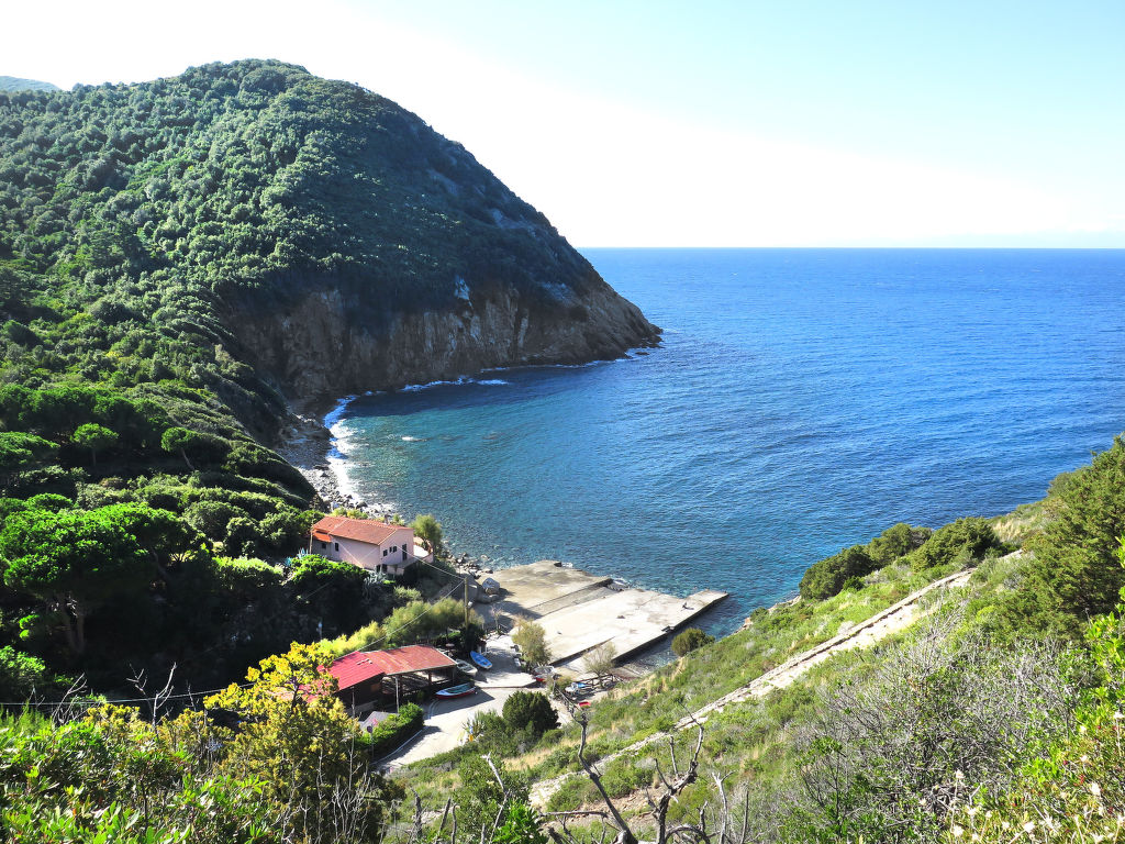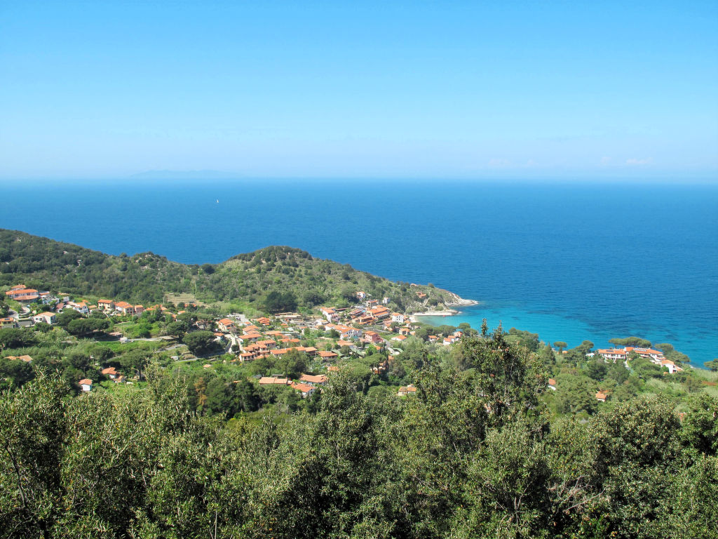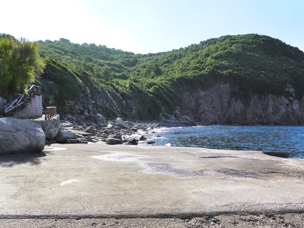 4-Zimmer-Haus 125 m2 auf 2 Stockwerken. Objekt geeignet für 8 Erwachsene. Rustikal und gemütlich eingerichtet: 1 Doppelzimmer mit 1 franz. Bett (160 cm). Küche (4 Kochplatten, Backofen, Geschirrspüler, Mikrowelle, Tiefkühler) mit Esstisch. Dusche/Bidet/WC. Obergeschoss: Wohnzimmer mit offenem Kamin, Sat-TV und Internationale TV-Sender. Ausgang zum Garten. 1 Doppelzimmer mit 1 franz. Bett (160 cm). 1 Zimmer mit 2 x 2 Etagenbetten (80 cm). Dusche/Bidet/WC. Natursteinböden. Schöne Sicht auf das Meer. Zur Verfügung: Waschmaschine, Babybett. Internet (Wireless LAN, gratis). Bitte beachten: Nichtraucher-Haus. Maximal 1 Haustier/Hund erlaubt.
