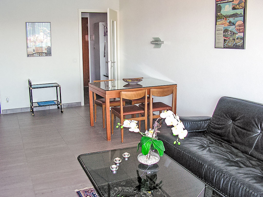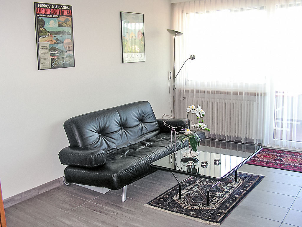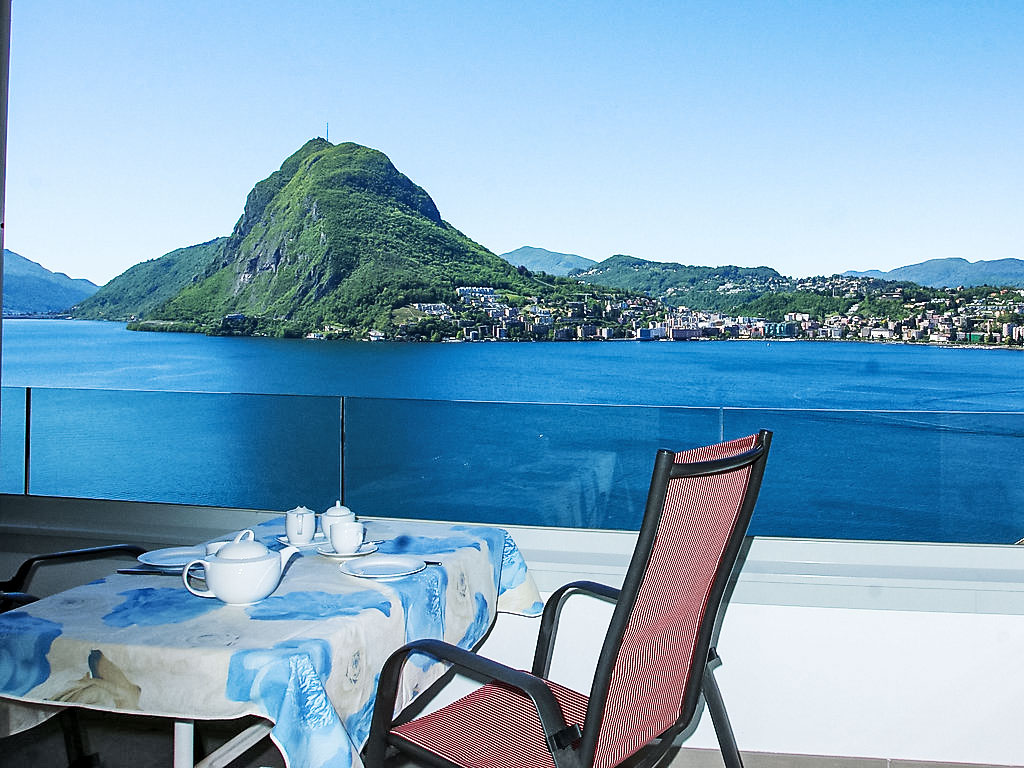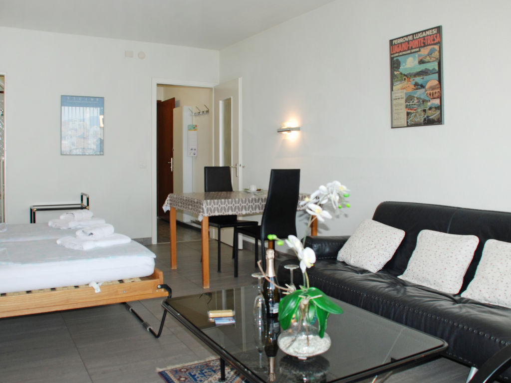 1-Zimmer-Wohnung 32 m2 im 5. Stock, Südlage. Hell, schön und geschmackvoll eingerichtet: offenes Wohn-/Esszimmer mit 2 Wandschrankbetten (90 cm, Länge 200 cm), Esstisch und Kabel-TV (Flachbildschirm), Radio. Ausgang zum Balkon. Kochnische im Eingang (3 Kochplatten, Backofen, Geschirrspüler, Mikrowelle, elektrische Kaffeemaschine, Kapseln für die Kaffeemaschine (Nespresso)). Bad/WC. Heizung. Balkon, Südlage. Balkonmöbel. Herrliche Panoramasicht auf den See, die Berge, die Landschaft und die Ortschaft. Zur Verfügung: Haartrockner. Internet (Wireless LAN, gratis). Bitte beachten: für Kleinkinder nicht geeignet. Nichtraucher-Unterkunft. Küche mit Nespresso Kaffeemaschine (Kapseln müssen selber mitgebracht werden) und Toaster ausgerüstet. TIPP: Terrasse mit atemberaubender Sicht auf den San Salvatore und die Bucht von Lugano, Traumhaft!
