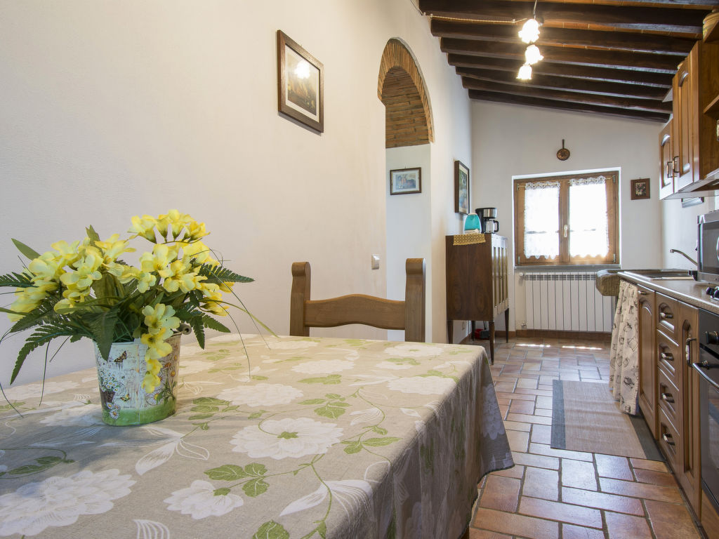 5-Zimmer-Haus 150 m2 auf 2 Stockwerken. Renoviert, rustikal und geschmackvoll eingerichtet: Wohn-/Esszimmer mit offenem Kamin, Esstisch, Küchenblock und Sat-TV. Ausgang zum Garten. 3 Zimmer, jedes Zimmer mit 1 franz. Bett (160 cm). Küche (1 Kochplatte, Backofen, Geschirrspüler, 3 Flammen, Mikrowelle, Tiefkühler, elektrische Kaffeemaschine) mit Esstisch. 2 Duschen/WC. Holzheizung. Obergeschoss: 1 Zimmer mit 1 franz. Bett (160 cm), Dusche/WC. Parkettböden. Komfortable Einrichtung im Landhausstil. Terrassenmöbel, Gartengrill. Panoramasicht. Zur Verfügung: Waschmaschine, Bügeleisen, Kinderhochstuhl, Babybett. Internet (Wireless LAN, gratis). Parkplatz Nr. 2. Bitte beachten: Nichtraucher-Haus. Maximal 1 Haustier/Hund erlaubt.