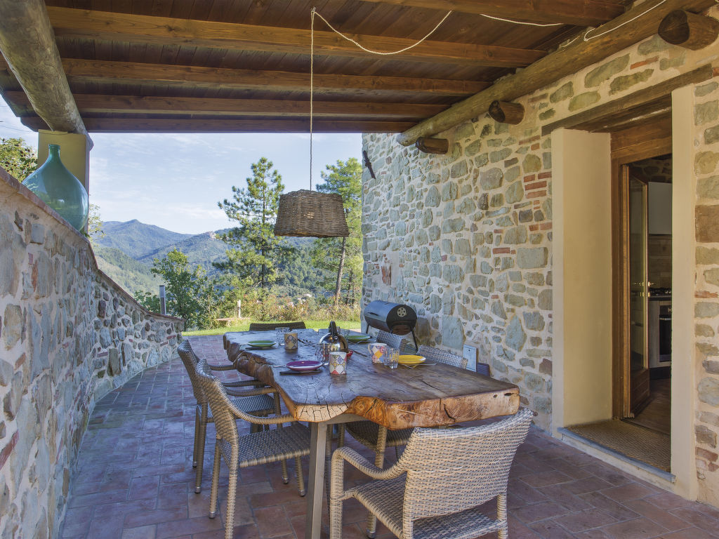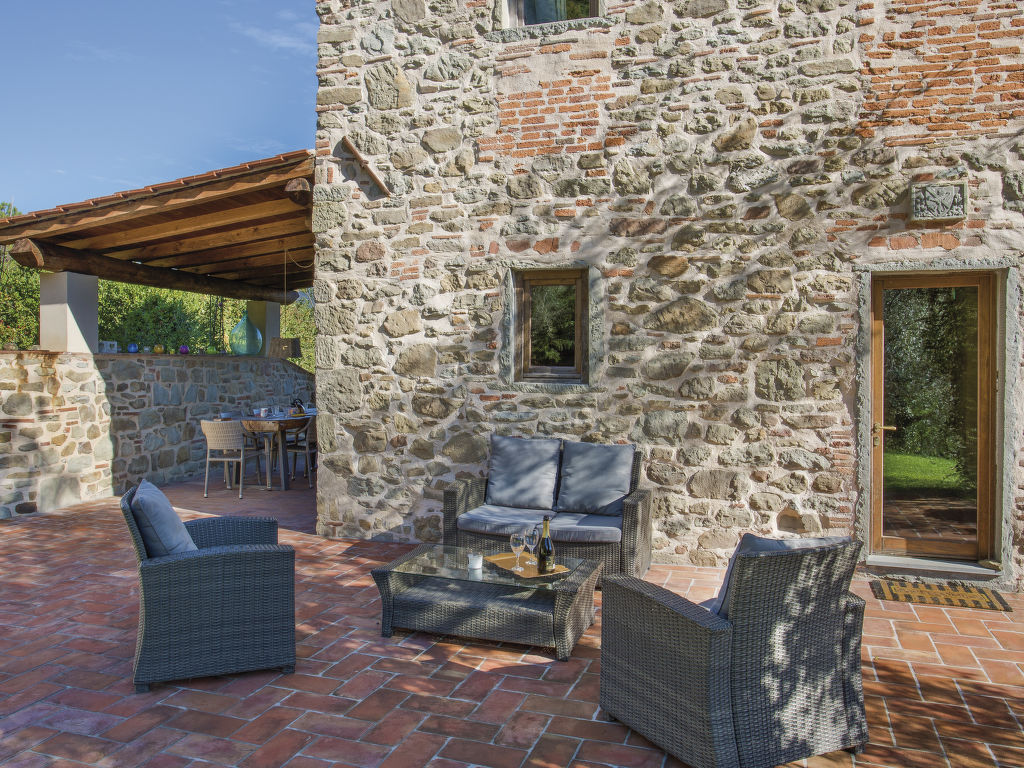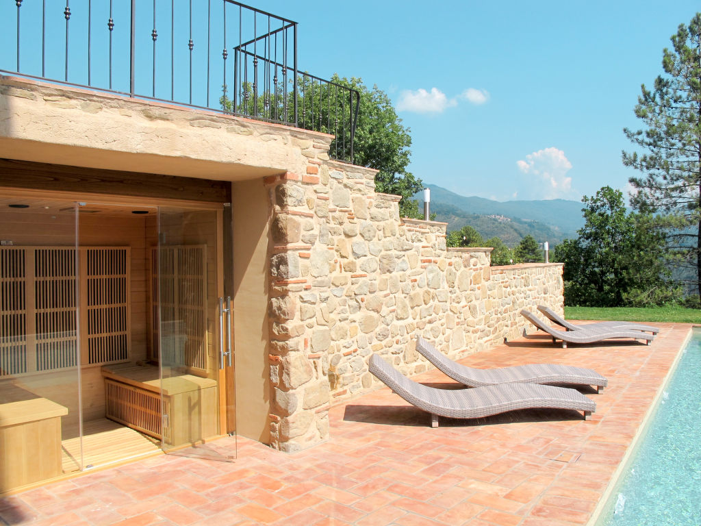 M Haus Wellnessbereich mit Infrarotsauna und beheiztem L-förmigen hydromassage mit Wasserfall (11 m², Salzelektrolyse). schöner Landsitz "Aurora", 200 m.ü.M., umgeben von Bäumen. 3.2 km vom Zentrum von Pescia, 21 km vom Zentrum von Lucca, 49 km vom Zentrum von Pisa, alleinstehende, erhöhte Lage am Hang, 55 km vom Meer, im Grünen. Zur Alleinbenutzung: Grundstück 500 m2, Terrassengarten (nicht eingezäunt) mit Rasen und Bäumen, Schwimmbad (10 x 7 m, 150 cm tief, 01.05.-01.10.) mit Salzelektrolyse-Reinigungssystem. Sprudelbad, Sitzplatz, Gartenmöbel, Grill. Im Hause: Infrarotwärmekabine. 1.1 km lange schmale Zufahrt bis zum Haus. Parkplatz (für 5 Autos) auf dem Grundstück. Einkaufsgeschäft 3.2 km, Supermarkt 3.2 km, Sandstrand "Viareggio" 55 km, Thermalbad "Montecatini Terme" 13 km. Golfplatz (18 Loch) 25 km. Nahe gelegene Sehenswürdigkeiten: Collodi 8.5 km, Villa Garzoni Butterfly 8.5 km, Montecarlo 10.5 km, Vinci 31 km, Pistoia 34 km, Firenze 70 km.