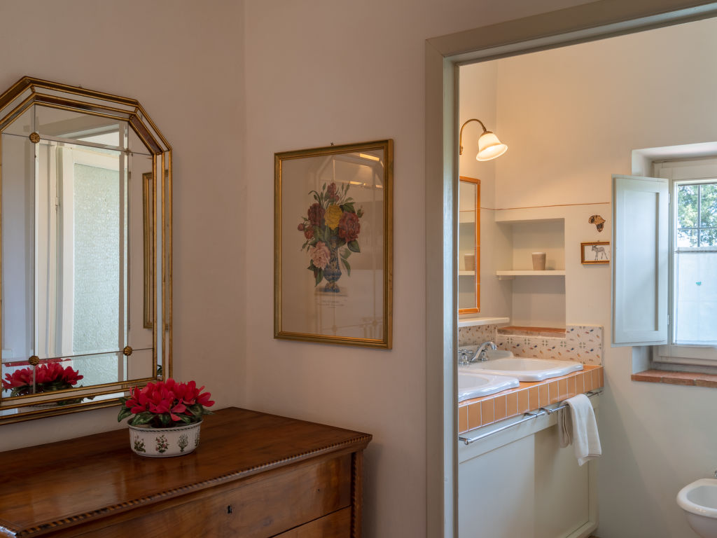 Komfortables Landhaus "Ambrogetta", Baujahr 1800. 1 km vom Zentrum von San Casciano Val di Pesa, 16 km vom Zentrum von Tavarnelle, 20 km vom Zentrum von Firenze, am Hang. Zur Mitbenutzung: Grundstück 20'000 m2, Garten (nicht eingezäunt) mit Rasen und Bäumen. Zur Alleinbenutzung: Schwimmbad (8 x 4 m, 120 cm tief, 01.05.-30.09.). Aussendusche. 200 m lange holprige Zufahrt. Parkplatz (für 2 Autos, überdacht) auf dem Grundstück. Supermarkt 1 km, Bushaltestelle 300 m, Hallenbad 1 km. Golfplatz (18 Loch) 20 km. Bitte beachten: Der Besitzer wohnt auf dem gleichen Grundstück. Eigentümer hat einen Hund.