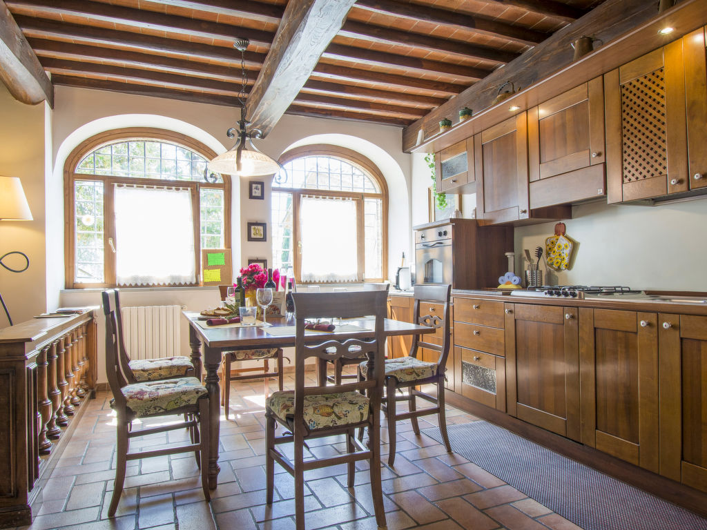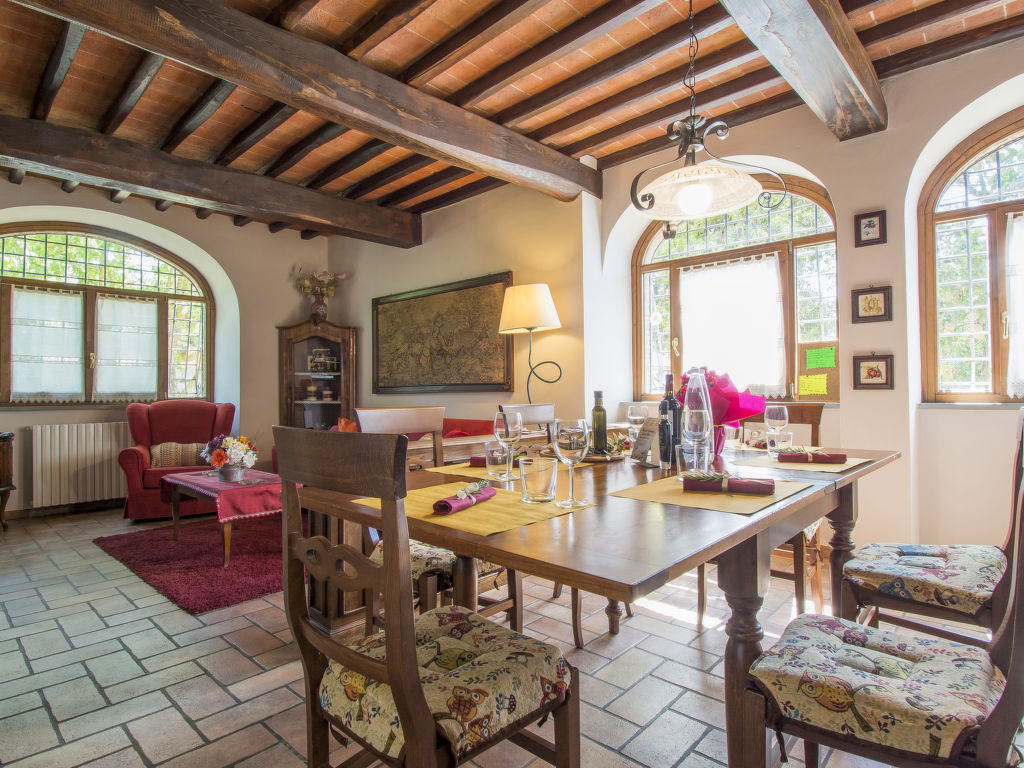 Rustikales Haus "Le Terrazze", auf 2 Stockwerken, angebaut. 4 km vom Zentrum von Monte San Savino, 5 km vom Zentrum von Civitella Val di Chiana, 500 m vom See. Zur Mitbenutzung: Grundstück 2 ha, Naturteich. Zur Alleinbenutzung: Grundstück 600 m2 (eingezäunt), Garten Rasen und Bäumen, Schwimmbad (12 x 5 m, 09.04.-30.09.). Aussendusche, Tischtennis, Laube, Gartenmöbel. Im Hause: Internetzugang. Frühstück und Halbpension möglich auf Anfrage (extra). Einkaufsservice vor Anreise möglich. Parkplatz auf dem Grundstück. Einkaufsgeschäft, Restaurant, Bar 600 m, Bahnstation "Albergo" 1 km. Reitstall 700 m. Nahe gelegene Sehenswürdigkeiten: Arezzo 15 km, Montepulciano 40 km. Bekannte Seen in der Umgebung sind gut erreichbar: Trasimeno 50 km. Bitte beachten: Angeln (mit Bewilligung) (extra). Ab Hof Verkauf von bäuerlichen Produkten. Der Besitzer wohnt auf dem gleichen Grundstück. Tiere in der Umgebung.