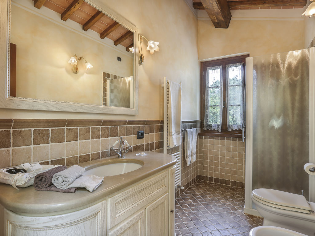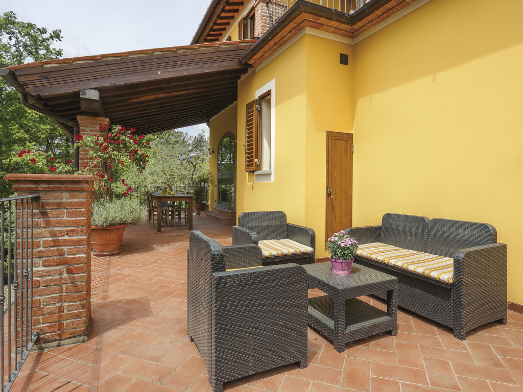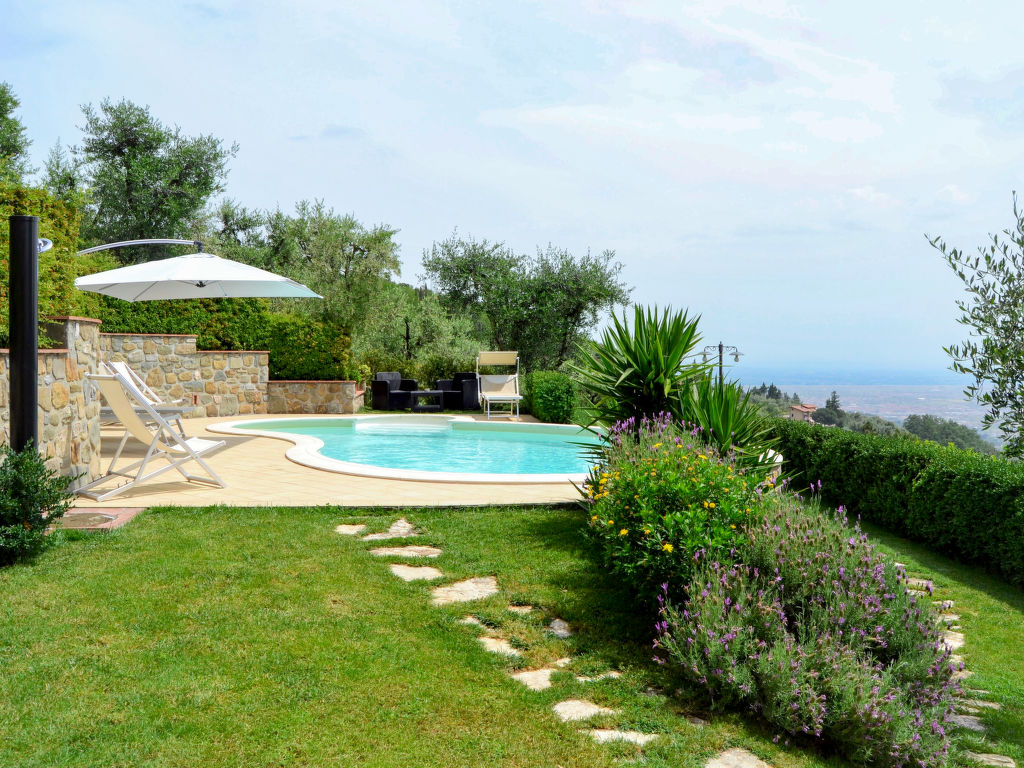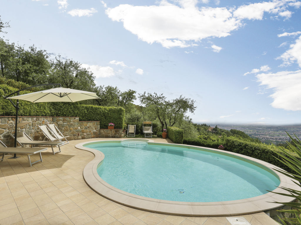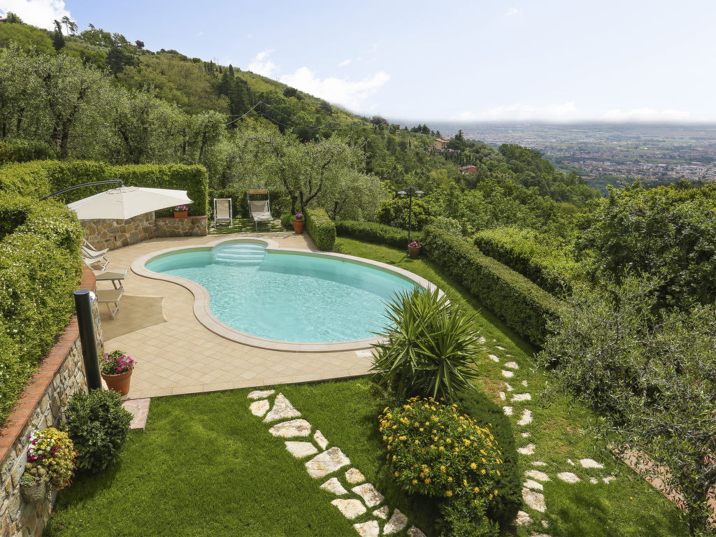 Alleinstehendes Einfamilienhaus "Villa I Cipressi", 400 m.ü.M.. Im Weiler Montaccolle. 6 km vom Zentrum von Montecatini Terme, 16 km vom Zentrum von Pistoia, 56 km vom Zentrum von Firenze, ruhige Lage auf einem Hügel, 60 km vom Meer. Zur Alleinbenutzung: Grundstück 4'500 m2 (eingezäunt), gepflegter Terrassengarten Rasen, Schwimmbad nierenförmig (30 m2, 110 - 150 cm tief, 15.03.-15.10.). Aussendusche. 100 m lange schmale Zufahrt. Parkplatz (für 2 Autos) auf dem Grundstück. Einkaufsgeschäft 6 km, Bahnstation "Montecatini Terme" 8 km, Sandstrand "Lido di Camaiore" 60 km. Golfplatz (18 Loch) 15 km.
