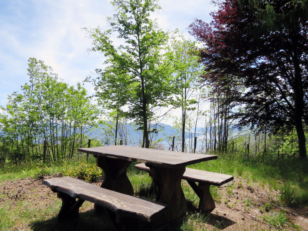 "Baita Nini", 3-Zimmer-Haus 70 m2 auf 2 Stockwerken. Zweckmässig und rustikal eingerichtet: Wohn-/Esszimmer mit Schwedenofen, Esstisch und Sat-TV. Offene Küche (4 Kochplatten, Backofen, Geschirrspüler, Tiefkühler, elektrische Kaffeemaschine). Dusche/WC. G-Heizung. Dachgeschoss: 1 Zimmer mit 1 Doppelbetten. Ausgang zum Balkon. 1 Zimmer mit 1 x 2 Etagenbetten, 1 Doppelbetten. Abgeschrägte, offene Schlafnische, ohne Schrank mit 1 Bett. Terrasse 20 m2, überdacht. Terrassenmöbel, Gartengrill, Liegestühle (2). Sicht auf den See. Zur Verfügung: Waschmaschine, Kinderhochstuhl, Babybett bis 2 Jahre. Internet (Wireless LAN, gratis). Bitte beachten: Nichtraucher-Unterkunft. Maximal 2 Haustiere/Hunde erlaubt. CIR: 10306600031