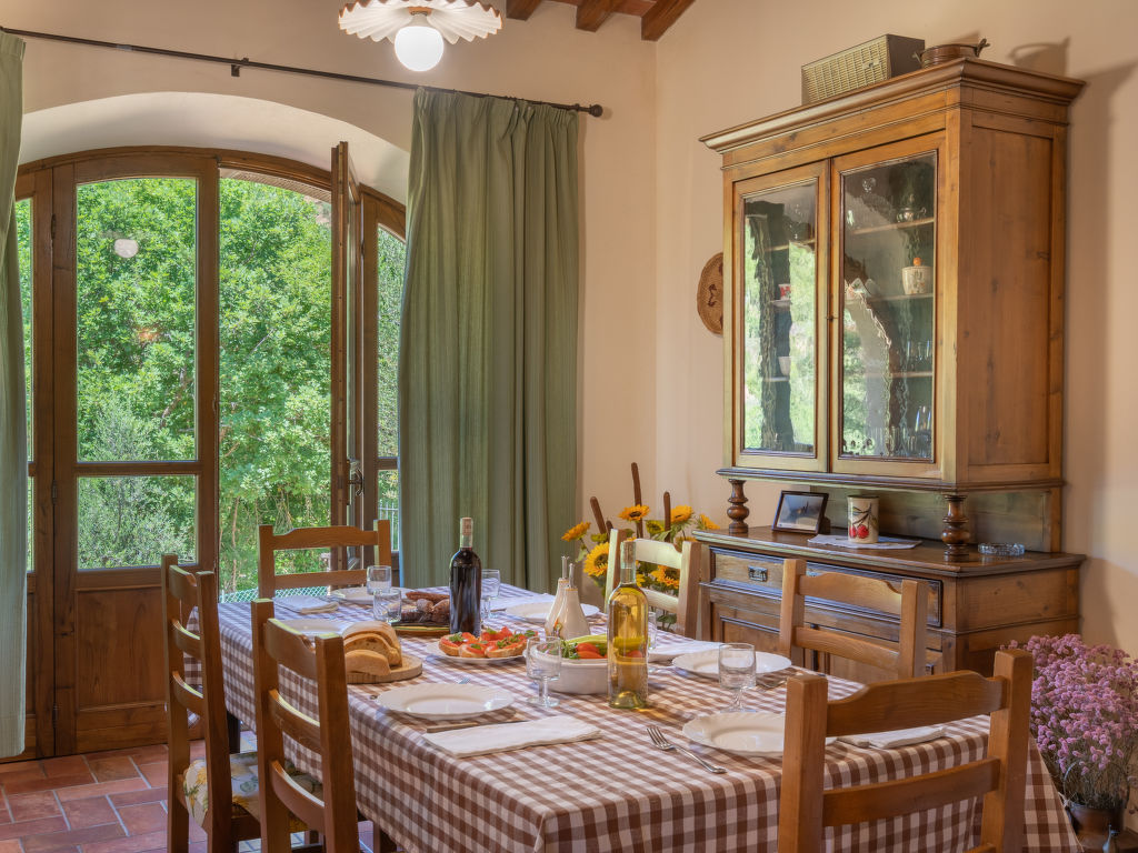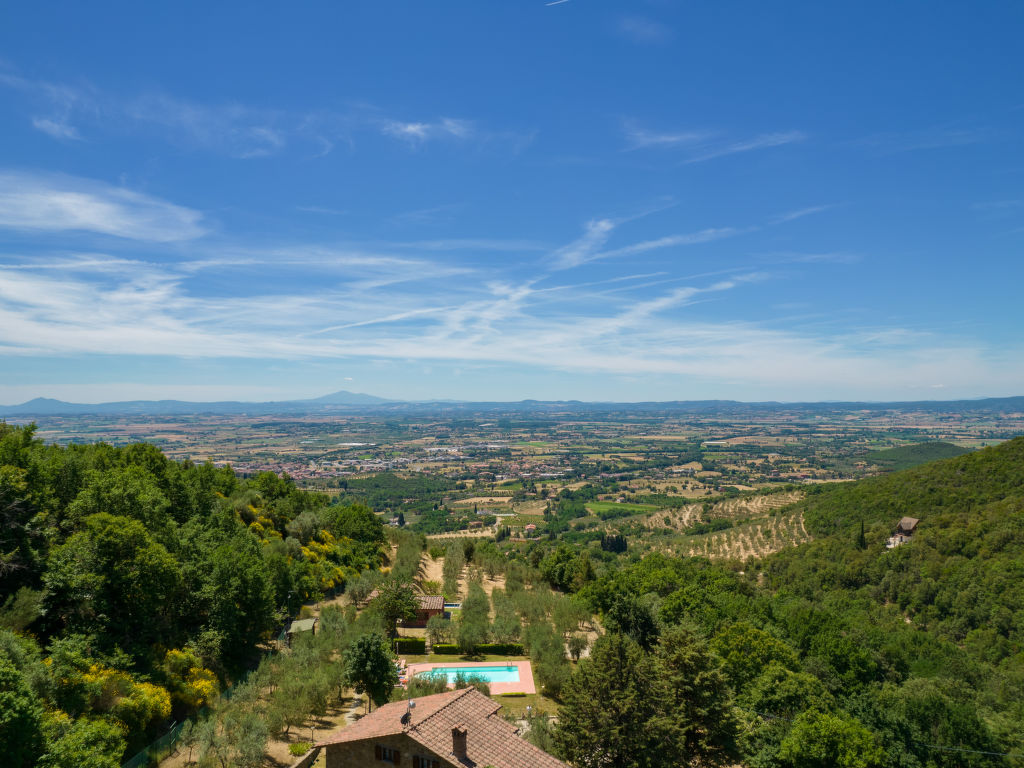 Rustico "Il Sorbino", 470 m.ü.M., umgeben von Bäumen. 4 km vom Zentrum von Castiglion Fiorentino, 15 km vom Zentrum von Arezzo, 35 km vom See. Zur Alleinbenutzung: Grundstück 2'000 m2 (eingezäunt), Terrassengarten Rasen, Schwimmbad (10 x 5 m, 12 - 220 cm tief, 01.05.-30.09.). Aussendusche, Terrasse, Gartenmöbel, Poolpflege durch den Besitzer/Gärtner. Im Hause: Fahrräder vorhanden (extra). 200 m lange holprige, schmale Zufahrt. Parkplatz auf dem Grundstück. Einkaufsgeschäft 1.5 km, Supermarkt 2 km, Bahnstation "Castiglion Fiorentino" 4 km, Badesee "Lago Trasimeno" 35 km. Golfplatz (9 Loch) 15 km.