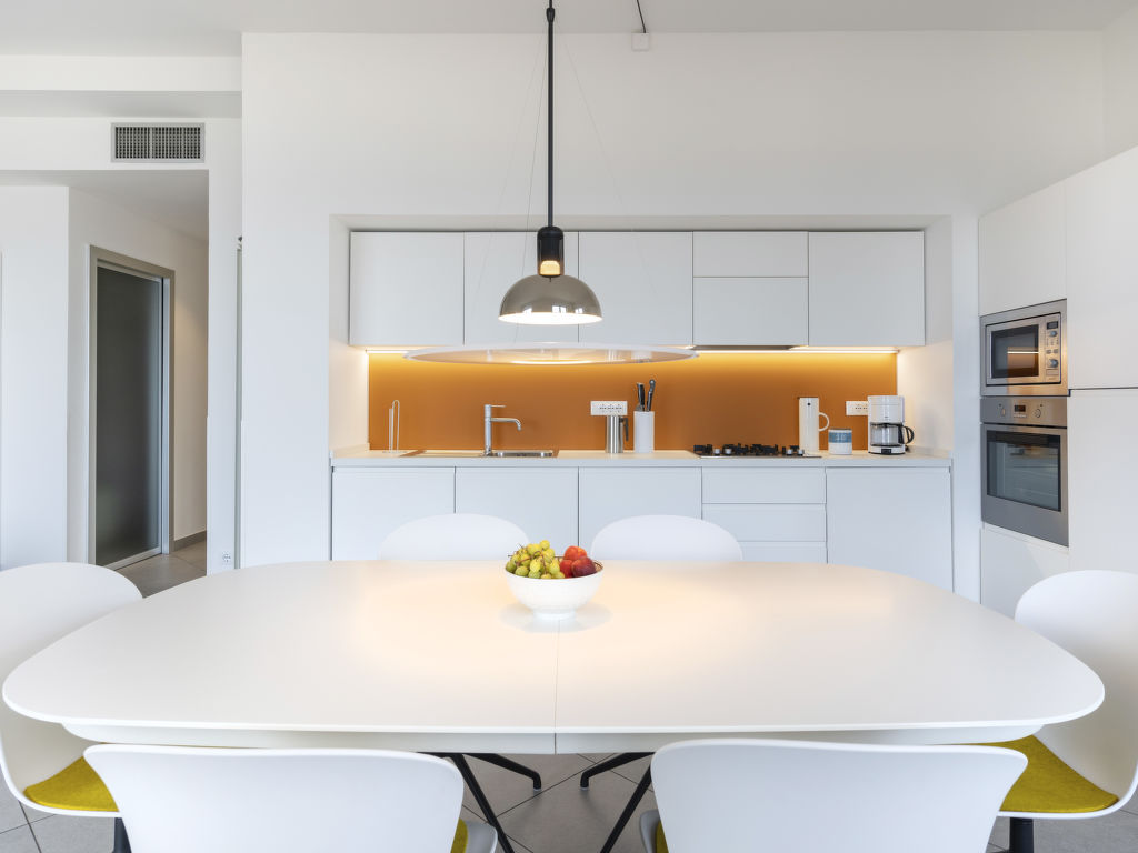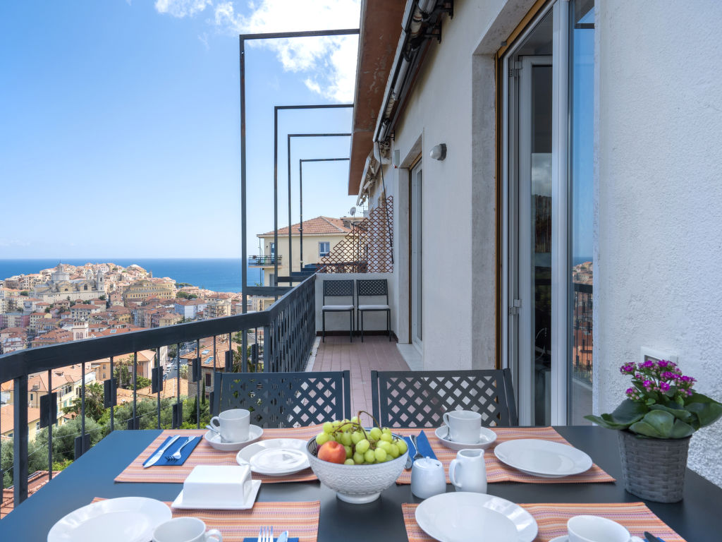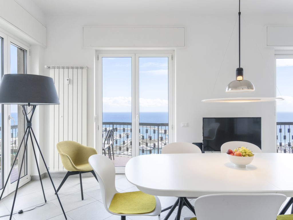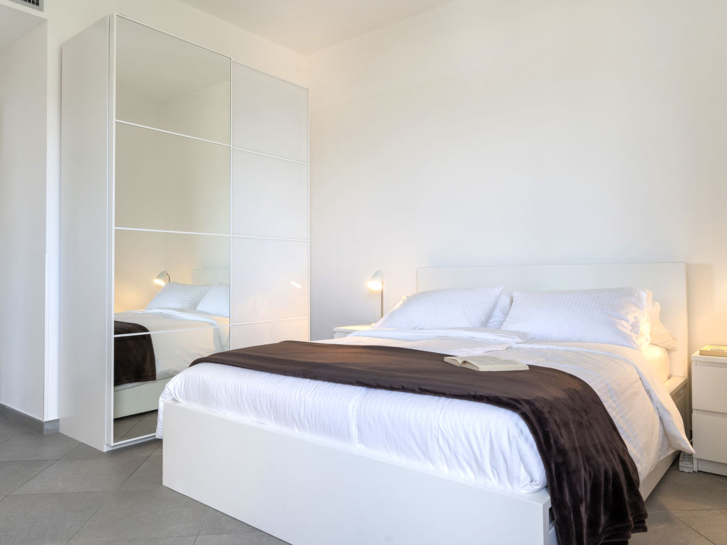 "Terre Bianche (IMP149)", 4-Zimmer-Wohnung 100 m2 im 4. Stock. Hell, renoviert im Jahre 2018, sehr modern und stilvoll eingerichtet: Wohn-/Esszimmer mit Schiebetür, Panoramafenster mit Esstisch, Sat-TV und DVD. Ausgang zum Balkon. 1 Zimmer mit 1 Doppelbett (160 cm). Ausgang zum Balkon. 1 Zimmer mit 1 Doppelbett (160 cm). 1 Zimmer mit 1 Bett (80 cm). Ausgang zum Balkon. Offene Küche (Mini-Backofen, Backofen, Geschirrspüler, 4 Flammen, Toaster, Wasserkocher, Mikrowelle, Tiefkühler, elektrische Kaffeemaschine). Dusche/WC. E-Heizung, G-Heizung, Klimaanlage. Heizung nur verfügbar von 01.11. bis 31.03. 2 Balkone. Balkonmöbel, Liegestühle (2), Abstellkammer. Herrliche Panoramasicht auf das Meer, den Hafen und das Städtchen. Zur Verfügung: Waschmaschine, Safe, Bügeleisen, Kinderhochstuhl, Babybett. Internet (Wireless LAN, gratis). Bitte beachten: Nichtraucher-Unterkunft. 1 Haustier/Hund erlaubt. CITRA: 008031-LT-0132