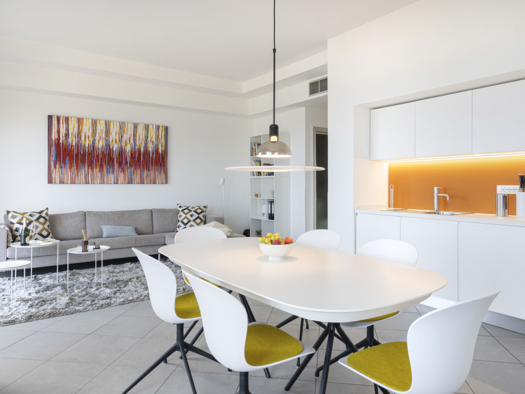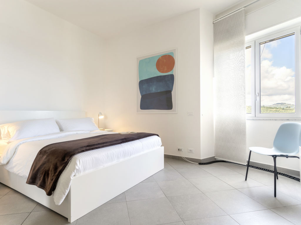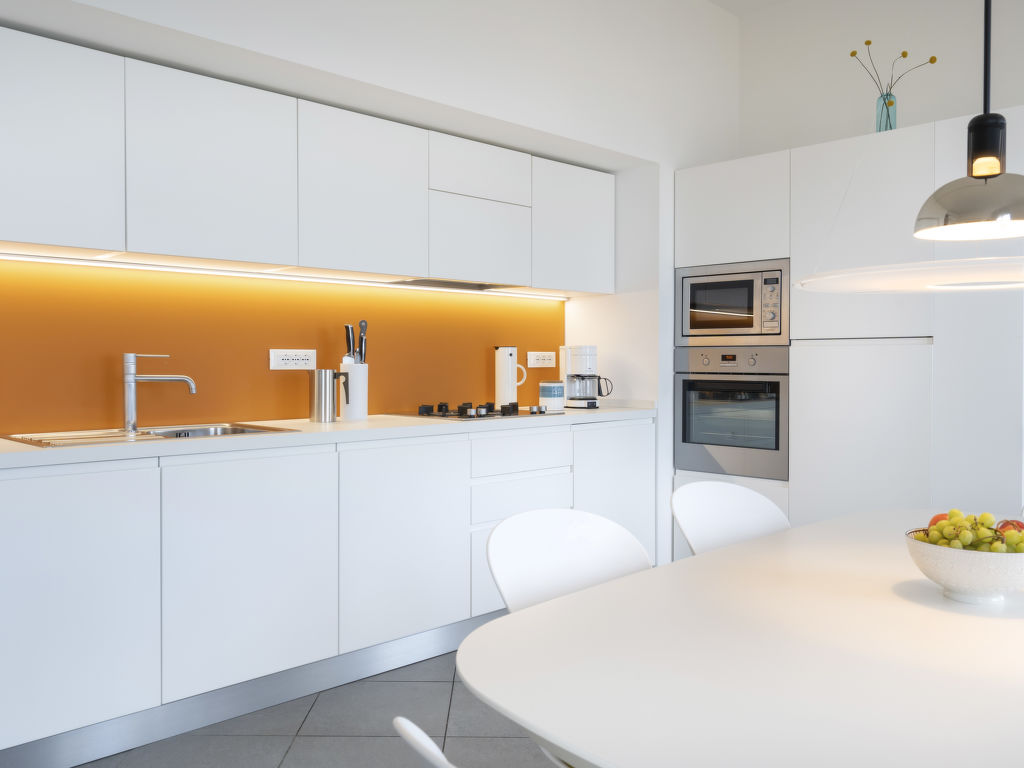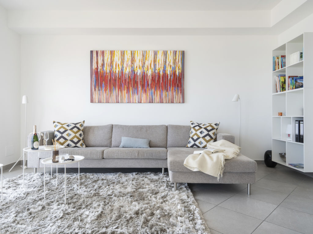 "Terre Bianche (IMP149)", 4-Zimmer-Wohnung 100 m2 im 4. Stock. Hell, renoviert im Jahre 2018, sehr modern und stilvoll eingerichtet: Wohn-/Esszimmer mit Schiebetür, Panoramafenster mit Esstisch, Sat-TV und DVD. Ausgang zum Balkon. 1 Zimmer mit 1 Doppelbett (160 cm). Ausgang zum Balkon. 1 Zimmer mit 1 Doppelbett (160 cm). 1 Zimmer mit 1 Bett (80 cm). Ausgang zum Balkon. Offene Küche (Mini-Backofen, Backofen, Geschirrspüler, 4 Flammen, Toaster, Wasserkocher, Mikrowelle, Tiefkühler, elektrische Kaffeemaschine). Dusche/WC. E-Heizung, G-Heizung, Klimaanlage. Heizung nur verfügbar von 01.11. bis 31.03. 2 Balkone. Balkonmöbel, Liegestühle (2), Abstellkammer. Herrliche Panoramasicht auf das Meer, den Hafen und das Städtchen. Zur Verfügung: Waschmaschine, Safe, Bügeleisen, Kinderhochstuhl, Babybett. Internet (Wireless LAN, gratis). Bitte beachten: Nichtraucher-Unterkunft. 1 Haustier/Hund erlaubt. CITRA: 008031-LT-0132