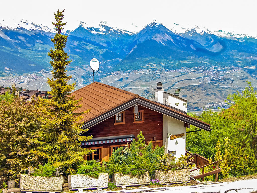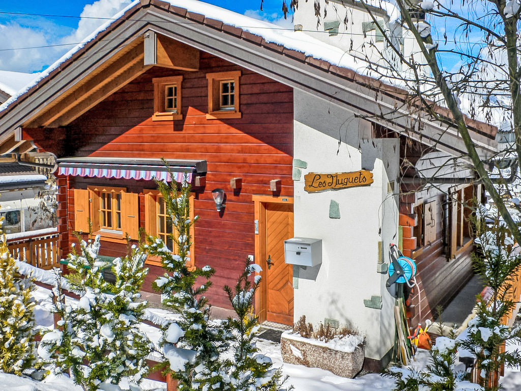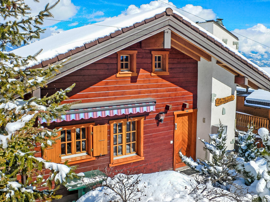 Chalet "Les Muguets". Am Ortsrand, 500 m vom Zentrum. Zur Alleinbenutzung: Garten mit Rasen. Grill. Im Hause: Skiraum, Waschmaschine. Parkplatz. Einkaufsgeschäft 600 m, Restaurant 500 m. Golfplatz 18 km, Skisportanlagen 600 m, Skibushaltestelle 300 m. Wandergebiete: Bisse du Milieu 50 m.