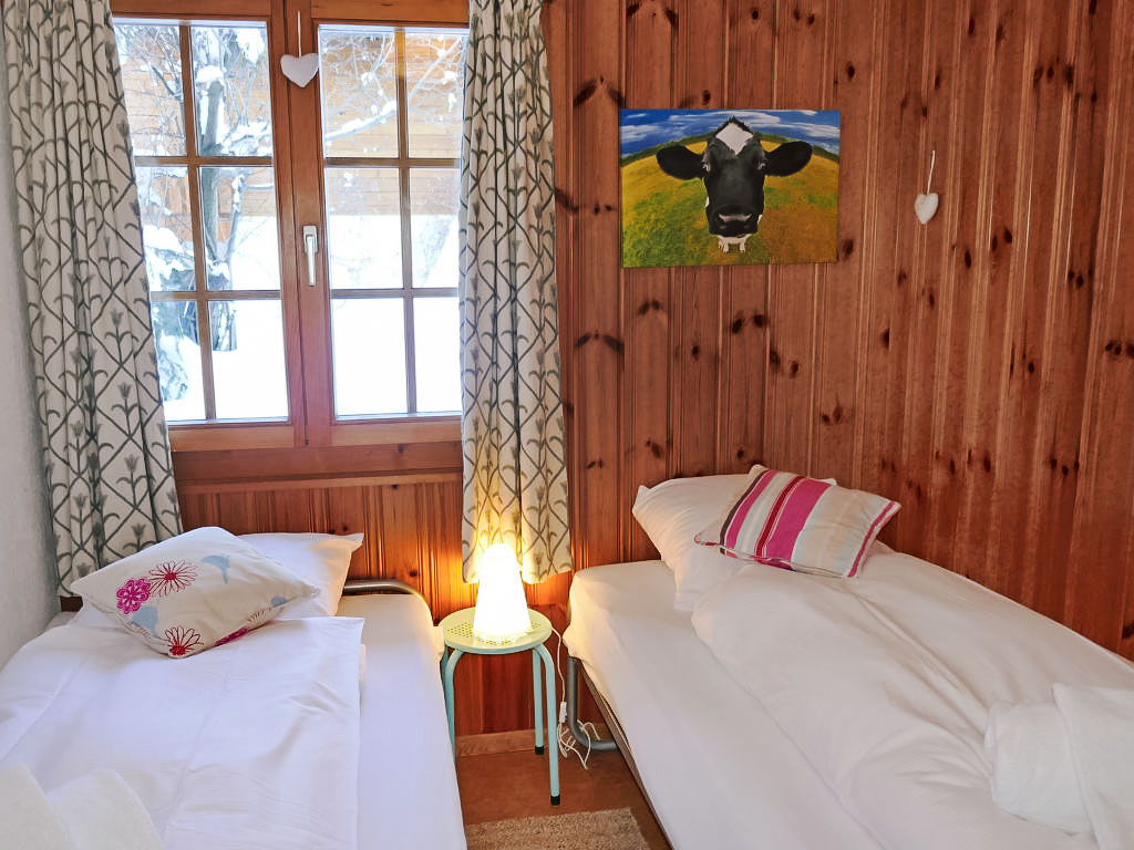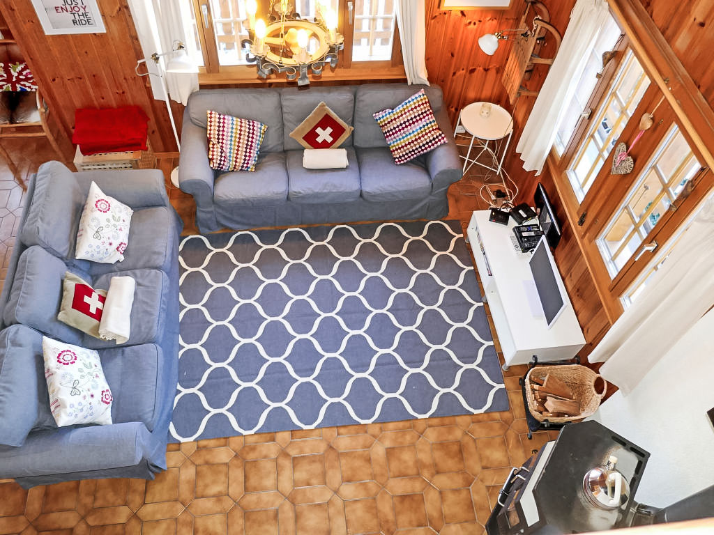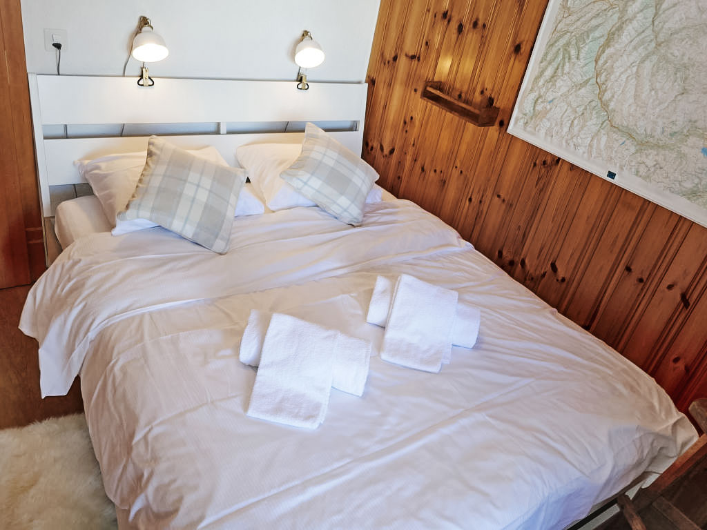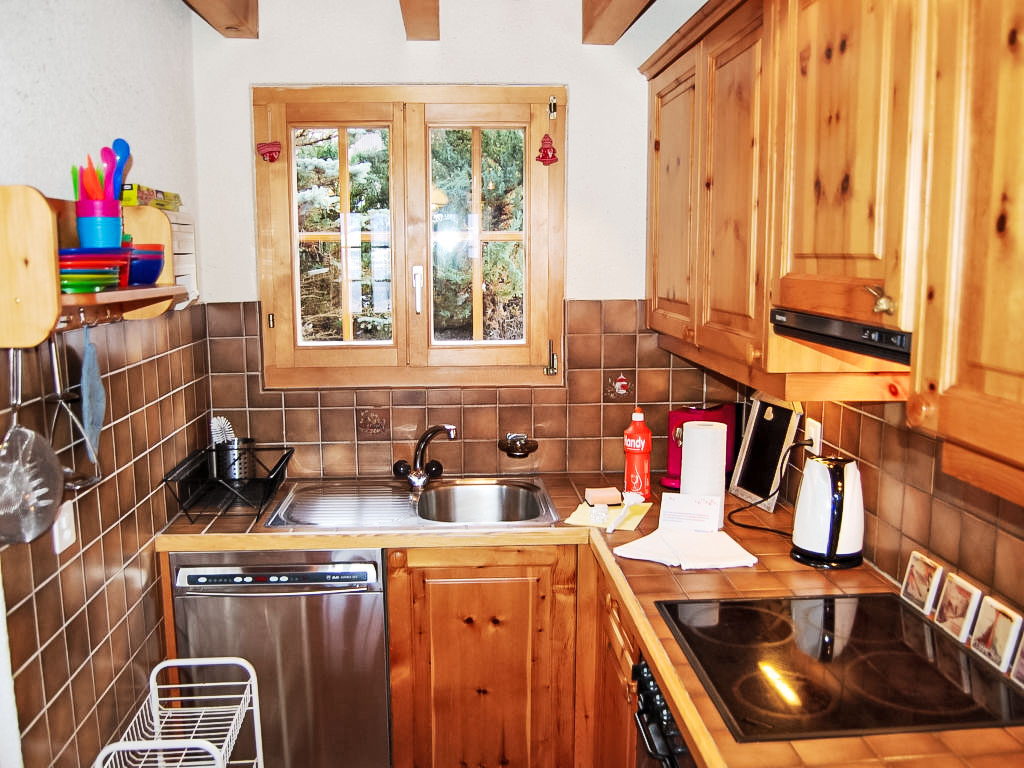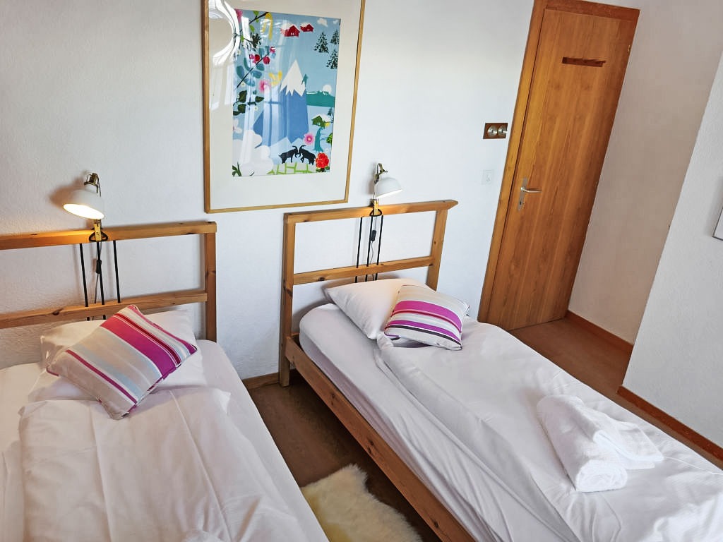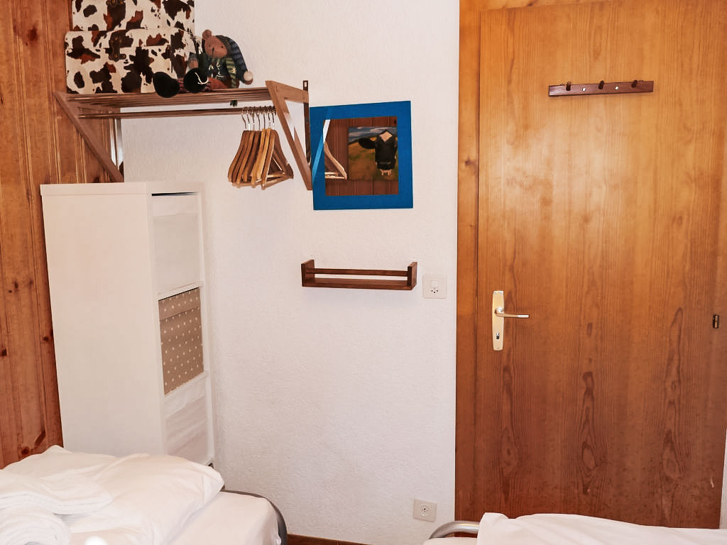 "Les Muguets", 4-Zimmer-Chalet 110 m2 auf 2 Stockwerken. Komfortabel eingerichtet: Wohn-/Esszimmer mit Kabel-TV, CD und DVD. Ausgang zum Balkon. Offene Küche (4 Kochplatten, Backofen, Geschirrspüler, 4 Glaskeramikherd Platten, Mikrowelle, elektrische Kaffeemaschine, Kapseln für die Kaffeemaschine (Nespresso) extra, Racletteofen, Fondue Set (Chinoise, Käse)). Sep. WC. Ölheizung. Unteres Geschoss: 1 Zimmer mit 1 franz. Bett (160 cm, Länge 200 cm). Ausgang zum Garten, Richtung Norden. 1 Zimmer mit 2 Betten. Ausgang zum Garten, Richtung Norden. 1 kleines Zimmer mit 2 Betten. Bad/WC. Balkon 10 m2, Nordlage und Westlage, Gartensitzplatz, Südlage, Rasen 15 m2. Terrassenmöbel, Gartengrill. Sicht auf die Berge und das Tal. Zur Verfügung: Waschmaschine, Kinderhochstuhl, Babybett. Internet (Wireless LAN, gratis). Garage, Höhe 200 cm, Breite 240 cm. Bitte beachten: Nichtraucher-Unterkunft, Parkplatz nur für kleine Wagen.