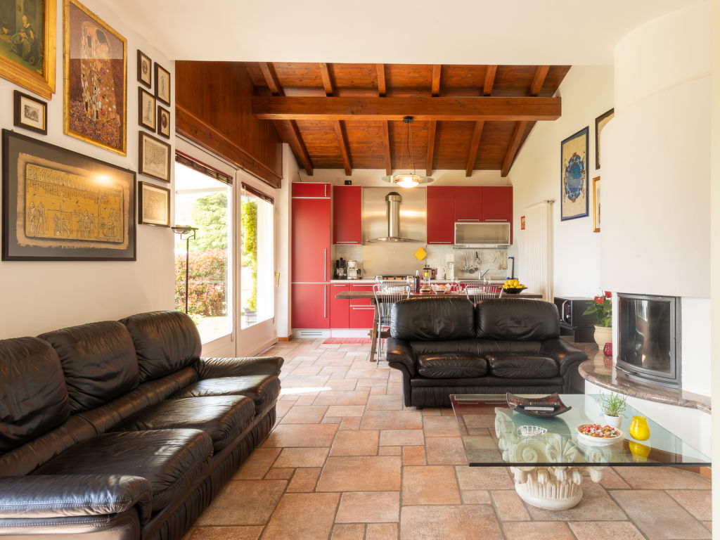 "Gabriella (DMA200)", 3-Zimmer-Doppelhaushälfte 80 m2 auf 2 Stockwerken, Südlage. Hell, geschmackvoll eingerichtet: Wohnzimmer mit offenem Kamin, Sat-TV, Radio, CD und DVD. Ausgang zum Garten. Offene Küche (Backofen, Geschirrspüler, 5 Flammen, Toaster, Wasserkocher, Mikrowelle, Tiefkühler, elektrische Kaffeemaschine) mit Esstisch. Ausgang zum Garten. Dusche/WC. Obergeschoss: 1 Zimmer mit begehbarer Kleiderschrank mit 1 franz. Bett (160 cm), Sat-TV und Klimaanlage. Ausgang zum Balkon. 1 Zimmer mit 2 Betten, Sat-TV und Klimaanlage. Bad/WC, Whirlbadewanne. G-Heizung. Balkon, 2 Terrassen. Terrassenmöbel, Gartengrill, Liegestühle (4). Herrliche Panoramasicht auf den See, die Berge und Monte Legnone (2609m). Zur Verfügung: Waschmaschine, Bügeleisen, Kinderhochstuhl, Babybett. Internet (Wireless LAN, gratis). Bitte beachten: Maximal 2 Haustiere/Hunde erlaubt. Eigener Eingang. 013089 CNI 00028