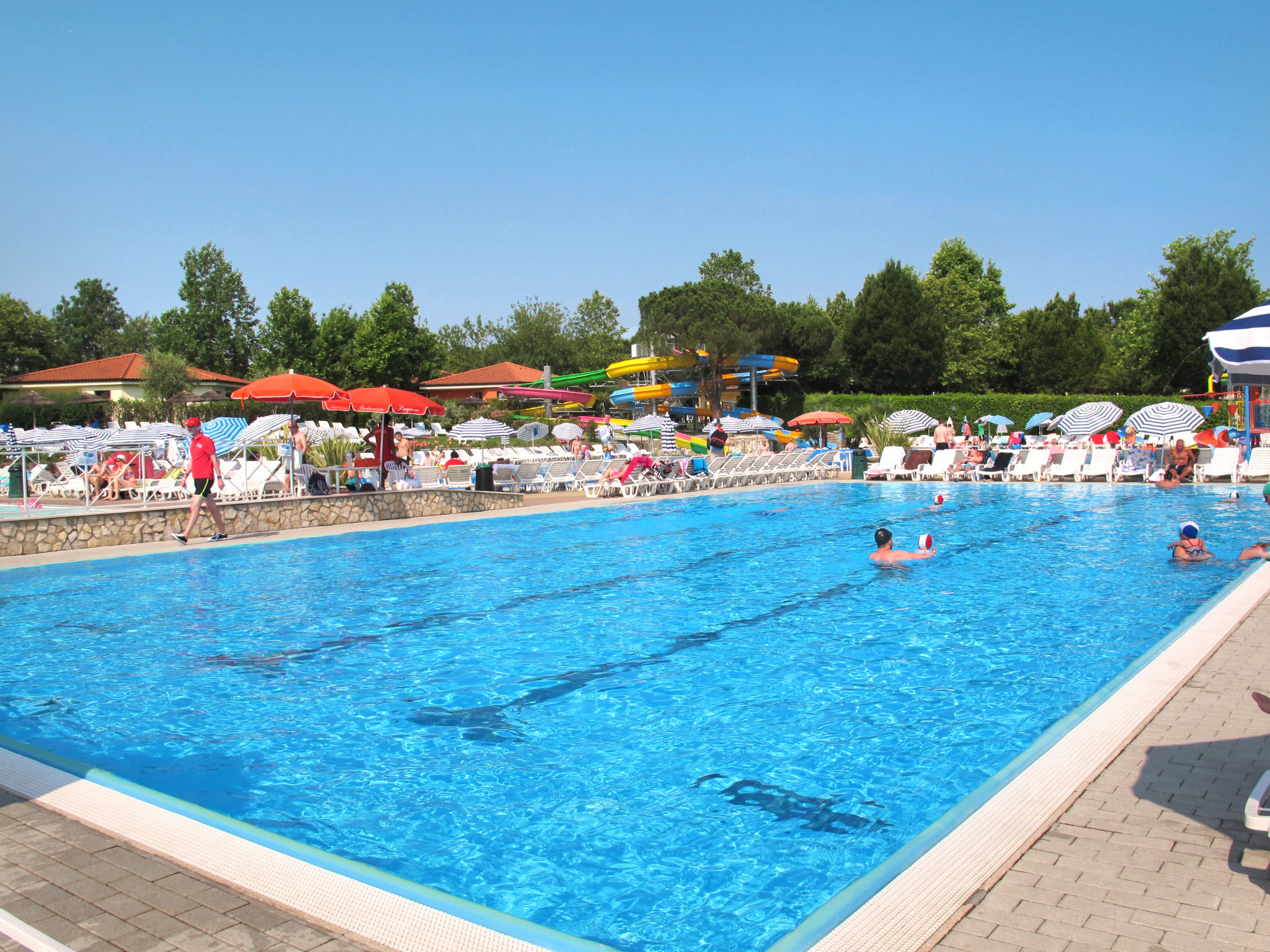 Sehr grosse, kinderfreundliche Ferienanlage "Bella Italia*****". 1 km vom Zentrum von Peschiera del Garda, 270 m vom See, direkter Zugang zum Strand. Zur Mitbenutzung: Grundstück 30 ha (eingezäunt) mit Rasen und Bäumen, 4 Schwimmbäder (saisonale Verfügbarkeit: 15.Apr.-30.Sep.). WC im Poolbereich, Kinderbecken, Rutschbahn, Aussendusche, Tennis (1 x Hartbelag), Tischtennis, Basketball, Beachvolleyball, Kinderspielplatz. In der Anlage: Empfang, Restaurant, Bar, Wireless LAN, Tischtennis, Einkaufsmöglichkeit, Boutique, Kiosk, Waschmaschine, Wäschetrockner (zur Mitbenutzung, extra), Fahrradverleih. Parkplatz auf dem Grundstück. Kieselstrand 270 m. Golfplatz (18 Loch) 20 km. Nahe gelegene Sehenswürdigkeiten: Sirmione 13 km, Verona 31 km. Bitte beachten: Animation in der Saison. Geeignet für Familien, Babyausstattung auf Anfrage (extra). Jugendgruppen nur auf Anfrage.