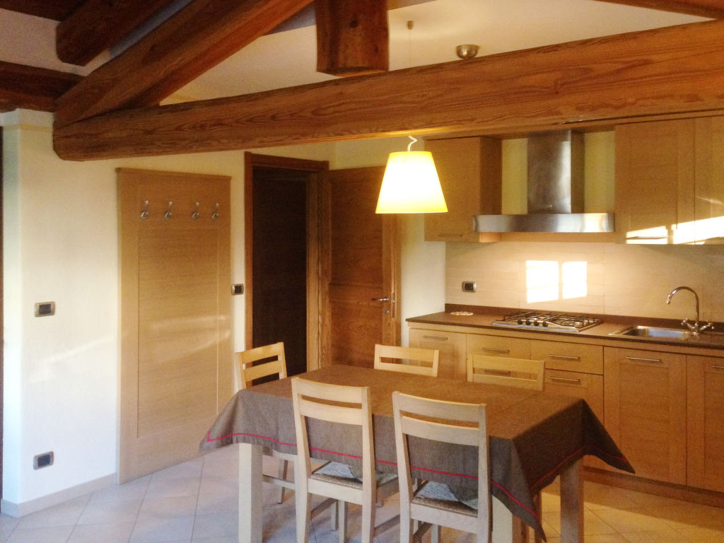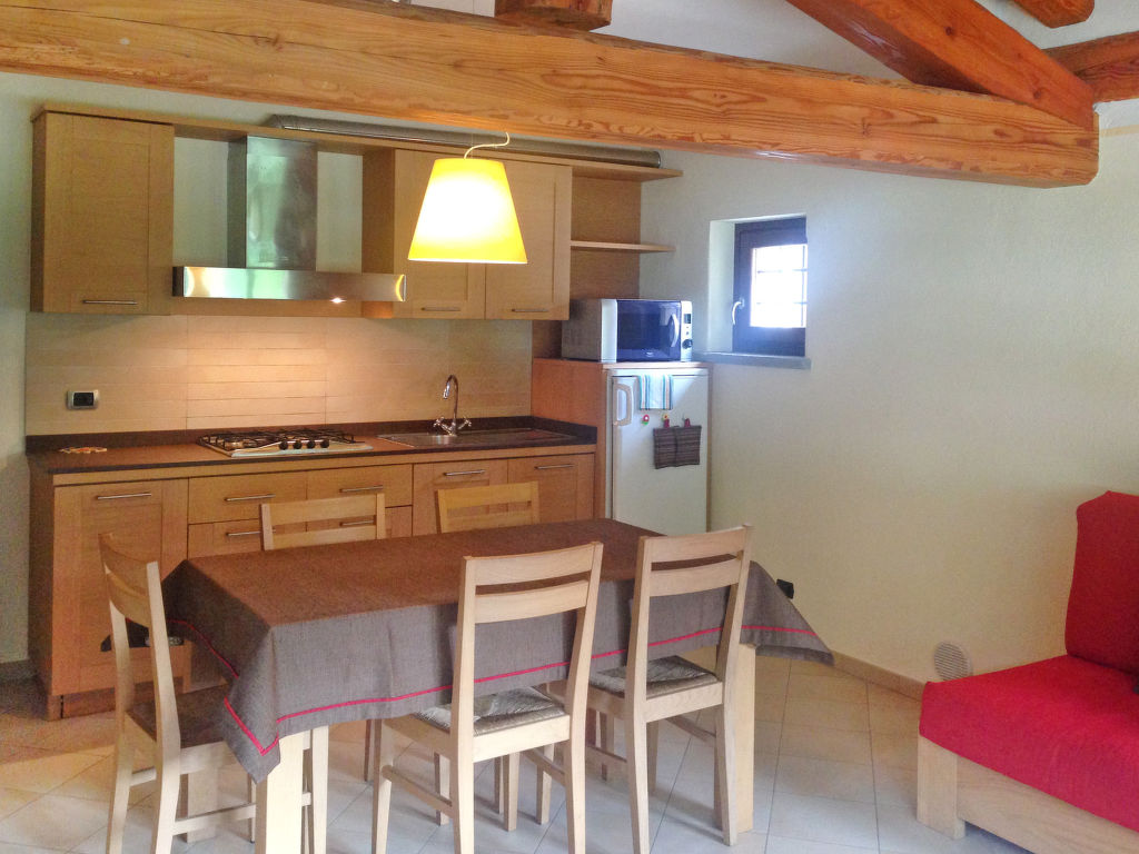 3-Zimmer-Wohnung, Erdgeschoss, ca. 48 m². Separater Zugang in Wohnküche (4 Flammen, Mikrowelle, Kühlschrank) mit Essplatz, Sitzcouch, Terrassenausgang. Doppelzimmer. Zweibettzimmer. Dusche/WC.