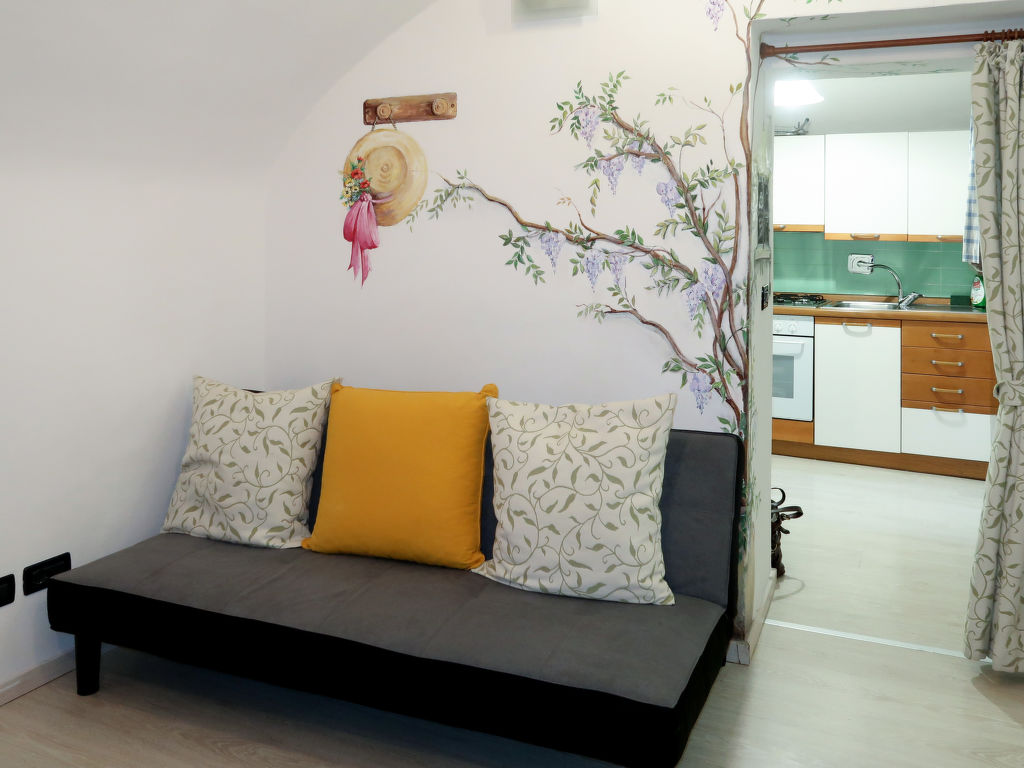 "Acino d'uva", 2-Zimmer-Wohnung 60 m2 im 1. Stock. Zweckmässig eingerichtet: Wohn-/Schlafzimmer, ohne Fenster mit 1 Doppeldiwanbett (140 cm), Esstisch und TV. 1 offenes Zimmer, ohne Fenster mit 1 franz. Bett (160 cm). Offene Küche (Backofen, 4 Flammen, Toaster, Wasserkocher, Mikrowelle, Tiefkühler). Dusche/WC. G-Heizung. Heizung nur verfügbar von 15.10. bis 30.04. Parkettböden. Zur Verfügung: Waschmaschine, Bügeleisen, Babybett. CITRA: 008029-LT-0039