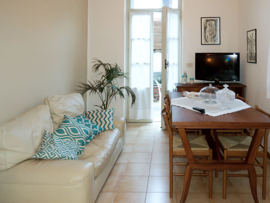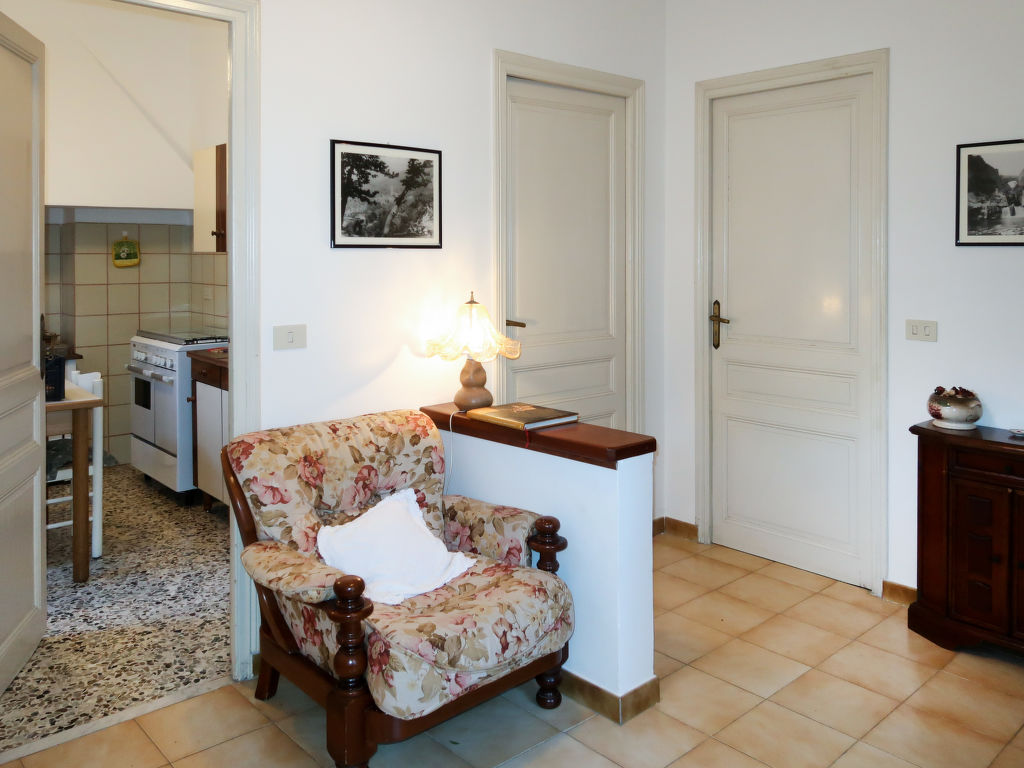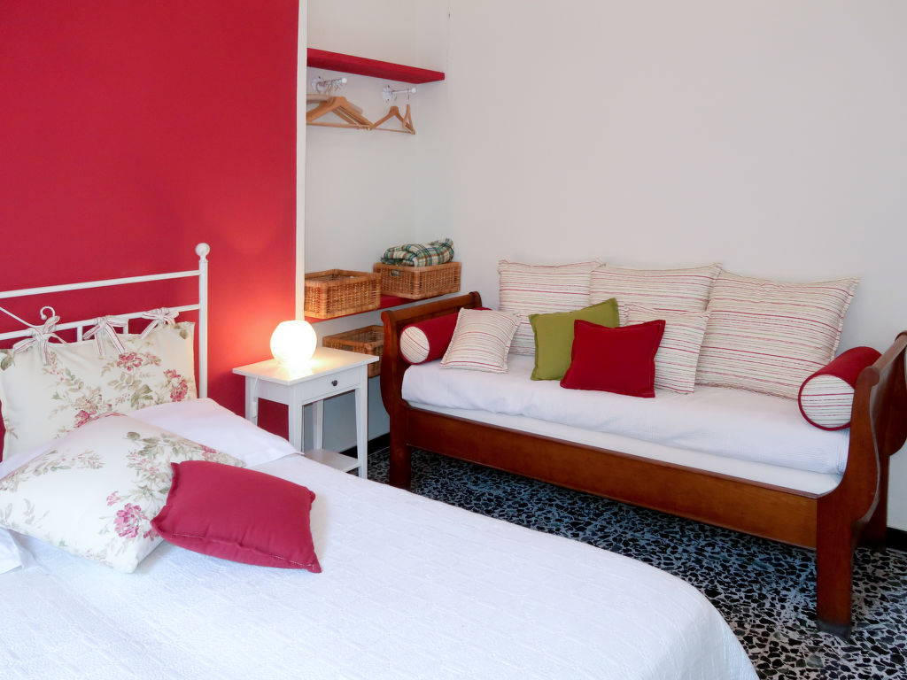 "Margherita (DOA310)", 3-Zimmer-Wohnung 80 m2, im Erdgeschoss. Zweckmässig und rustikal eingerichtet: Wohn-/Esszimmer mit Esstisch und TV. Ausgang zur Terrasse. 1 Zimmer mit 1 Doppelbett (180 cm). Ausgang zum Balkon. 1 Zimmer mit 1 Bett (60 cm, Länge 170 cm), 1 Doppelbett (160 cm). Ausgang zum Balkon. Küche (Backofen, 4 Flammen, Toaster, Wasserkocher, Mikrowelle, Tiefkühler) mit Esstisch. Bad/Bidet/WC. Keine Heizmöglichkeit. 2 Balkone, Terrasse. Terrassenmöbel, Balkonmöbel, Gartengrill (mobil), Liegestühle (2). Sicht auf den Fluss und den Wald. Zur Verfügung: Waschmaschine, Bügeleisen, Kinderhochstuhl, Babybett. CITRA: 008043-LT-0001