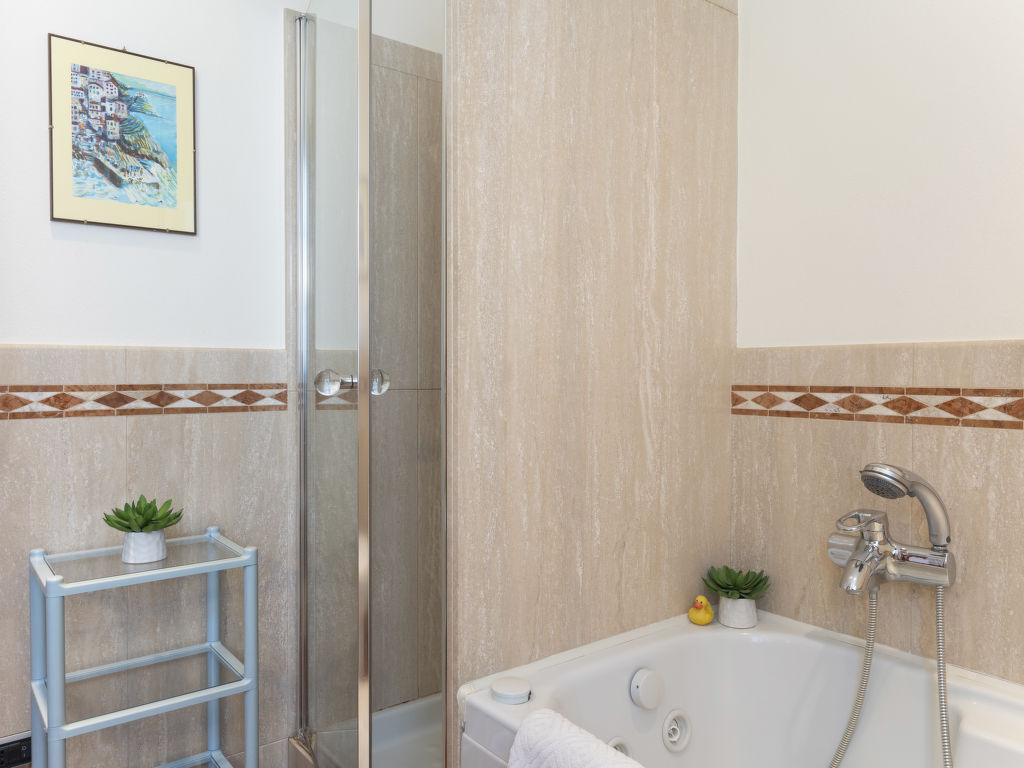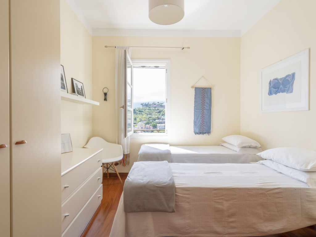 "Villa Peiranze (SRM143)", 3-Zimmer-Haus 200 m2 auf 2 Stockwerken, Südlage. Geräumig und hell, komfortabel und geschmackvoll eingerichtet: Wohn-/Schlafzimmer mit 1 Doppeldiwanbett (160 cm), Esstisch und TV. Ausgang zur Terrasse. Offene Küche (Backofen, Geschirrspüler, 4 Flammen, Toaster, Wasserkocher, Mikrowelle, Tiefkühler, elektrische Kaffeemaschine) mit Bar. Dusche/WC. Obergeschoss: 1 Zimmer mit 1 franz. Bett (160 cm). Ausgang zum Balkon. 1 Zimmer mit 2 Betten (90 cm). Dusche/WC. G-Heizung. Heizung nur verfügbar von 15.10. bis 30.04. Parkettböden. Balkon, grosse Terrasse 100 m2 teilweise überdacht, Südwestlage, Laube. Terrassenmöbel, Balkonmöbel, Gartengrill (mobil), Liegestühle, Sitzplatz, Abstellkammer. Herrliche Panoramasicht auf das Meer und die Stadt. Zur Verfügung: Waschmaschine, Bügeleisen, Fliegengitter, Kinderhochstuhl, Babybett. Internet (Wireless LAN, gratis). CITRA: 008055-LT-0038