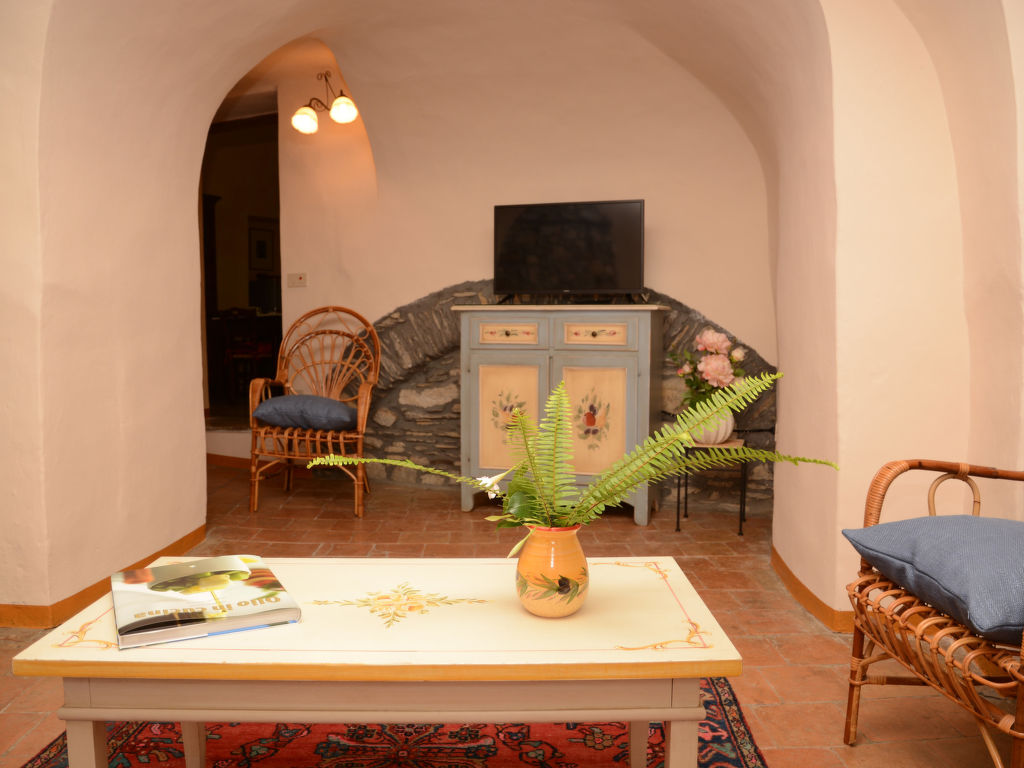"Le Volte", 3-Zimmer-Wohnung 80 m2 auf 2 Stockwerken, im Erdgeschoss. Geräumig und hell, geschmackvoll und gemütlich eingerichtet: Wohnzimmer mit Sat-TV, Internationale TV-Sender und Flachbildschirm. 1 Zimmer mit 1 franz. Bett (160 cm). Grosse Küche (Gasherd, 4 Flammen, Toaster, Tiefkühler, elektrische Kaffeemaschine, Kapseln für die Kaffeemaschine (Lavazza)) mit Esstisch. Dusche/Bidet/WC. G-Heizung. Obergeschoss: 1 Zimmer mit 1 franz. Bett (160 cm). Komfortable Einrichtung im Landhausstil. Terrasse 16 m2. Terrassenmöbel, Gartengrill, Liegestühle (2). Sehr schöne Fernsicht auf das Meer und das Tal. Zur Verfügung: Waschmaschine, Bügeleisen, Fliegengitter, Haartrockner. Internet (Wireless LAN, gratis). CITRA:008047-AGR-0006