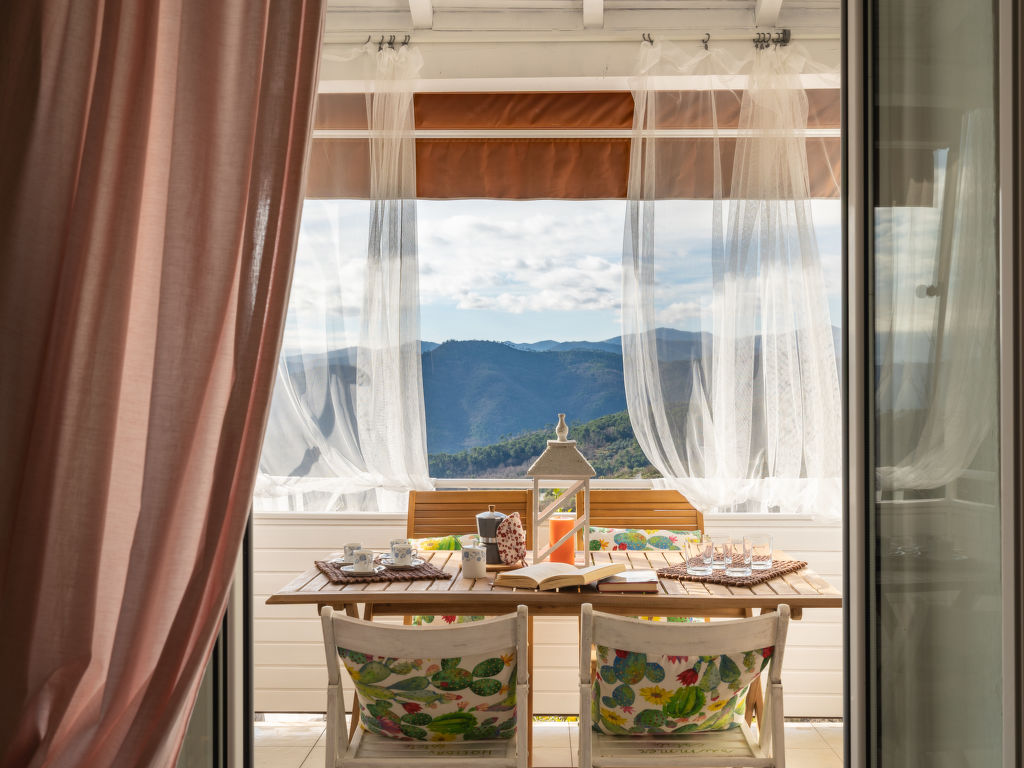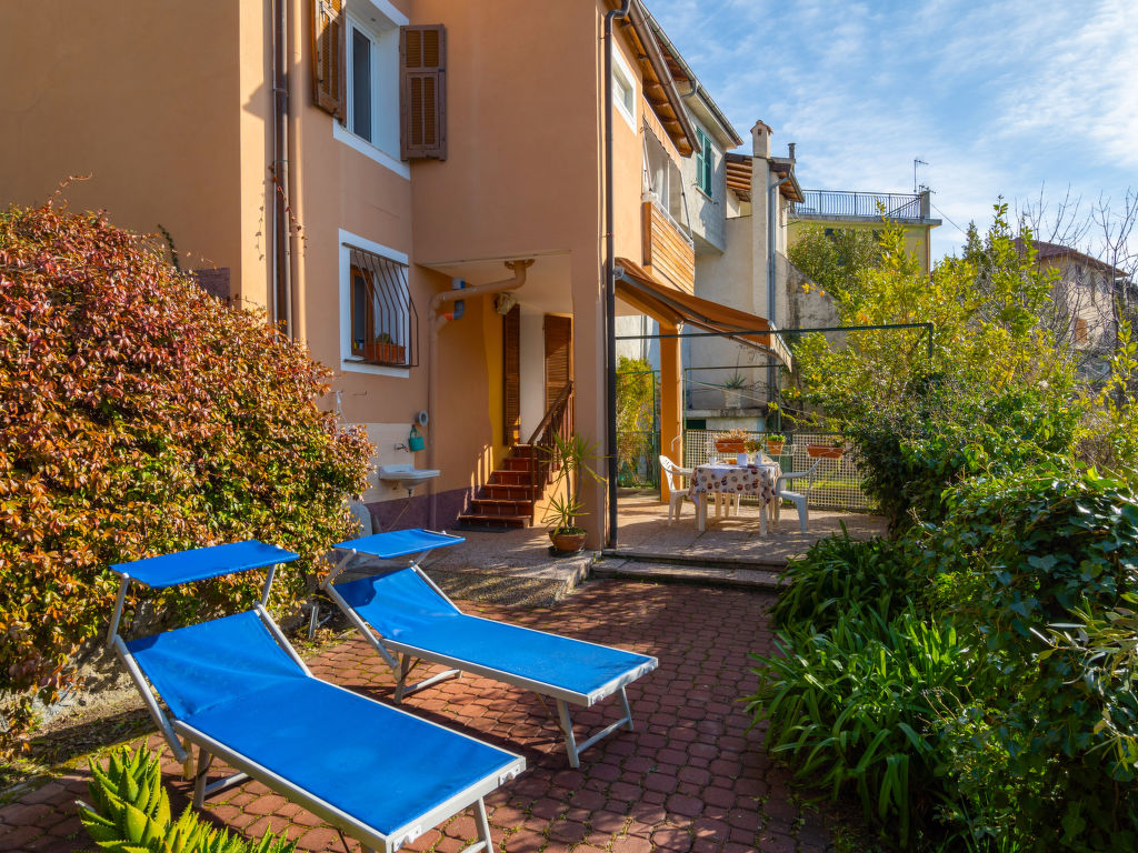 Das Dorfhaus mit den beiden Ferienwohnungen AGAPANTHUS und BOUGANVILLE steht in einer Häuserzeile am Rande des Ortsteils Menosio, 1,5 km von Arnasco Chiesa mit Einkaufsmöglichkeit entfernt. Supermarkt sowie Sandstrände in Albenga, 13-14 km. Golfplatz 14 km. Ca. 30 m unterhalb des Hauses führt eine Landstraße vorbei. Parkmöglichkeiten in Hausnähe, ca. 30-50 m. Zum Haus gehört ein ca. 150 m2 großes, terrassiertes Hanggrundstück mit einigen Bäumen und Bepflanzung, das teils durch Zaun und Mauer eingefasst ist (Zugang über kleine Fußgängergasse entlang des Hauses, ca. 30 m) sowie ein Spielplatz zur gemeinsamen Nutzung. Zu jeder Ferienwohnung gehört eine Terrasse mit Sonnenliegen und transportablem Grill. Agapanthus zusätzlich mit Balkon mit Tisch, 2 Stühlen und Panoramablick über die grünen Hügel. Im Erdgeschoss Abstellraum für Fahrräder oder Motorräder. Angenehme, freundliche Einrichtung. Laminatboden. TV (2 deutsche Programme). Internetzugang (WLAN, inklusive). Fliegengitter. Keine Heizmöglichkeit.