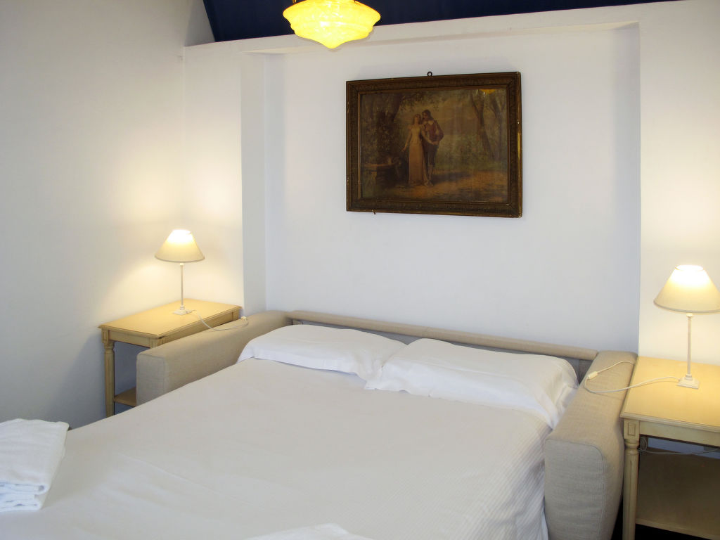 4-Zimmer-Wohnung 'Camelot', 1. Etage, ca. 110 m². Wohn-/Schlafraum mit Sitzgruppe/Doppelbettcouch (1,60 m breit), Essplatz und Terrassenausgang. Küche (4 Ceranfelder, Backofen, Geschirrspüler, Kühl-/Gefrierkombination, Kaffeemaschine, Wasserkocher, Toaster) mit Essplatz für 2 Personen und Terrassenausgang. Schlafzimmer mit franz. Bett (1,60 m breit), durch Vorhang abgeteilte Schlafnische mit franz. Bett (1,60 m). Schlafzimmer mit Doppelbettcouch (1,60 m breit). Dusche/Bidet/WC. CITR: 009029-CAV-0015