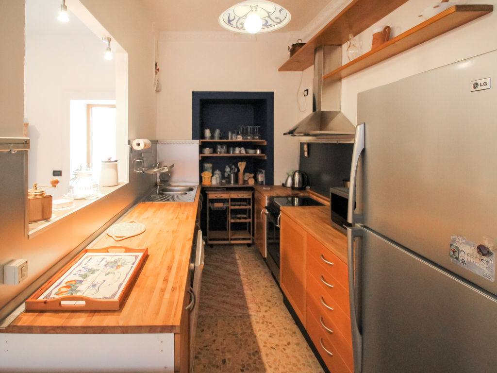 3-Zimmer-Wohnung 130 m2 auf 3 Stockwerken, im Erdgeschoss. Zweckmässig und gemütlich eingerichtet: grosses Wohn-/Esszimmer mit Sat-TV. Dusche/WC. Obergeschoss: Küche (4 Kochplatten, Backofen, Geschirrspüler, Mikrowelle, Tiefkühler, elektrische Kaffeemaschine) mit Esstisch, TV. 2. Obergeschoss: 1 Doppelzimmer. 1 Zimmer mit 2 Betten. Dusche/Bidet/WC. G-Heizung. Terrasse 20 m2. Terrassenmöbel. Zur Verfügung: Waschmaschine, Haartrockner. Internet (Wireless LAN, gratis). Bitte beachten: eigener Eingang. CIR: DA COMUNICARE