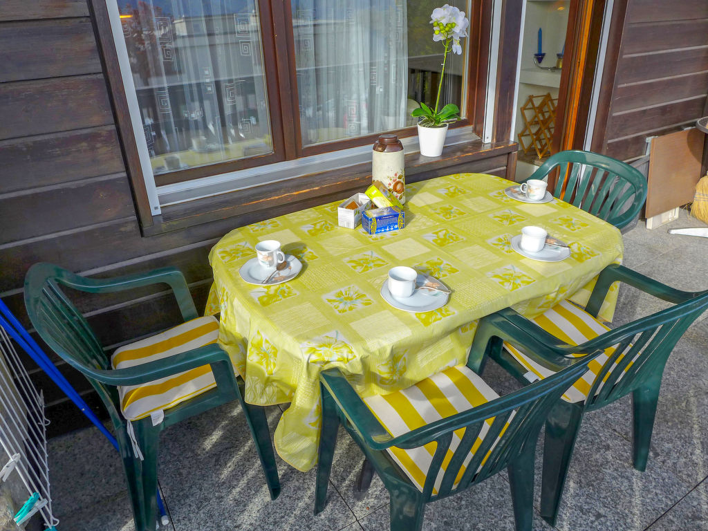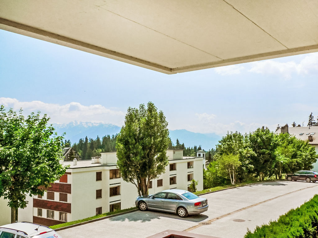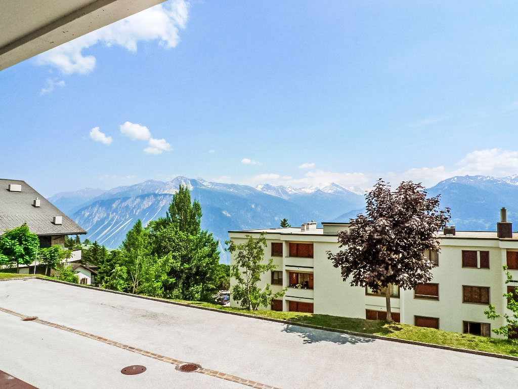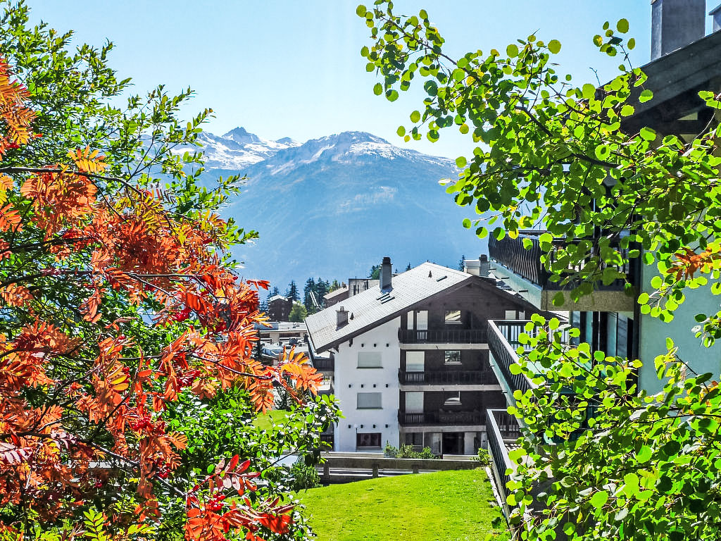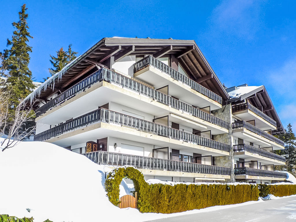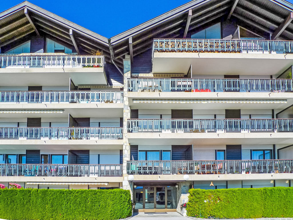 Residenz "Mandarin", auf 4 Stockwerken. Im Ortsteil Les Arolles, am Ortsrand, 300 m vom Zentrum von Montana, ruhige, sonnige Lage. Im Hause: Fahrstuhl, Skiraum, Zentralheizung, Waschmaschine, Wäschetrockner (zur Mitbenutzung, extra). Zufahrt bis zum Haus. Parkplatz (beschränkte Anzahl) beim Haus. Bushaltestelle "Vignettes" 450 m. Golfplatz (18 Loch) 2 km, Minigolf 400 m, Skisportanlagen 500 m, Skibushaltestelle 400 m.